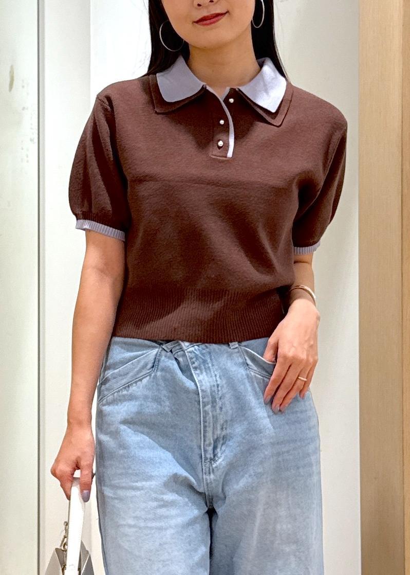 VISダブルカラーポロトップスブラウン / F¥5,929レビュートレンドのダブル襟が可愛い♡