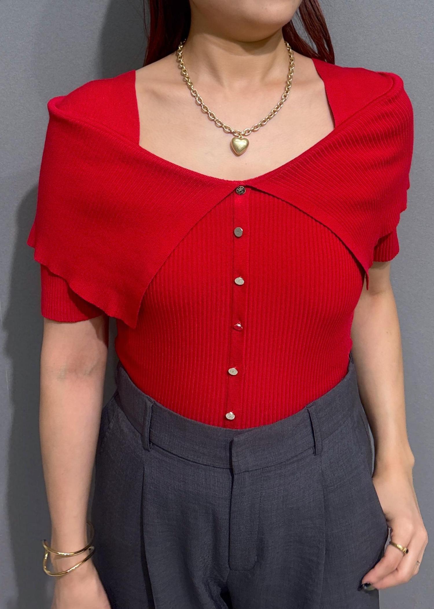 VISビックカラーオフショルハーフスリーブニットレッド / F¥2,963レビュー柔らかくて厚すぎない生地、