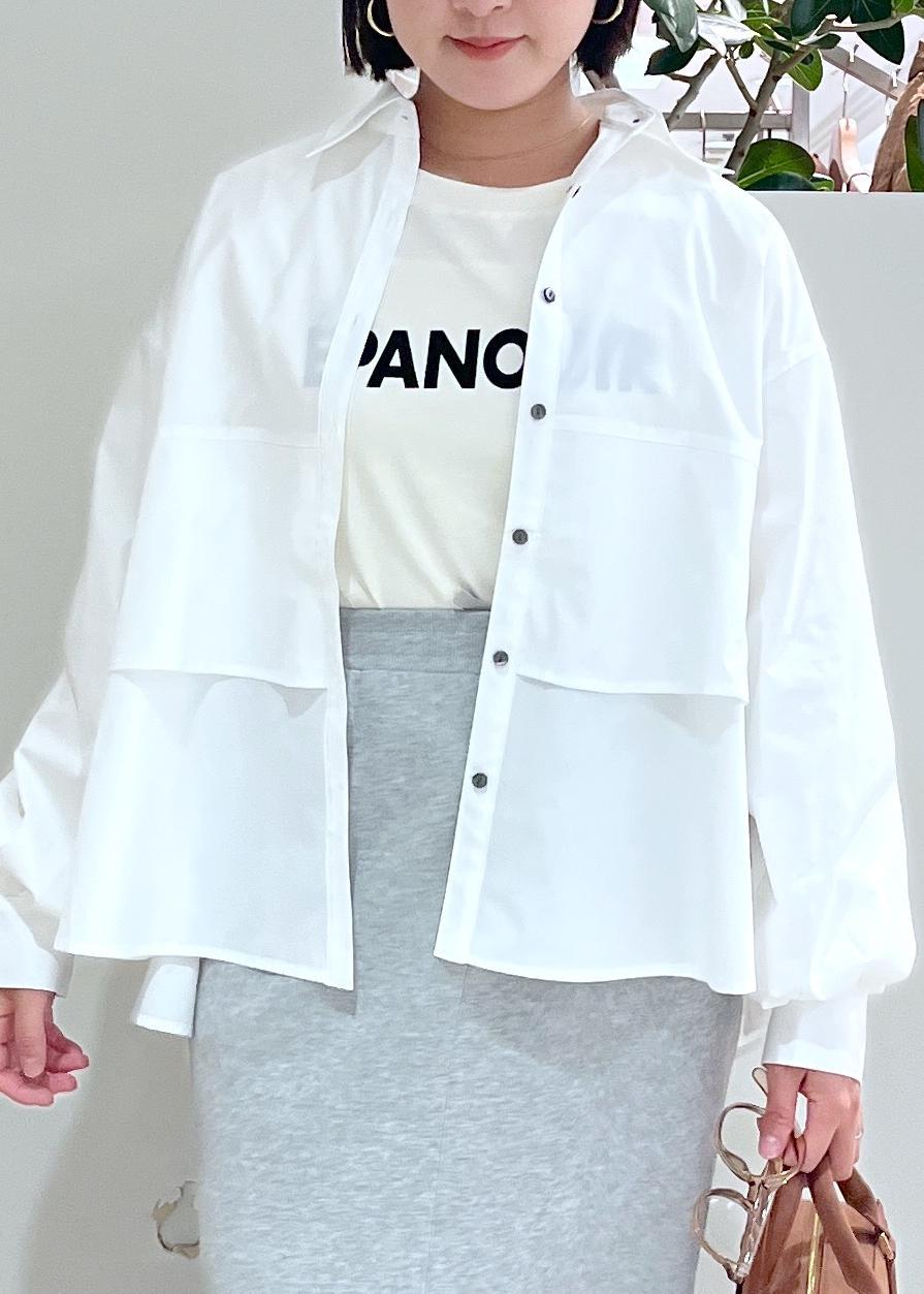 VIS裾ティアードオーバーシャツ/UVケア・イージーケアホワイト / F¥3,557レビューハリのあるブラウスなので、仕事から普段着使いにぴったりです。