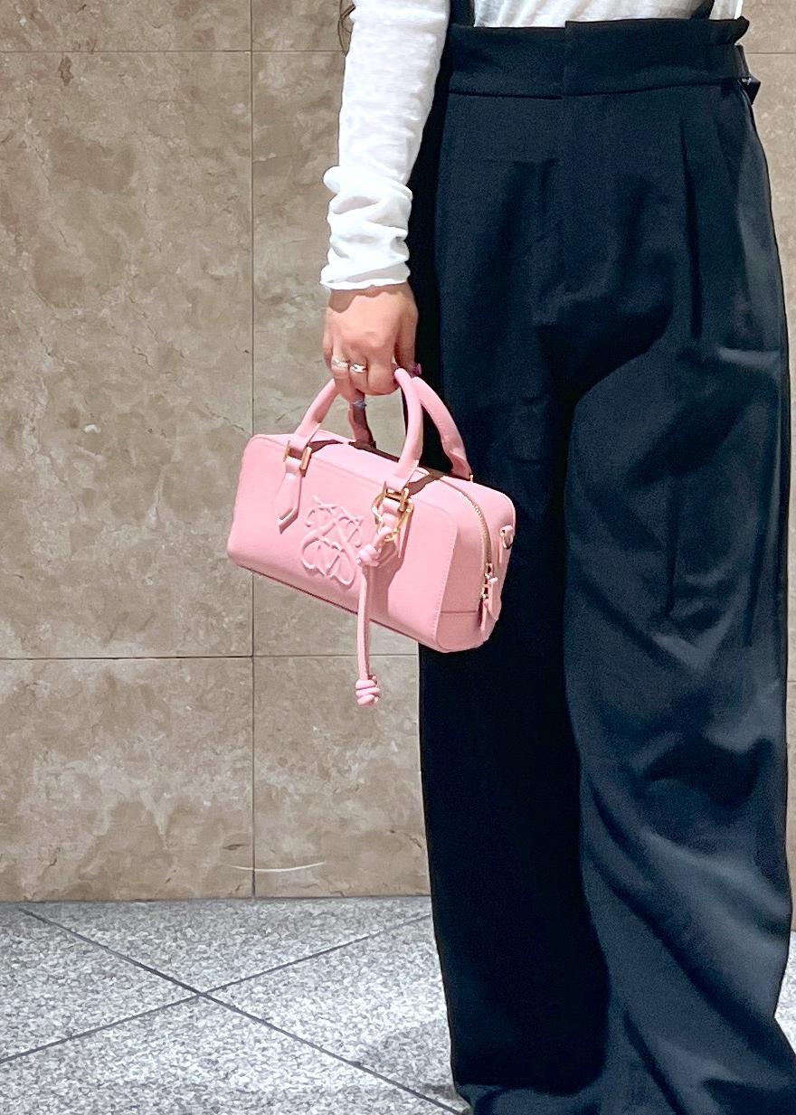 スウェードのような生地感で、手の部分に♡のカラビナ付きです◎ -