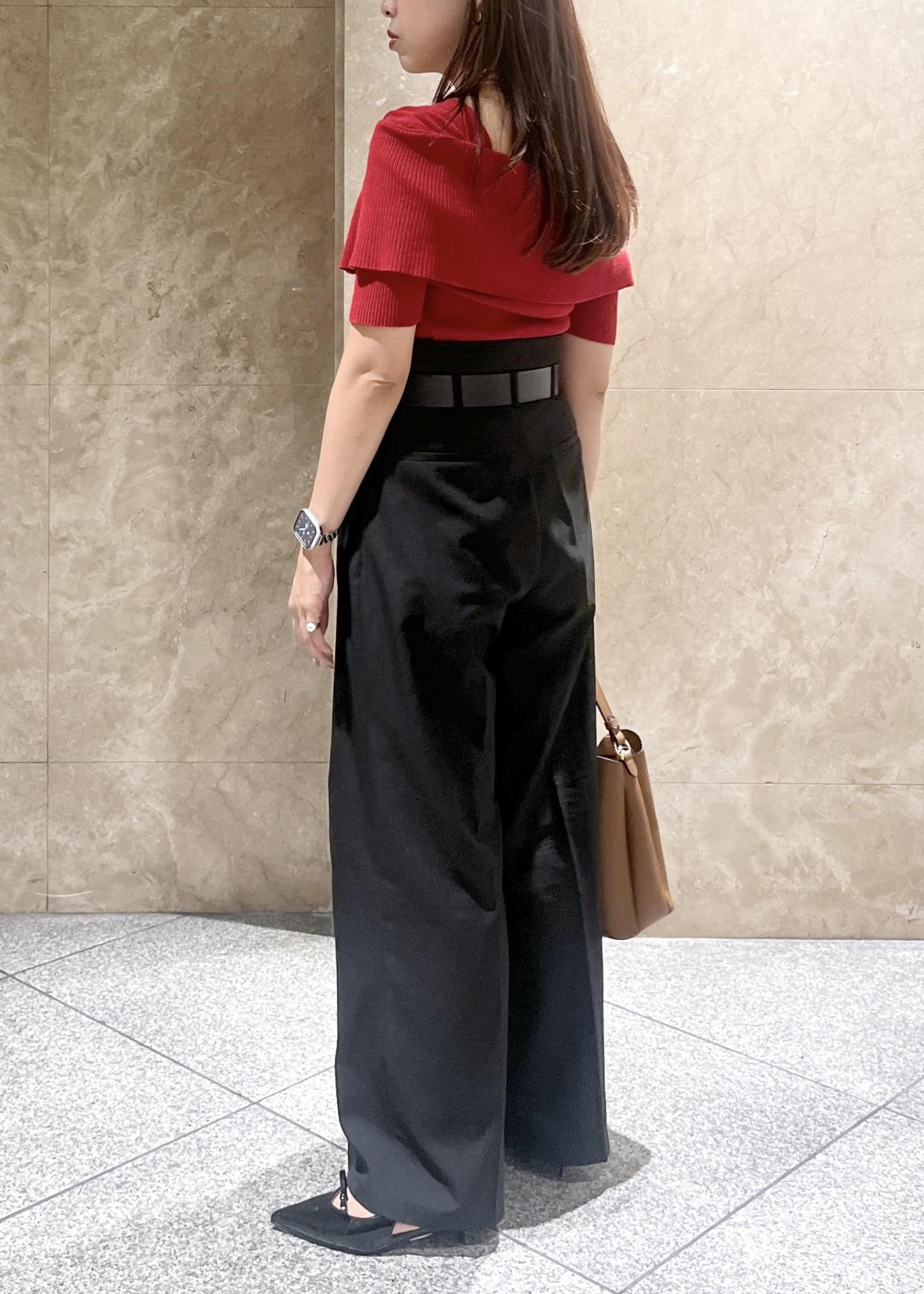 また、ハイウエストでの美脚効果もあるので、自然とスタイルアップするのも嬉しい。 -