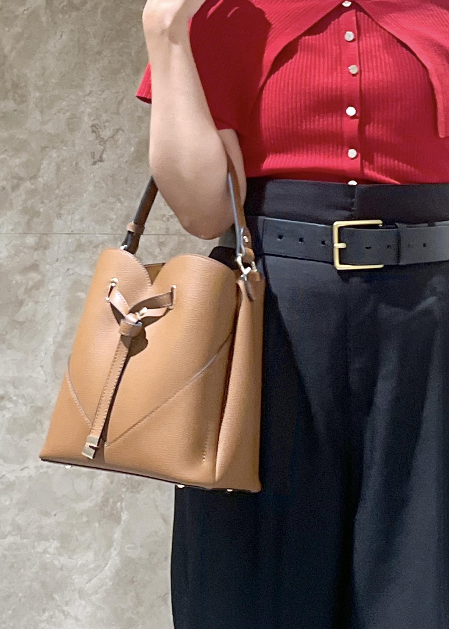 高級感ある素材感ですが、バッグ自体がとても軽く、斜め掛けで身軽に両手を空けることもできるので、様々なおでかけのシーンにマッチ!