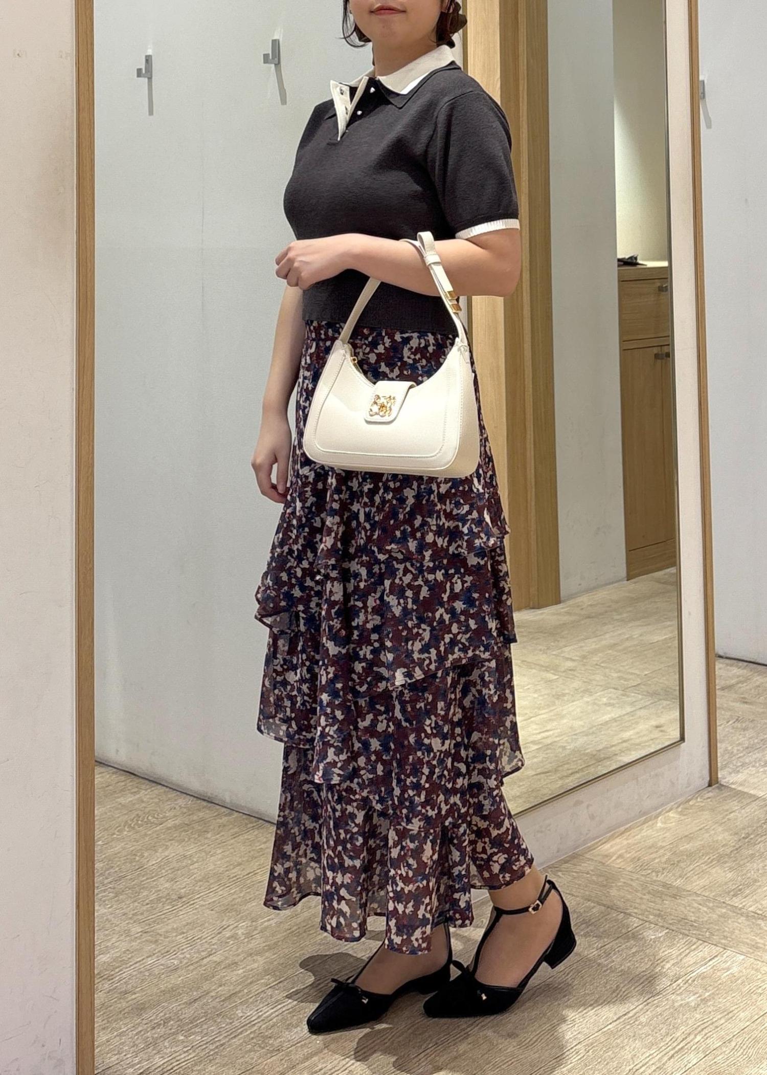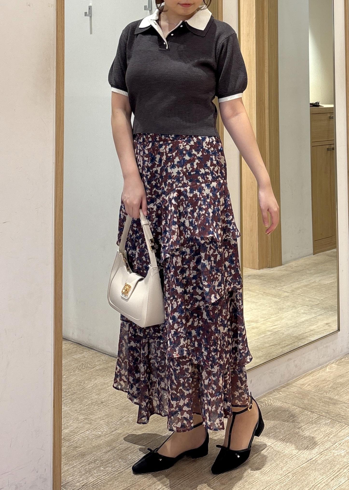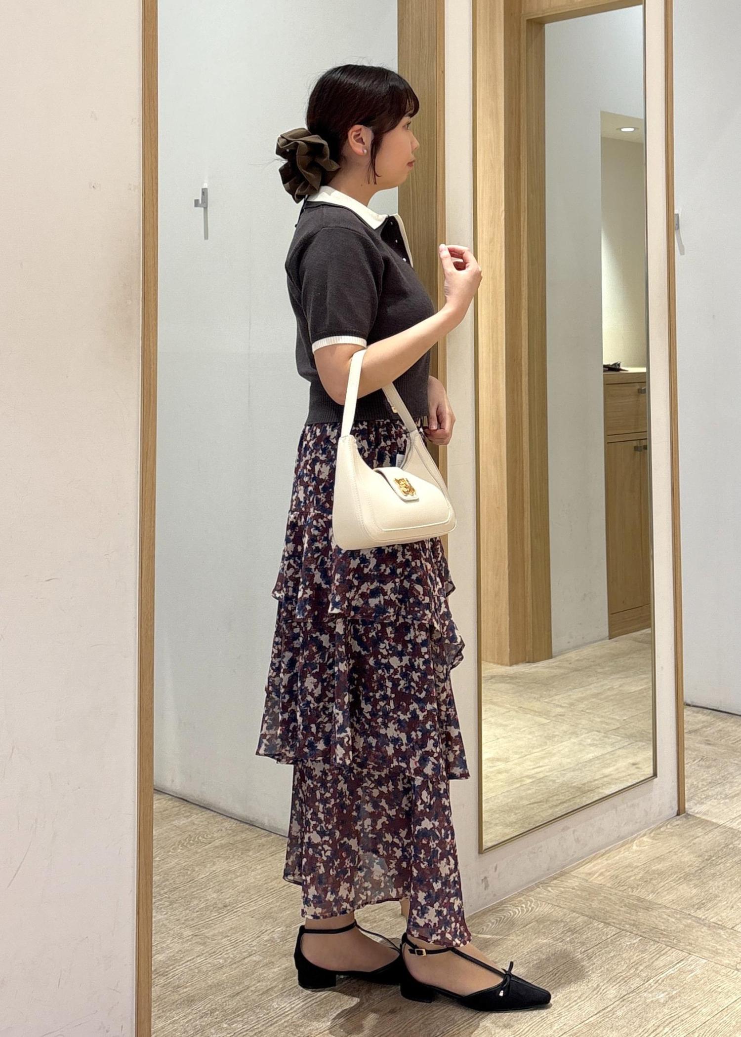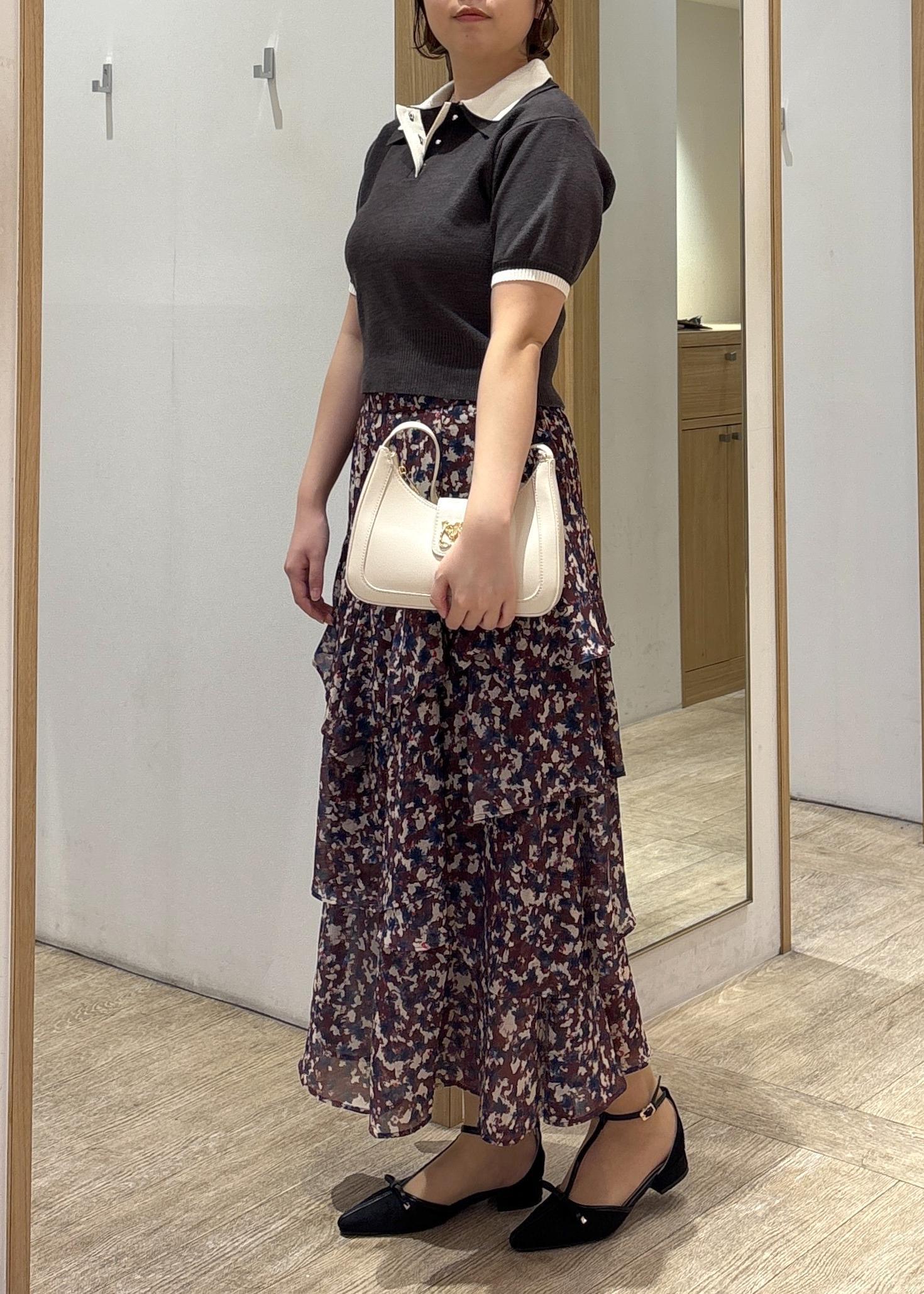 VIS花柄アソート楊柳ティアードスカートブラウン系 / F¥4,613レビューふんわり重なるティアードデザインが、動くたびに軽やかで華やか。甘さのあるデザインだけど、落ち着いたカラーなので大人可愛くまとまります。
