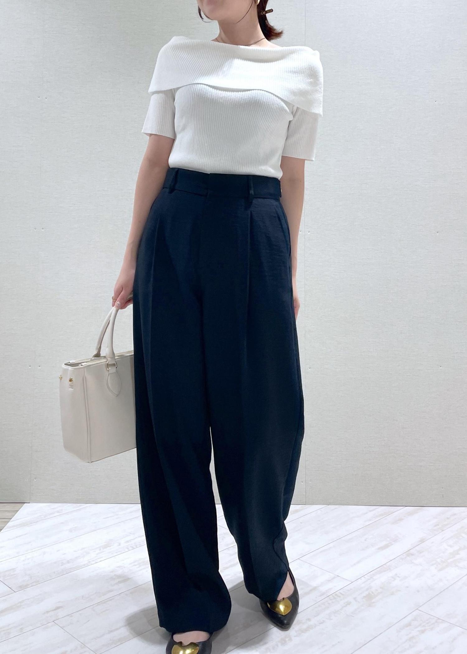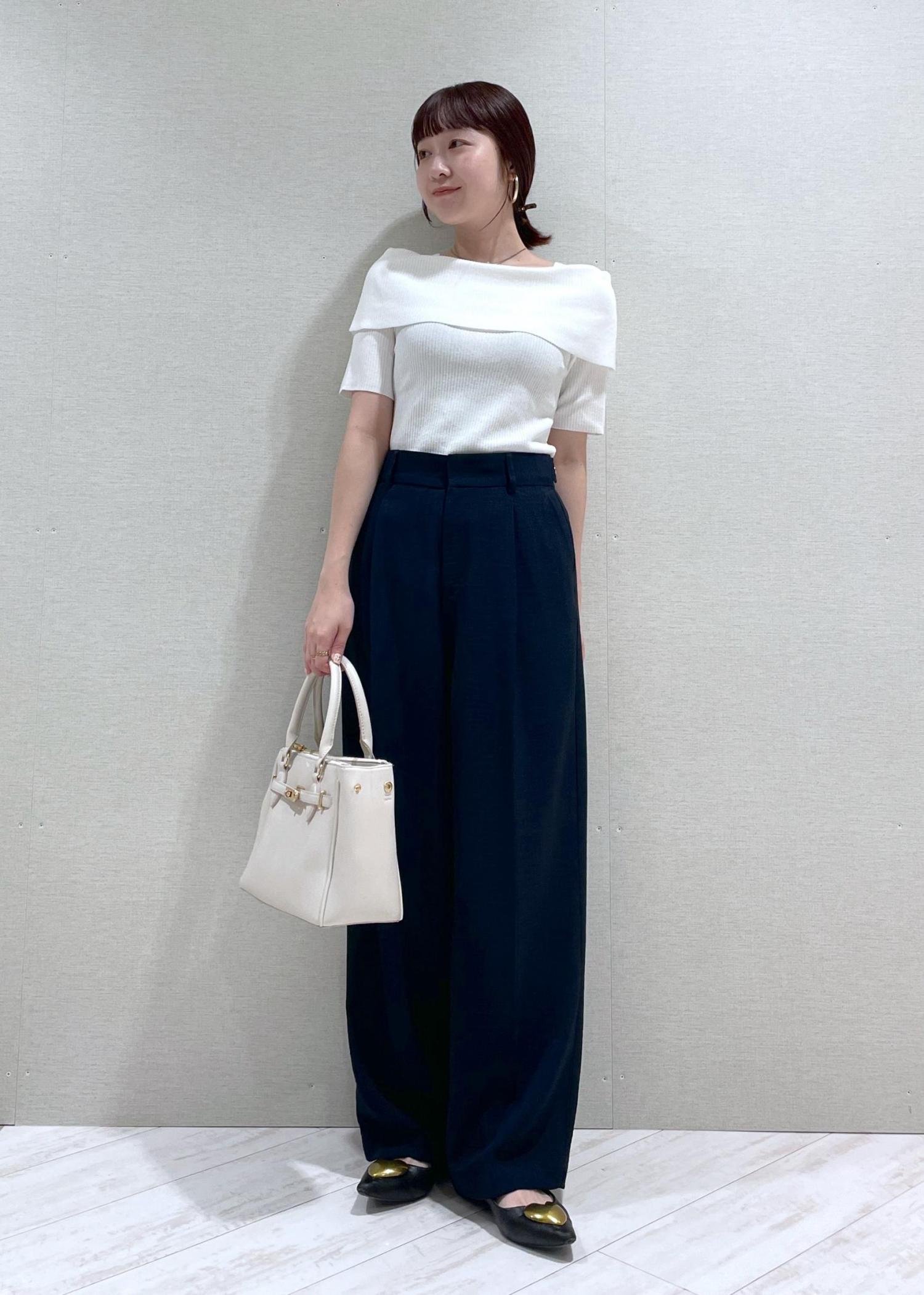 VIS【アンチピリング/UVケア/洗える】オフショルハーフスリーブニットオフホワイト / F¥4,939レビューオフショルの不安を解消してくれる優秀アイテム❤︎骨ストさんが得意な程よいフィット感とデコルテ見せもでき華奢見えします!ボトムは選ばず合わせやすいです!