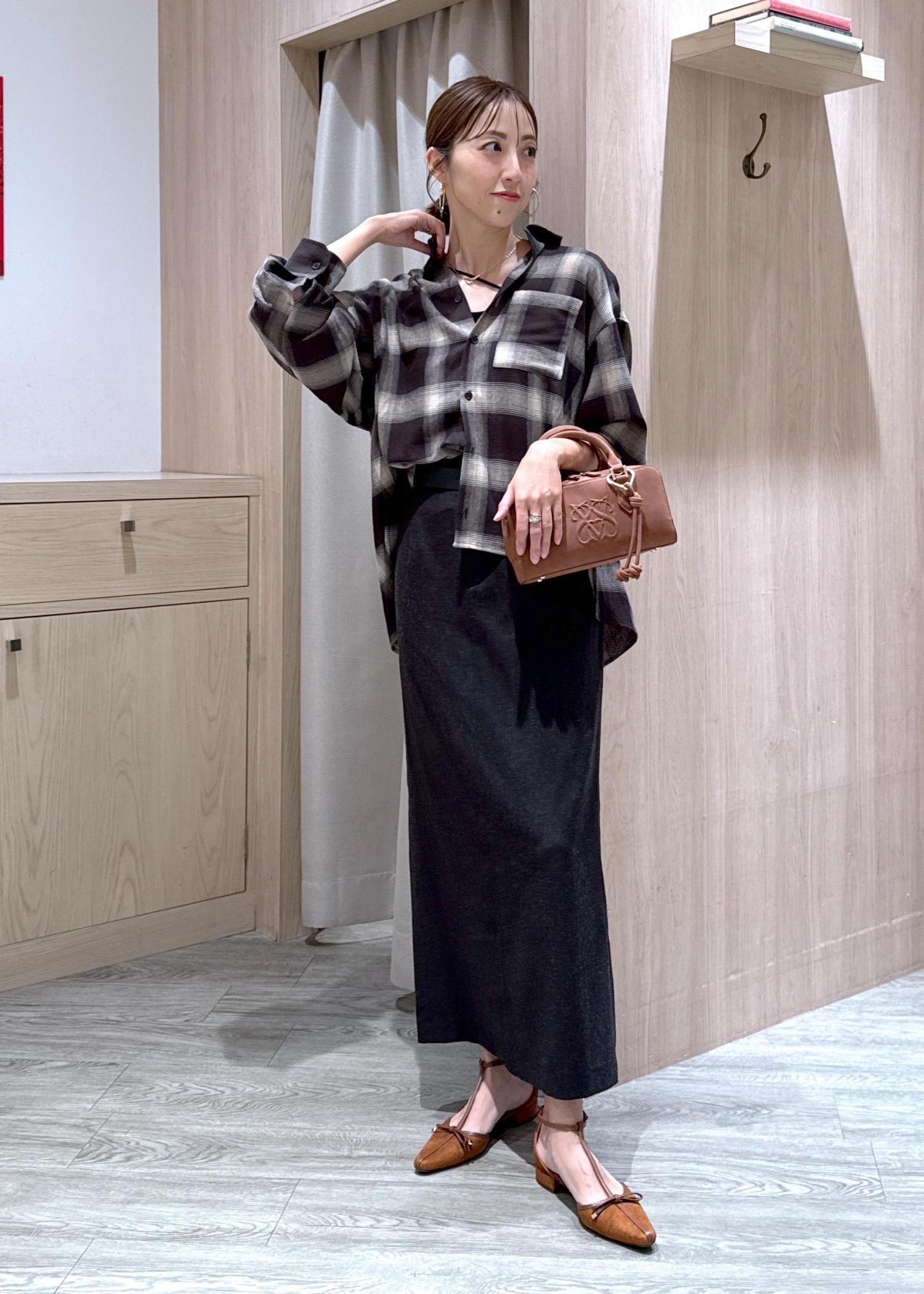 カジュアルになりがちなチェックシャツに大人っぽいタイトスカートを合わせて大人カジュアルにスタイリングしました!