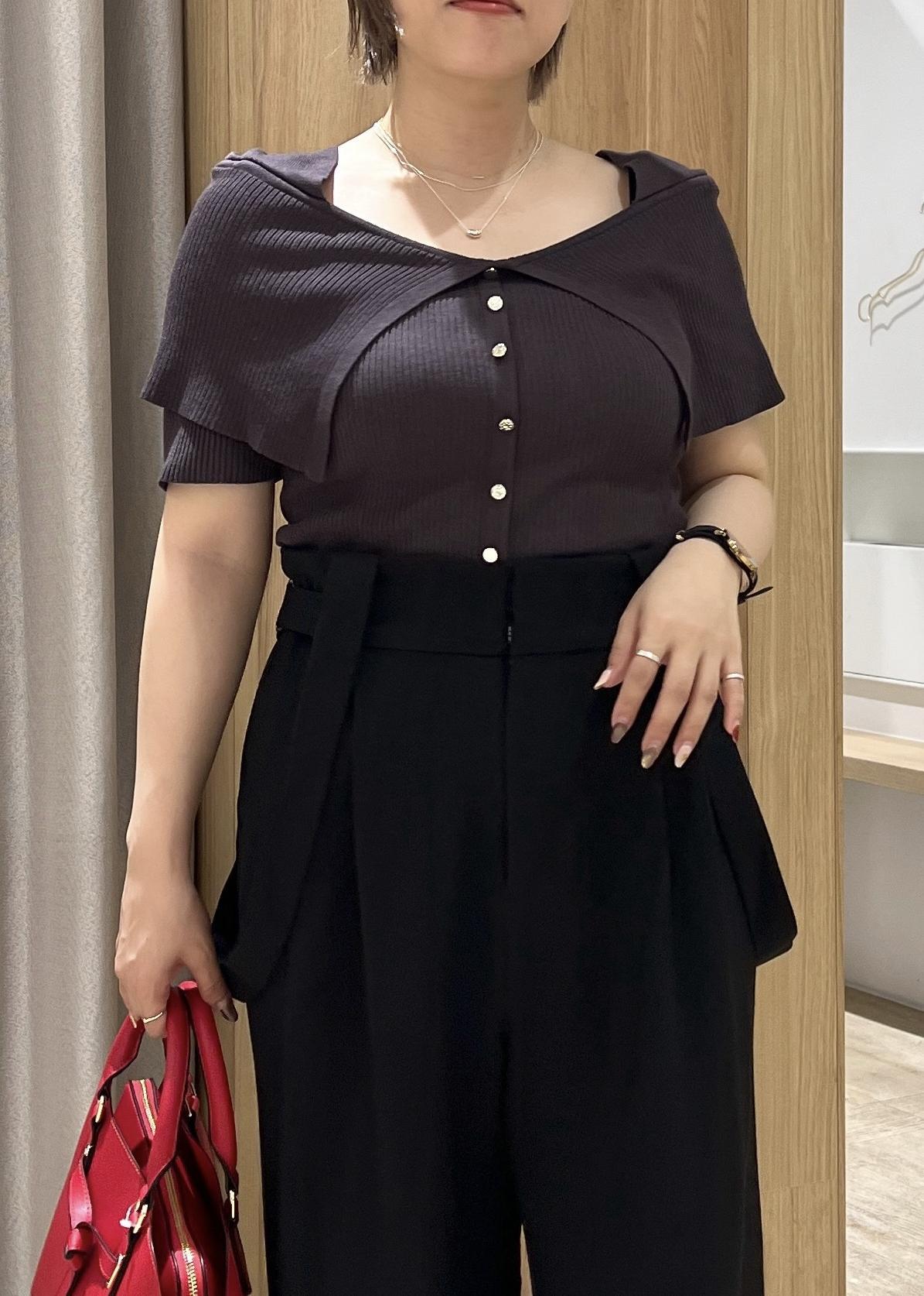 VISビックカラーオフショルハーフスリーブニットチャコール / F¥2,963レビュー身長152cmでヒップにやや掛かる丈感です。