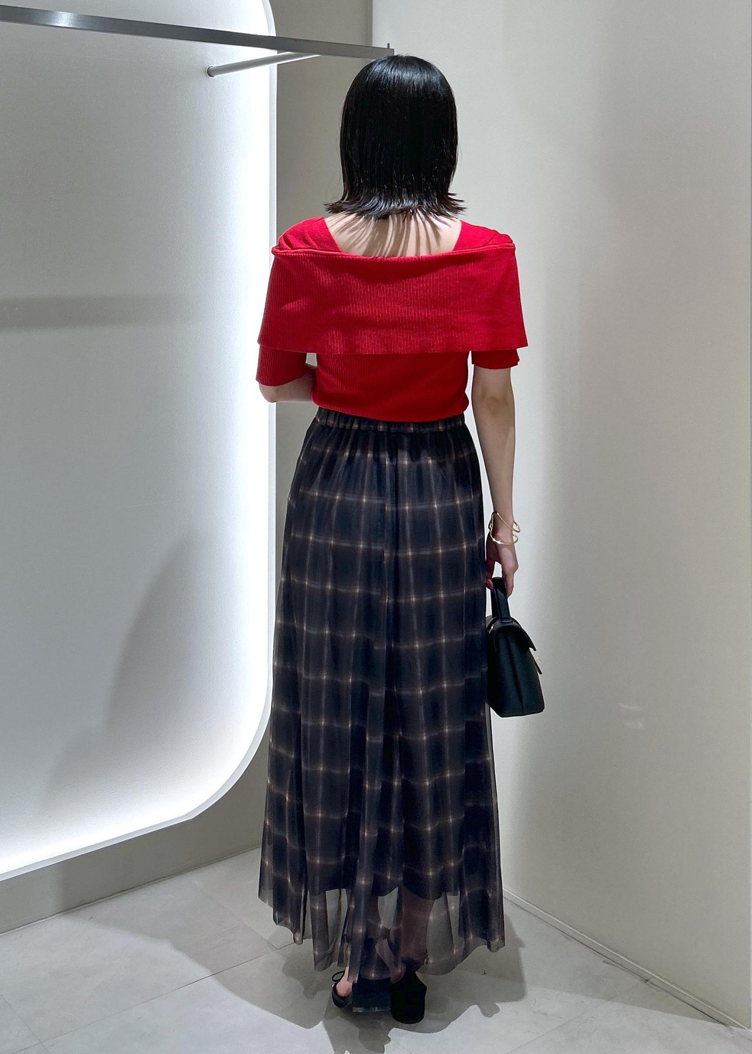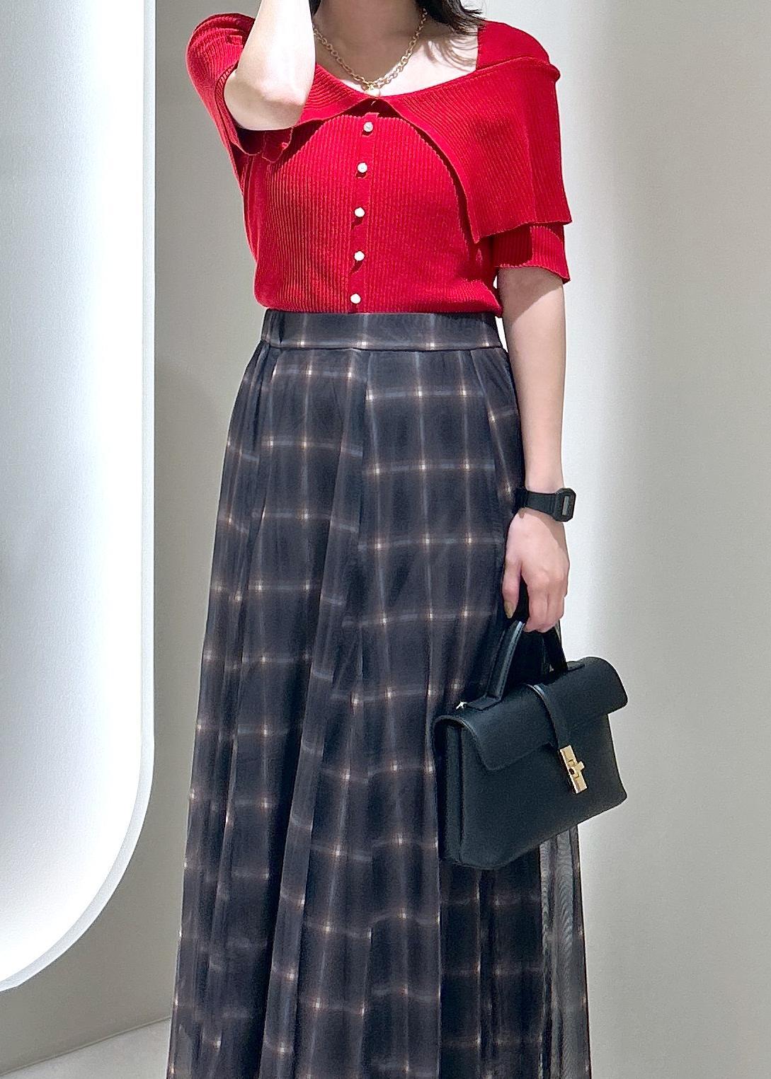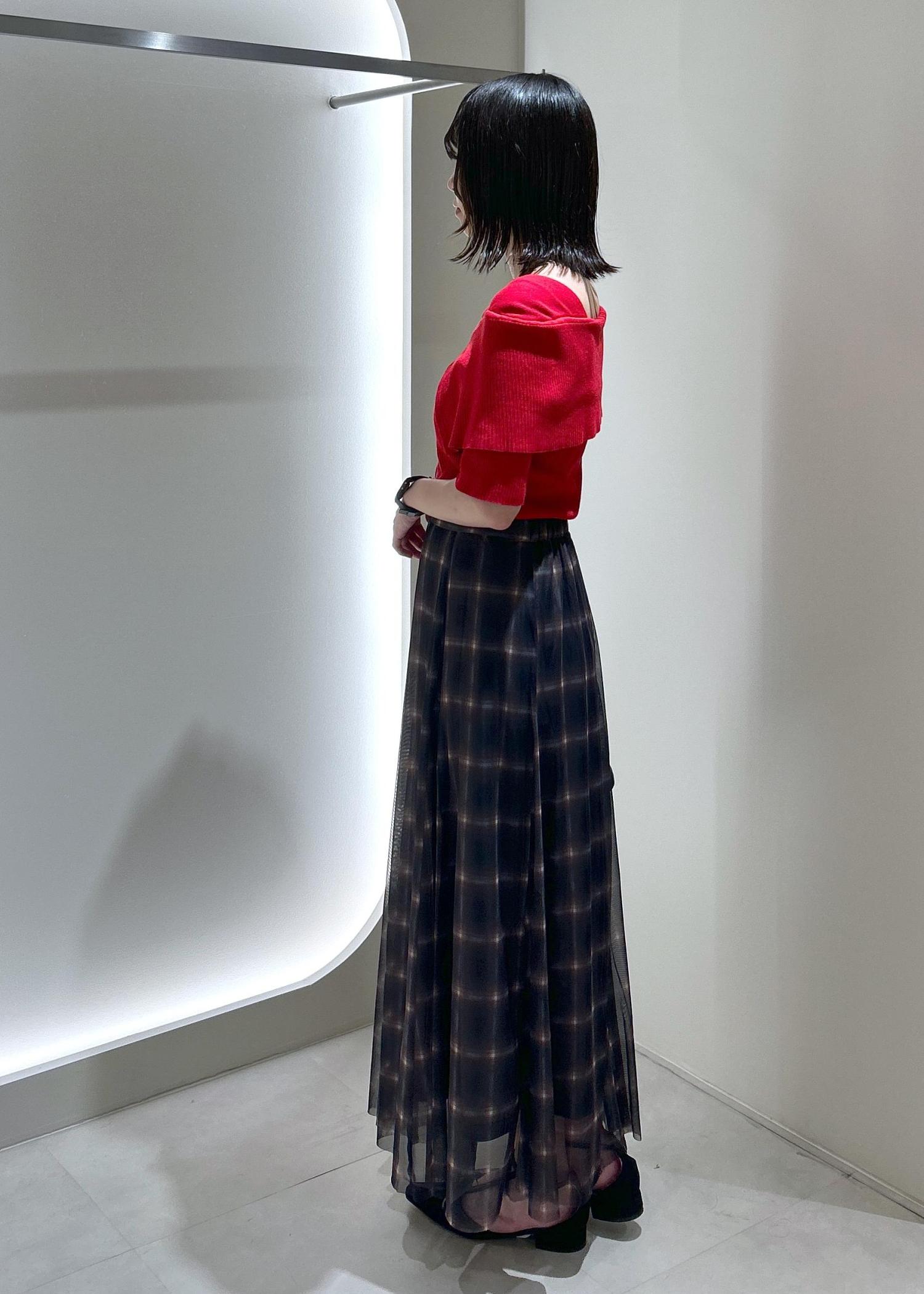 VIS【洗える】チュールプリントチェックスカートダークブラウン系 / F¥4,612レビューチュールが涼しげなスカートです。