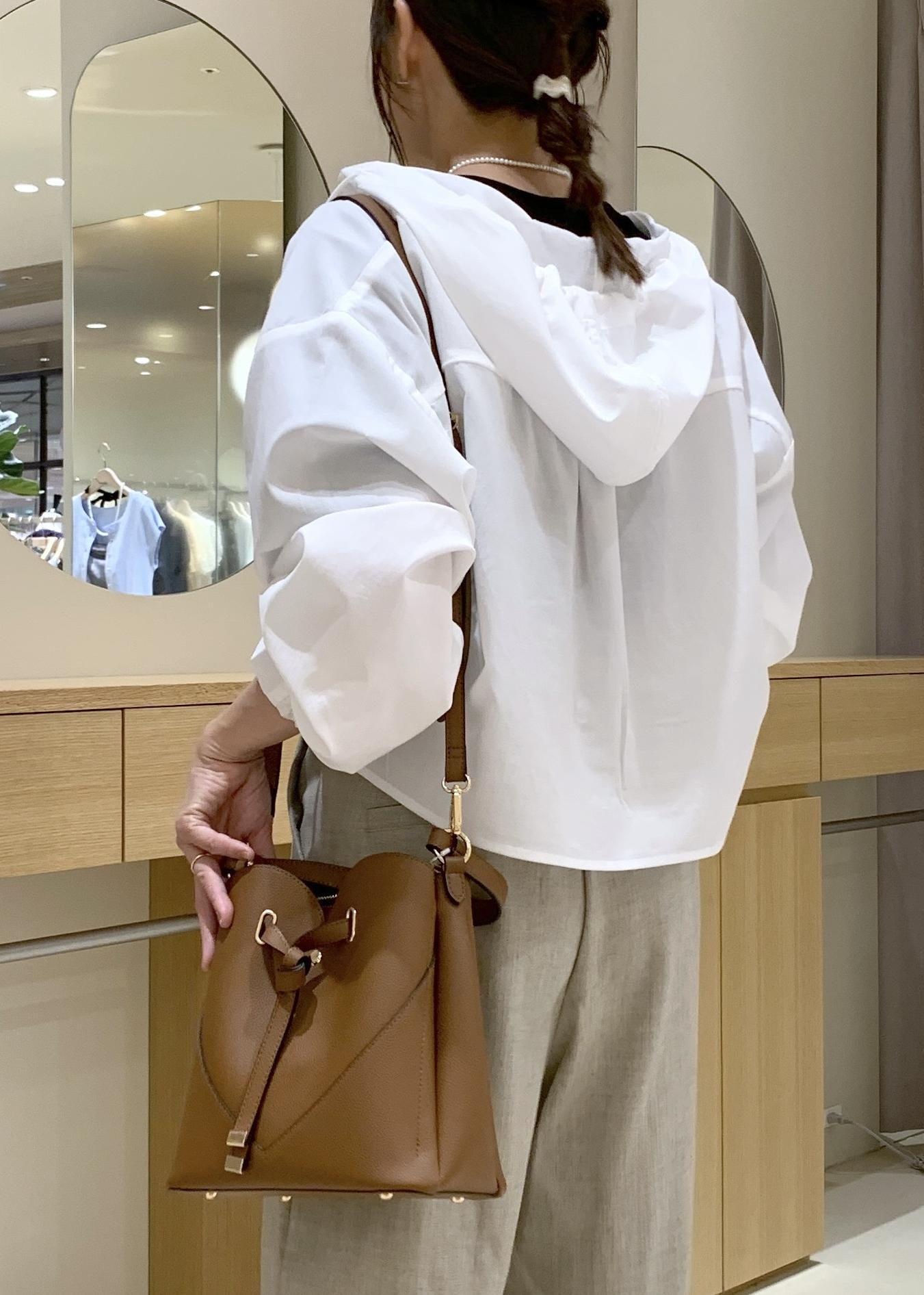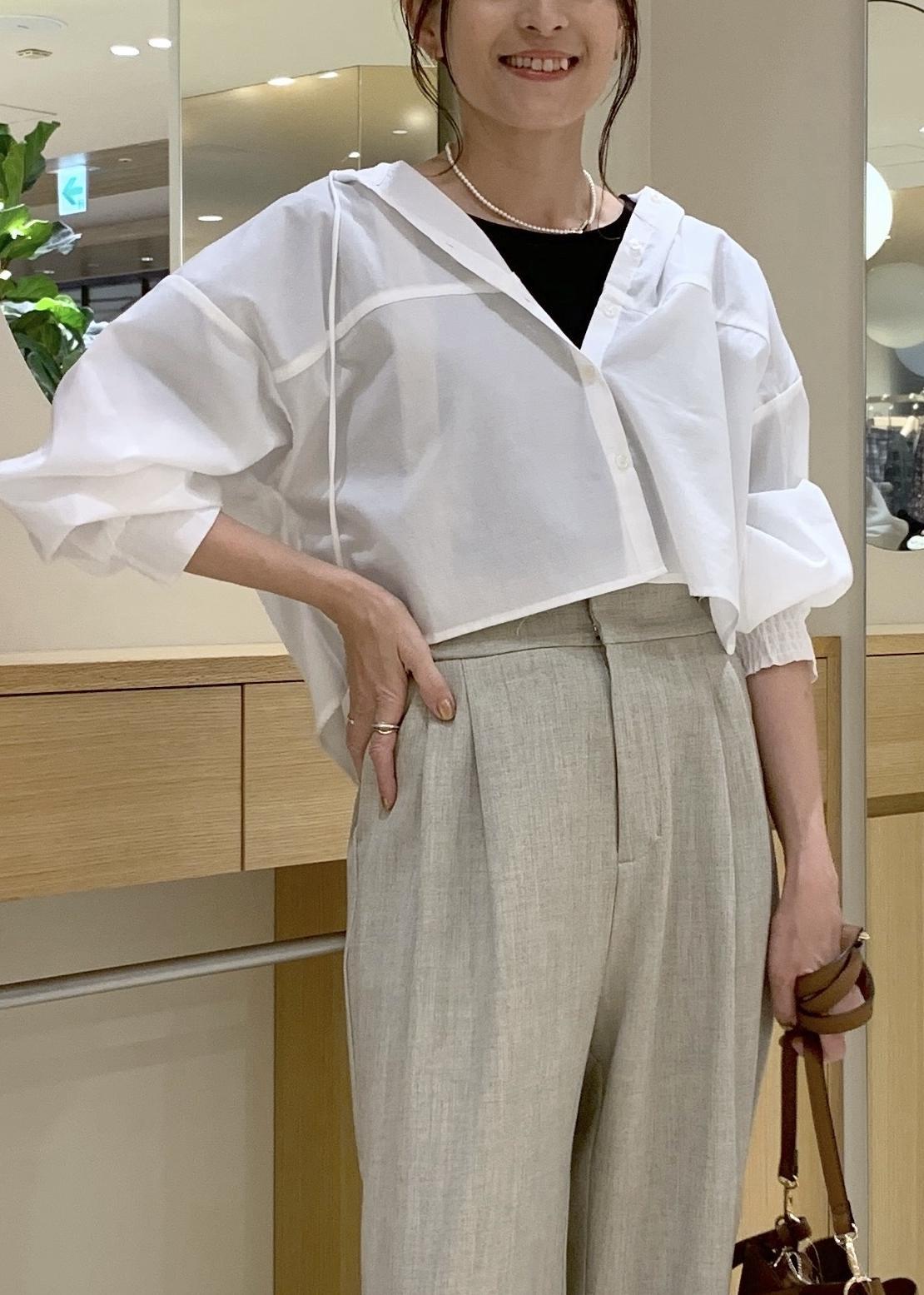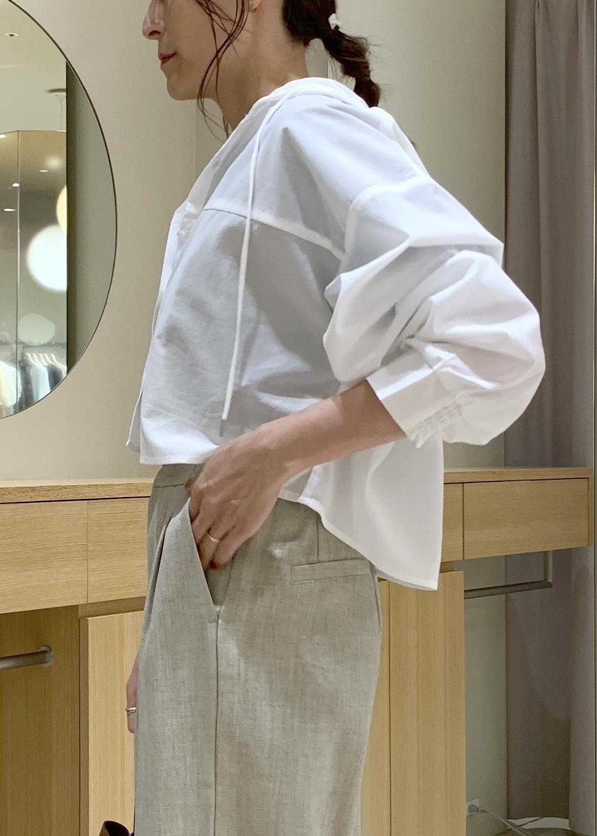 VISフード付きクロップドシアーシャツオフホワイト / F¥3,953レビュー薄手で柔らかく、まだまだ暑い今の時期でも使いやすいです。長袖でも袖口がゴム仕様なので、しっかり固定てきて抜け感を出せます。