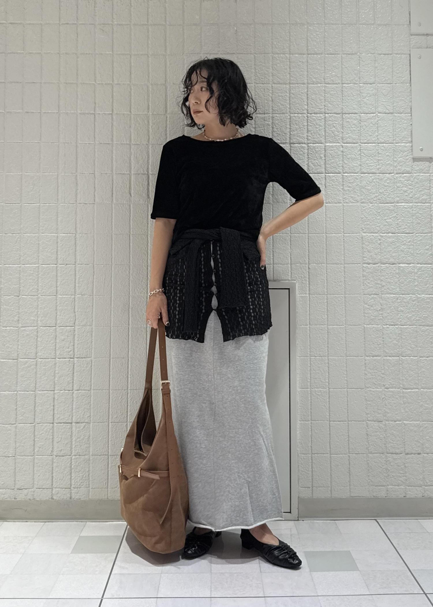 柔らかい素材だから腰巻きやレイヤードコーデも楽しめますよ♪