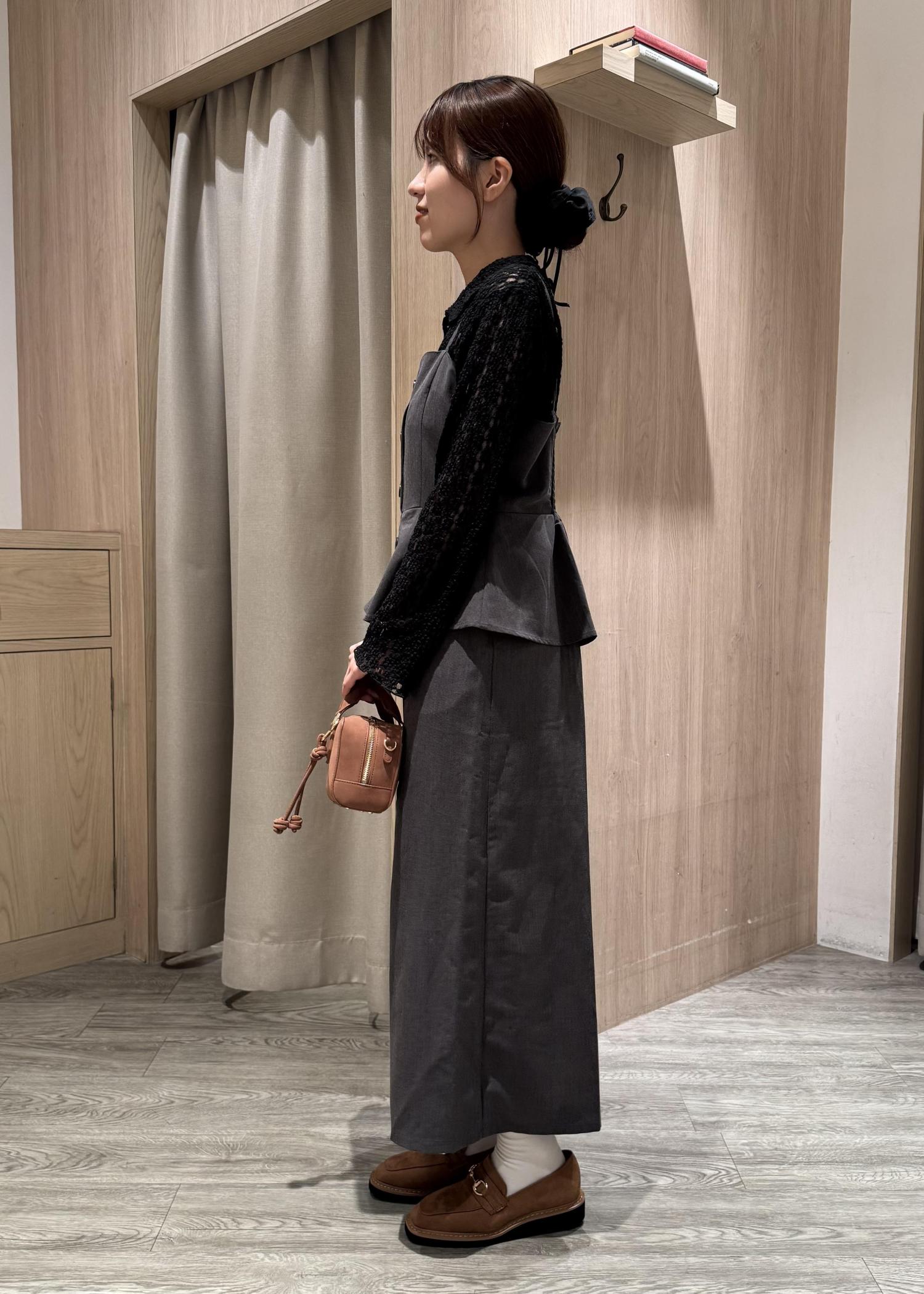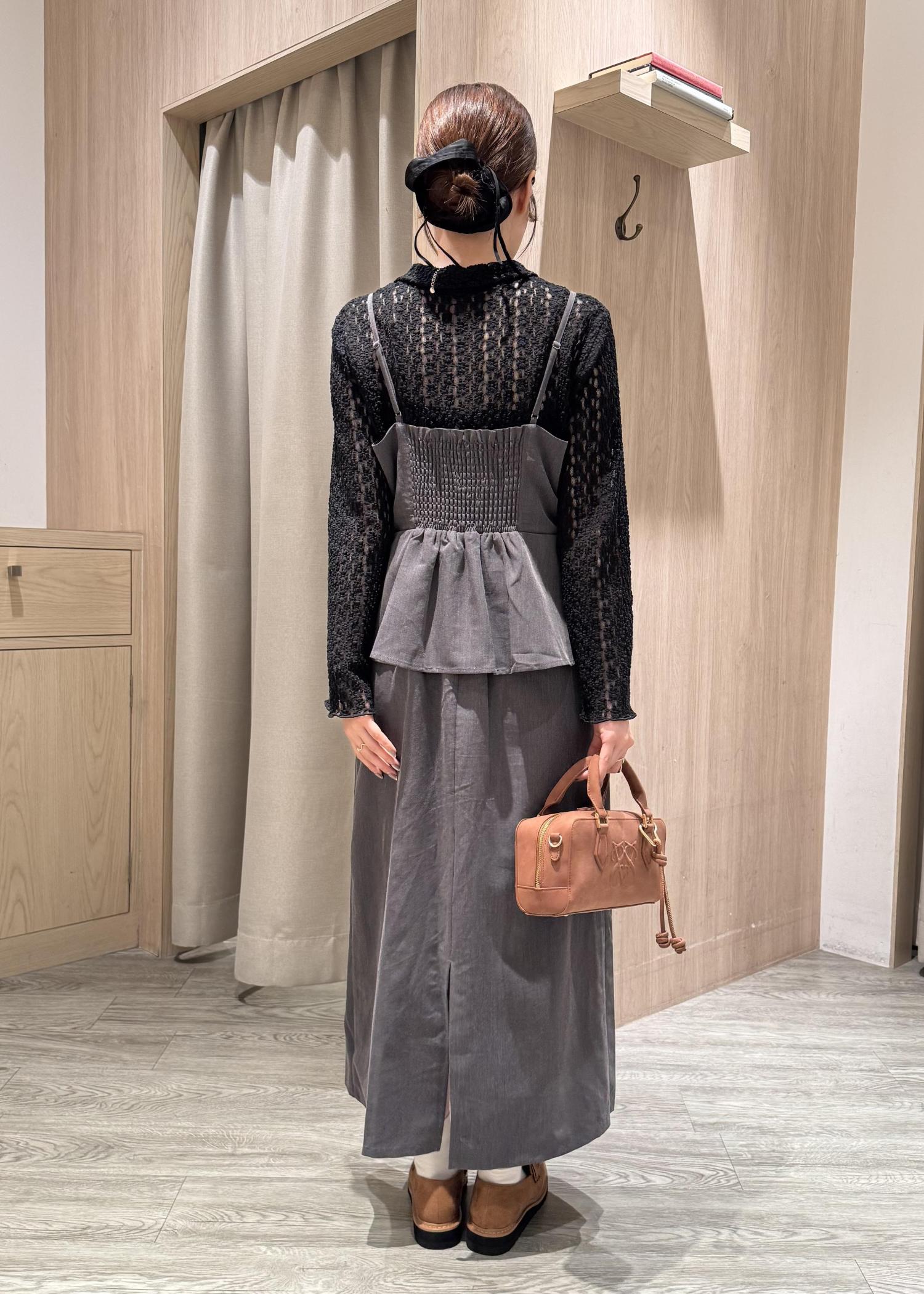 ワンピース一枚で簡単にキレイめレイヤードコーデが完成するのでオススメです◎ -