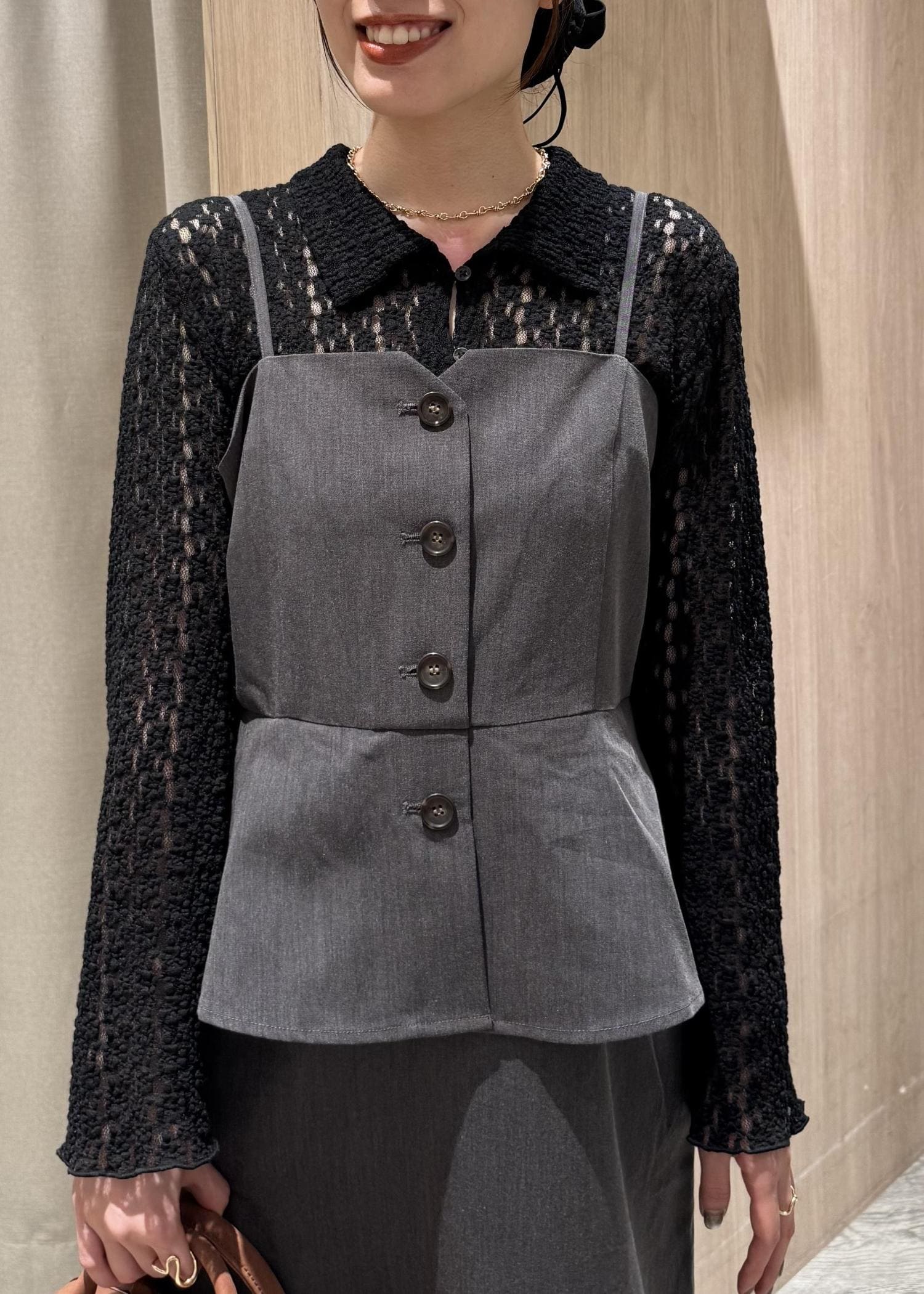 VISレースポロ襟カーディガンブラック / F¥3,842レビュー身長157cmでヒップに少しかかるくらいの丈感です!伸縮性もあり、程よく身体にフィットするので着痩せします◎襟付きなので、トップスとしても、インナーとしても着用できます♪首元も開きすぎていないので、骨格ウェーブの方も安心です!