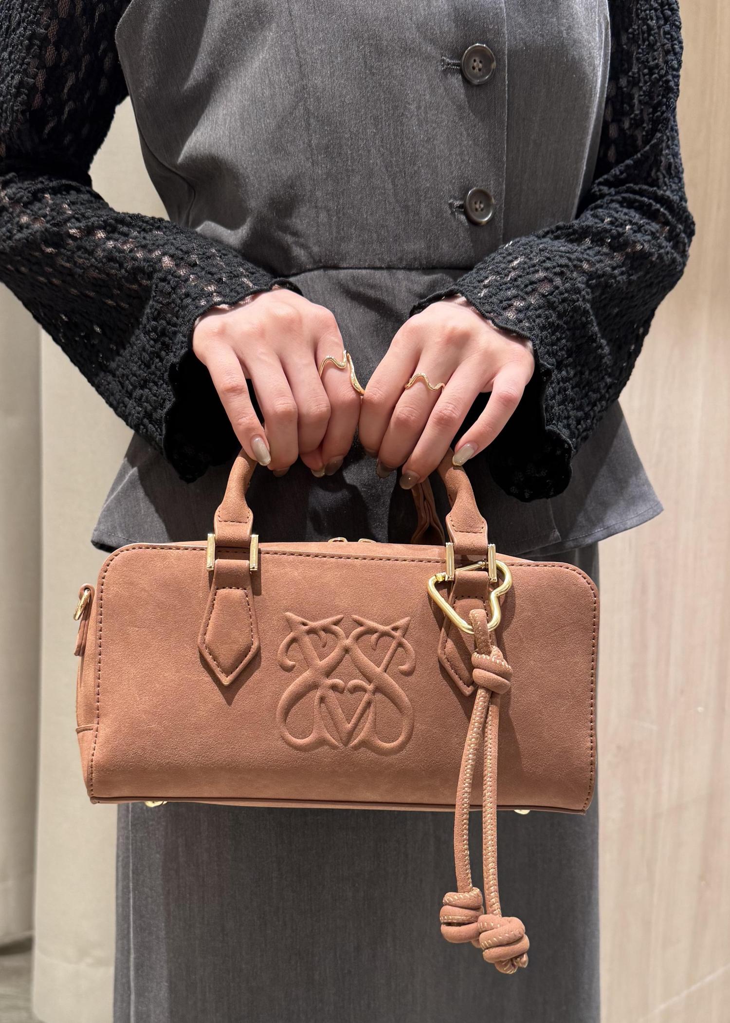 VISロゴスエードミニボストンバッグ/2WAYブラウン / F¥6,919レビュー500mlのペットボトルも入るサイズ感です!