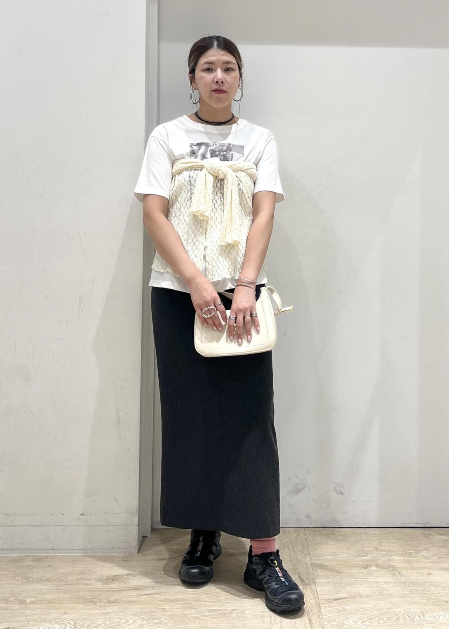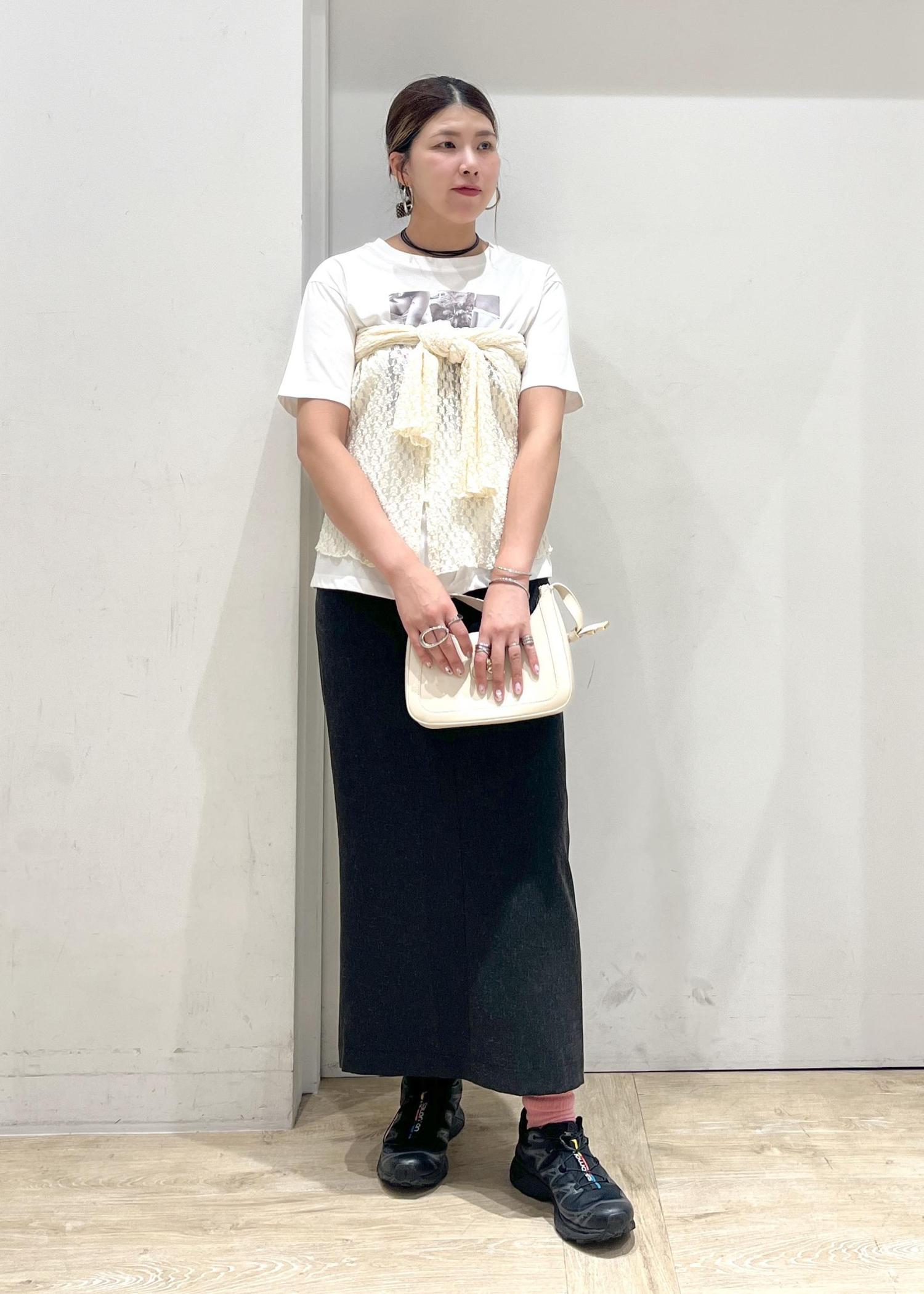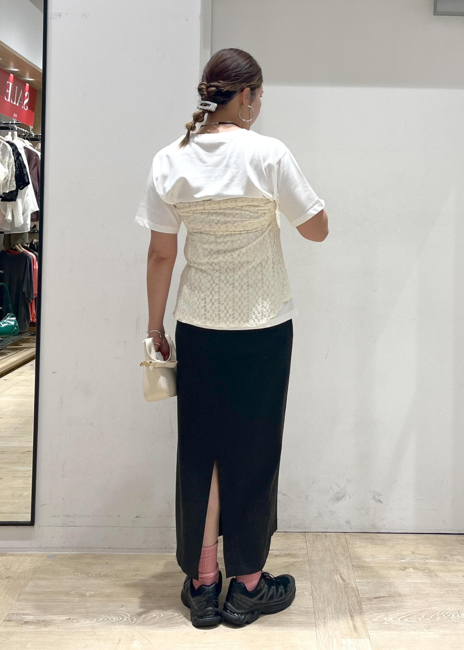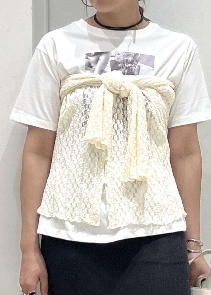 レースカットソーをあえてビスチェ風に巻いてみました!