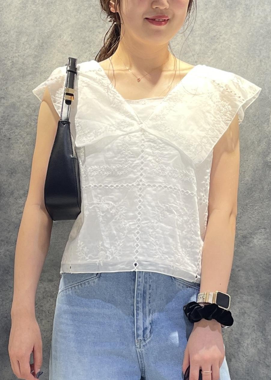 アウトレットVISコンパクトビッグカラーブラウスホワイト / F¥5,271レビュー大きな襟のおかげで顔が小さく見えます!