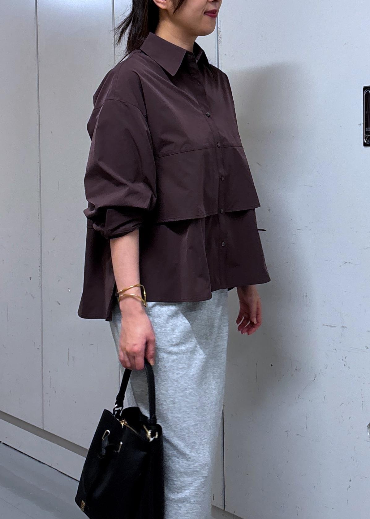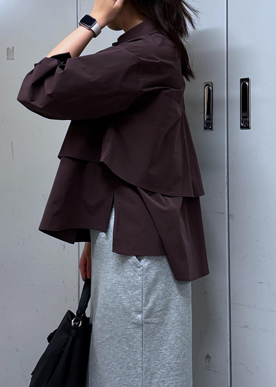 VIS裾ティアードオーバーシャツ/UVケア・イージーケアダークブラウン / F¥3,557レビューハリ感のある生地でふわっとしたオーバーサイズシルエットです。ボトムにインせず着れるのが◯羽織りとしても使えるので季節の変わり目に重宝します。