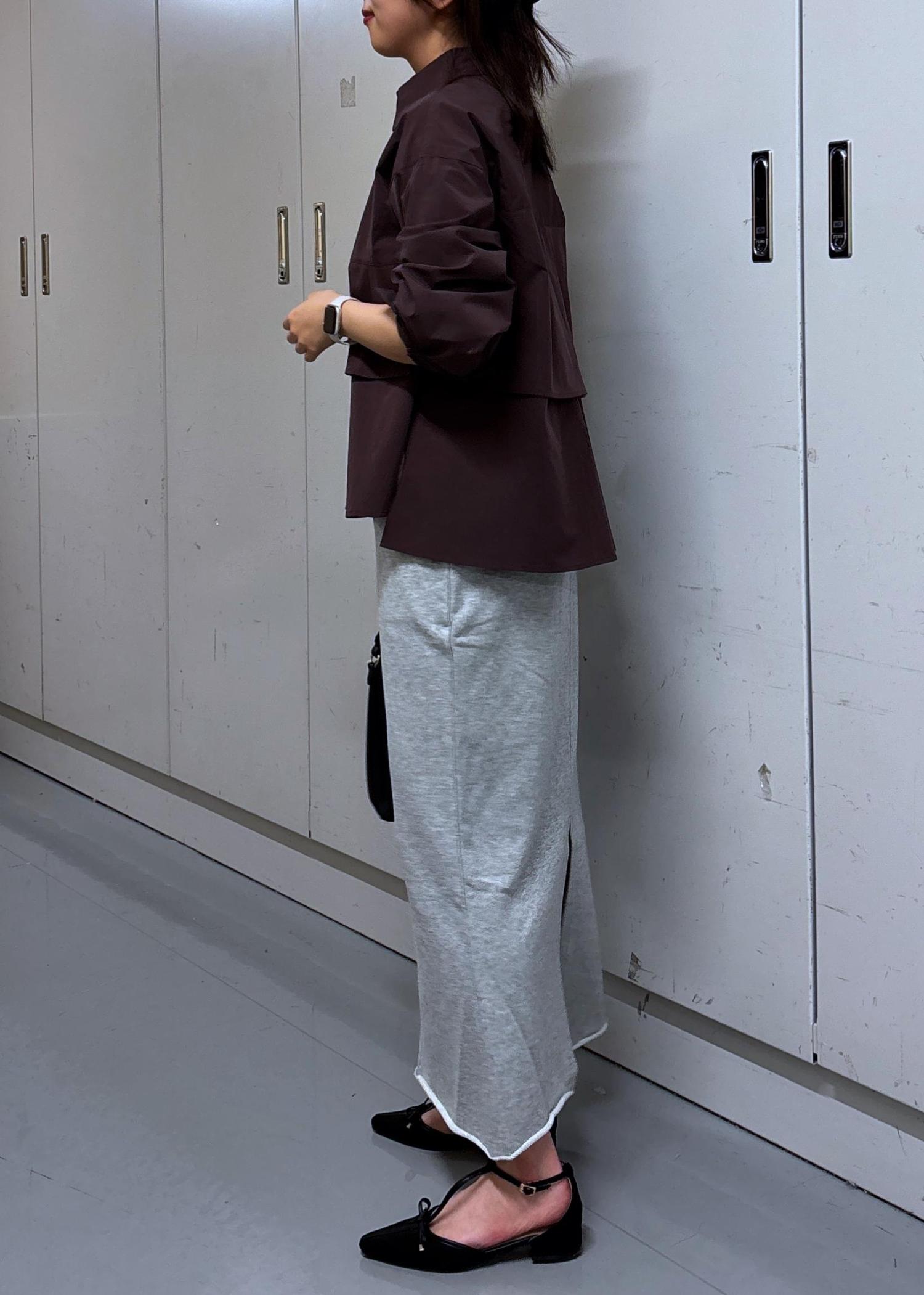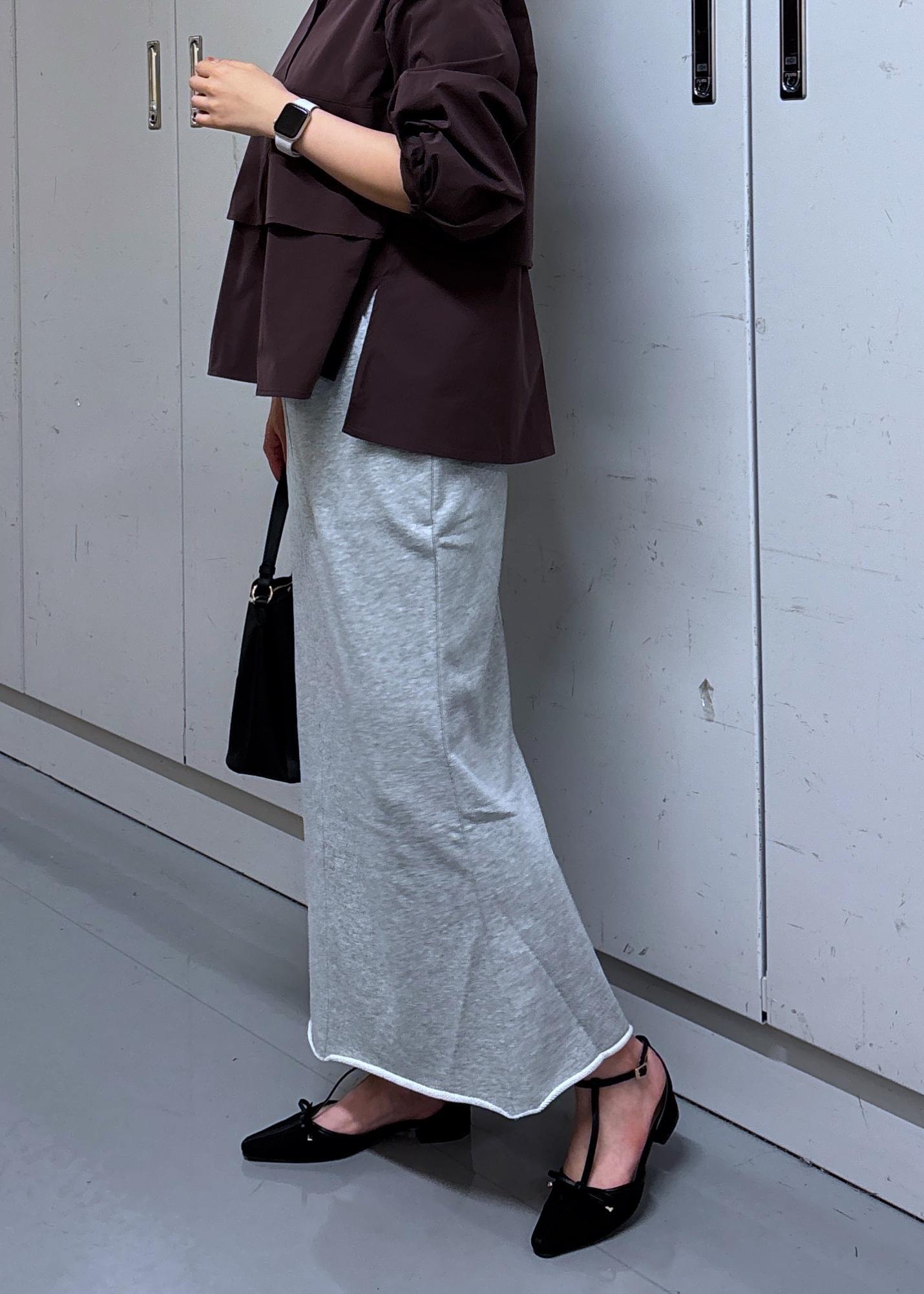 VISミニ裏毛ナロースカートライトグレー / F¥5,489レビュー丈長いので身長が高い方にオススメです。身長173センチでくるぶしがかかる長さ。タイトすぎないサイズなので、カジュアルコーデに合わせやすいです。ウエストはゴムなのでストレスフリーです♫