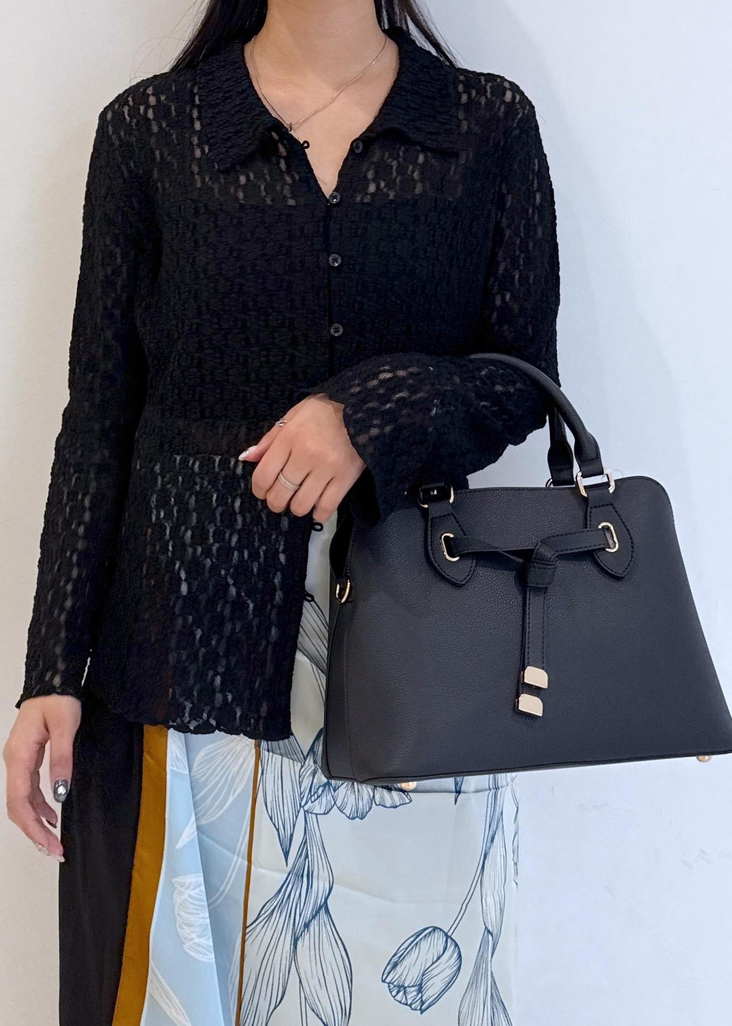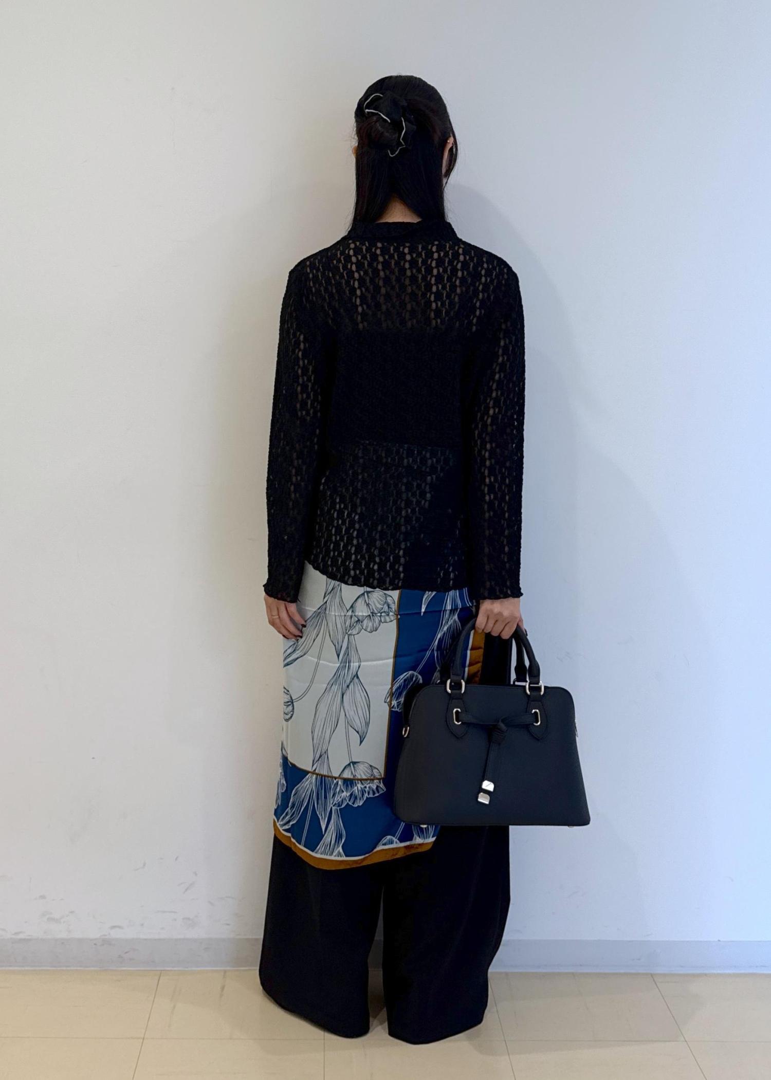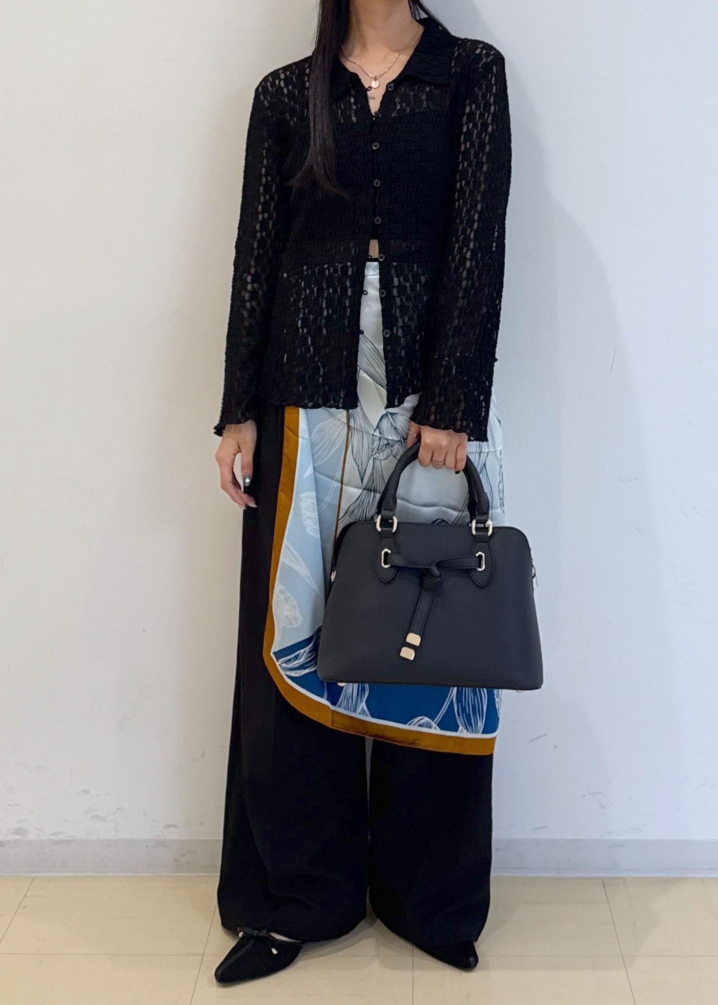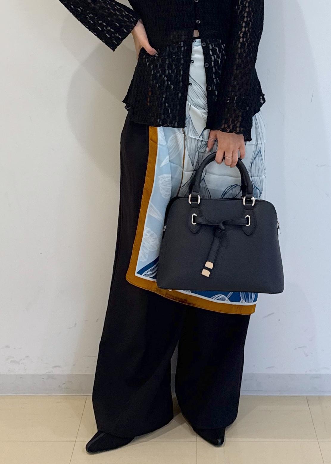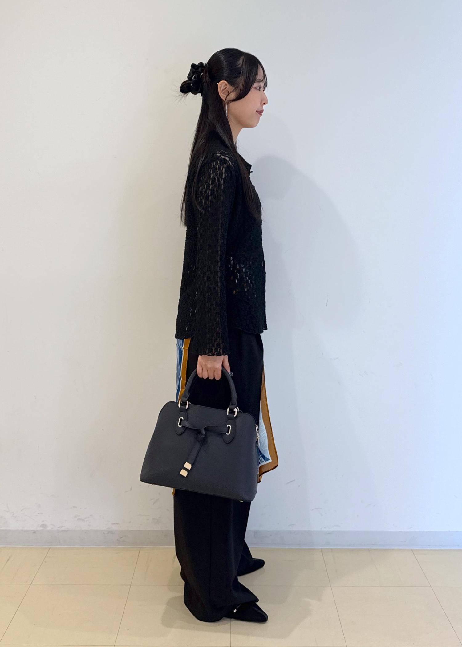 ブラックのワントーンコーデで、少し重たすぎるかな?と思ったので、新作のスカーフを巻いてみました♪