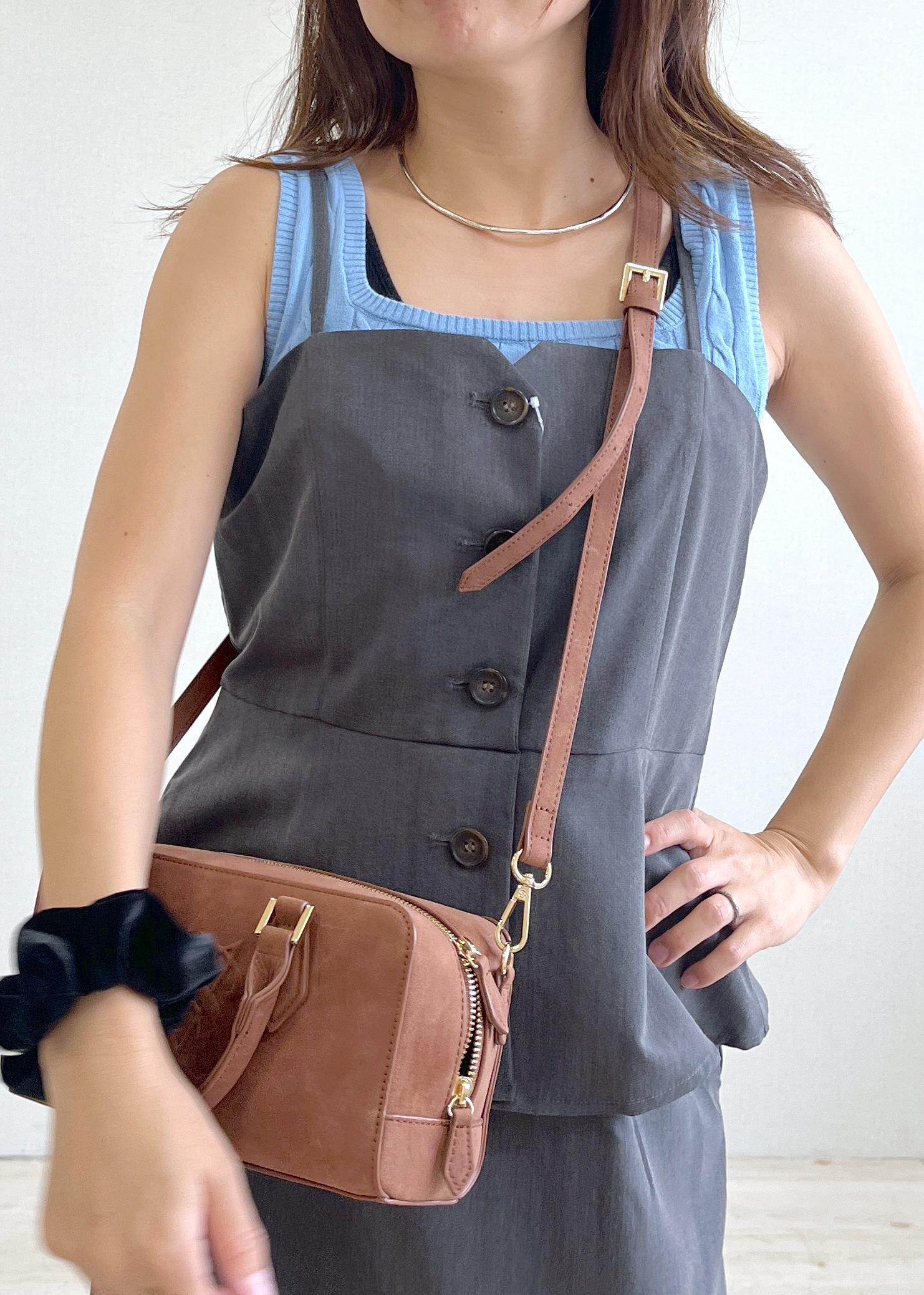 VISロゴスエードミニボストンバッグ/2WAYブラウン / F¥6,919レビュースウェード素材で存在感のあるバッグ。500mlペットボトルも長財布も入れられます!チャーム付きなのも嬉しいポイント。持つだけで季節感先取りな可愛いバッグです。
