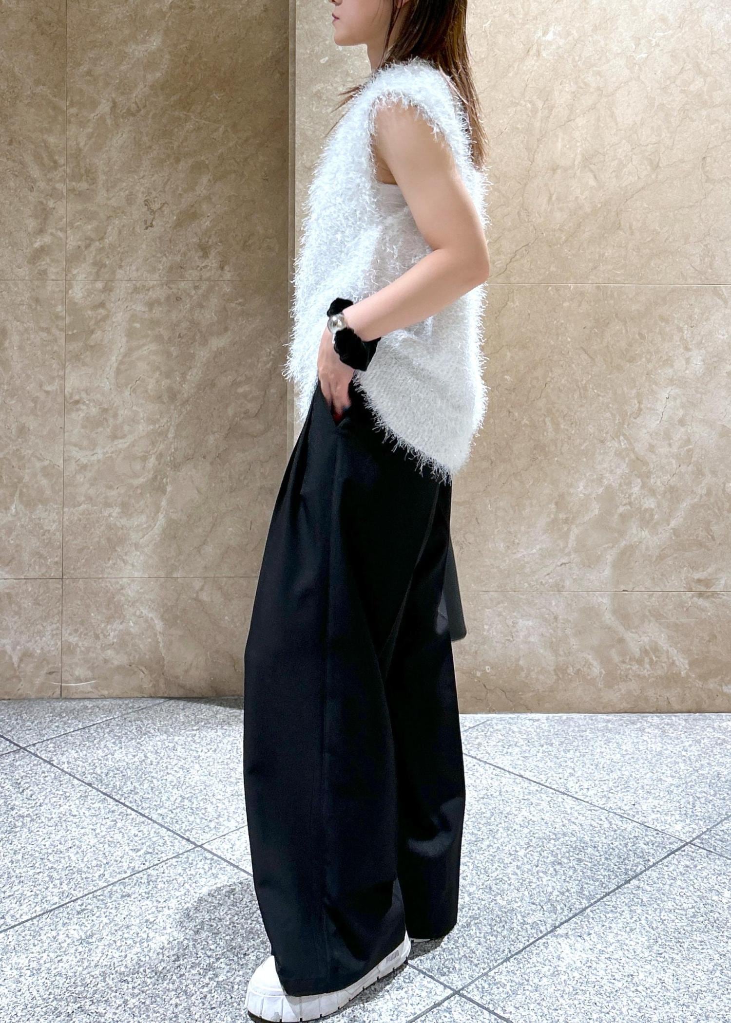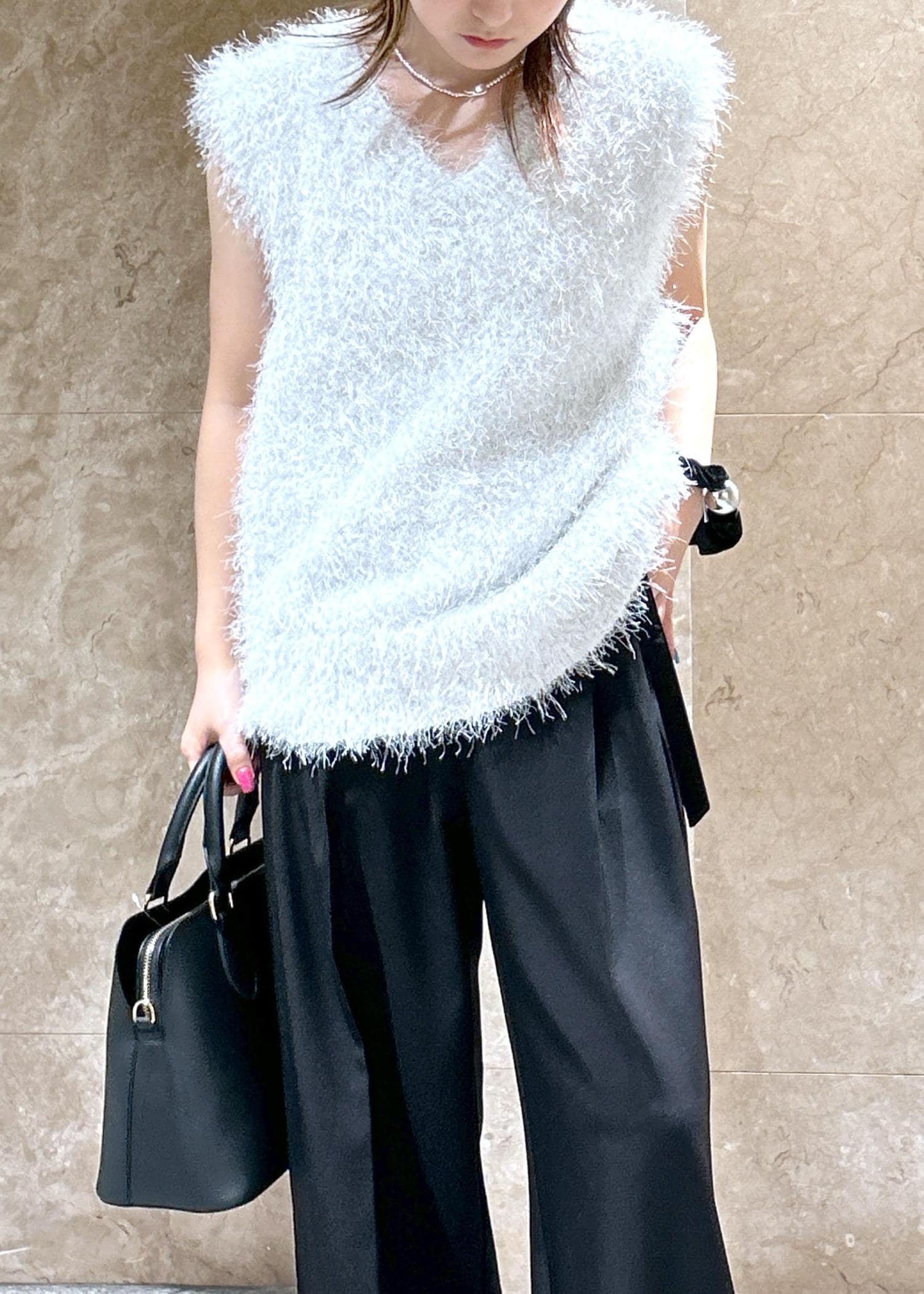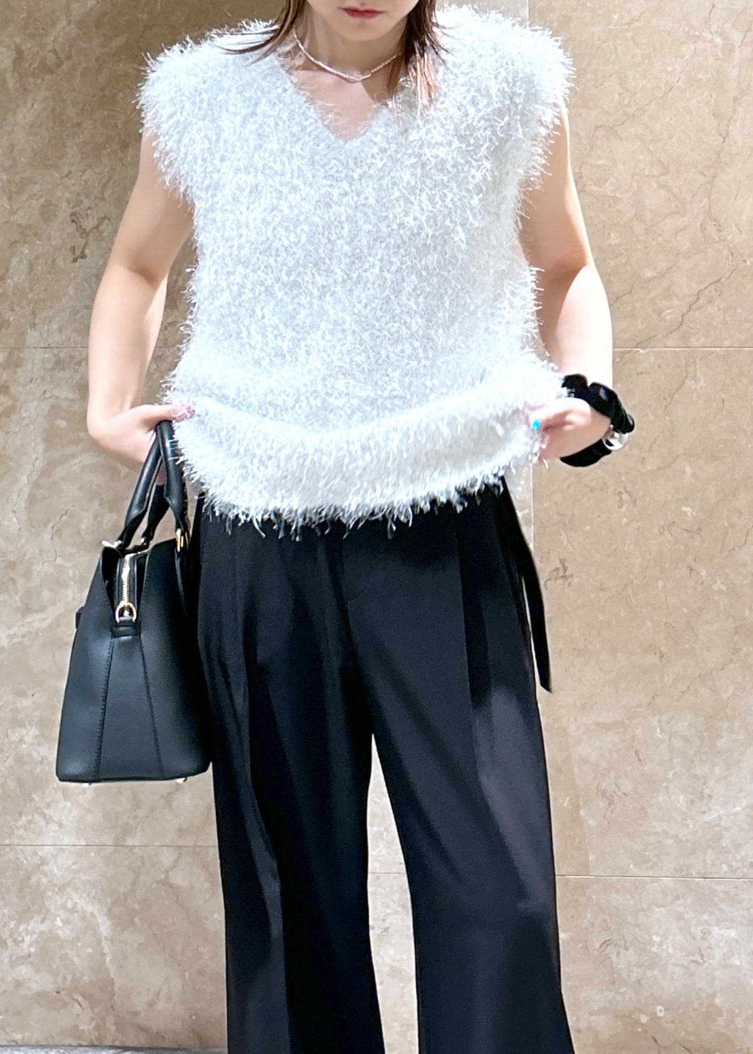 VIS【WEB限定サイズ:MT/着丈が選べる】【洗える】フェザーヤーンニットベストホワイト系 / MT¥3,293レビューコンパクトなサイズ感ですがピッタリとはせず、すっきり見せてくれます。