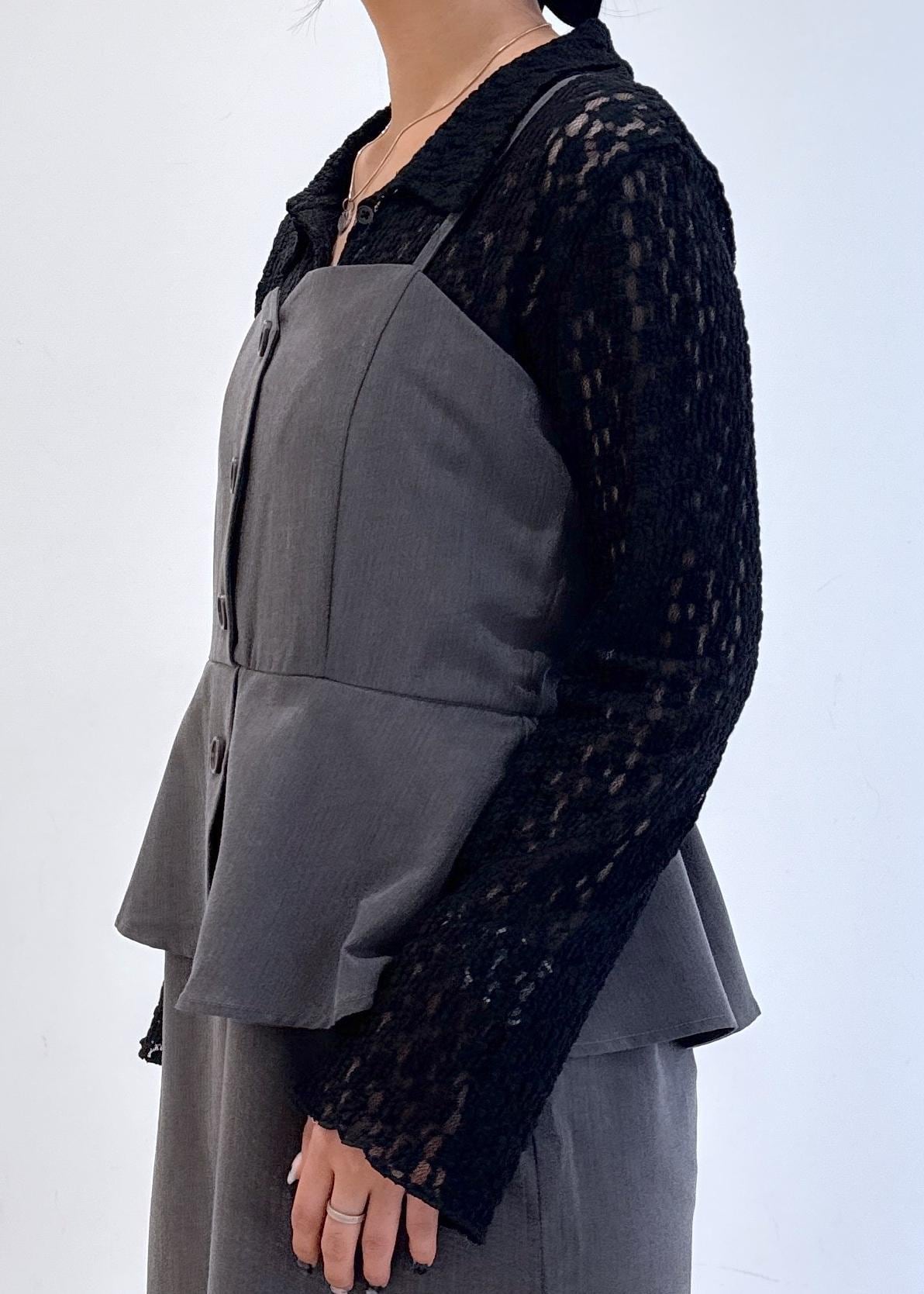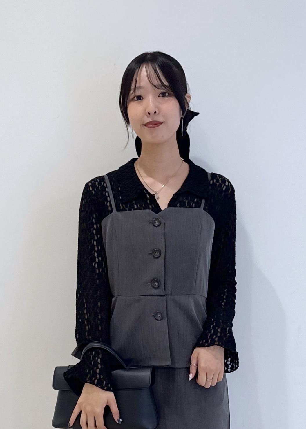 VISレースポロ襟カーディガンブラック / F¥3,842レビュー袖が少し長めで、トレンド感のあるデザインが可愛い。ボタンを外せば羽織にもできます。チクチク感はなく、肌触り柔かいのでストレスフリーで着用できます