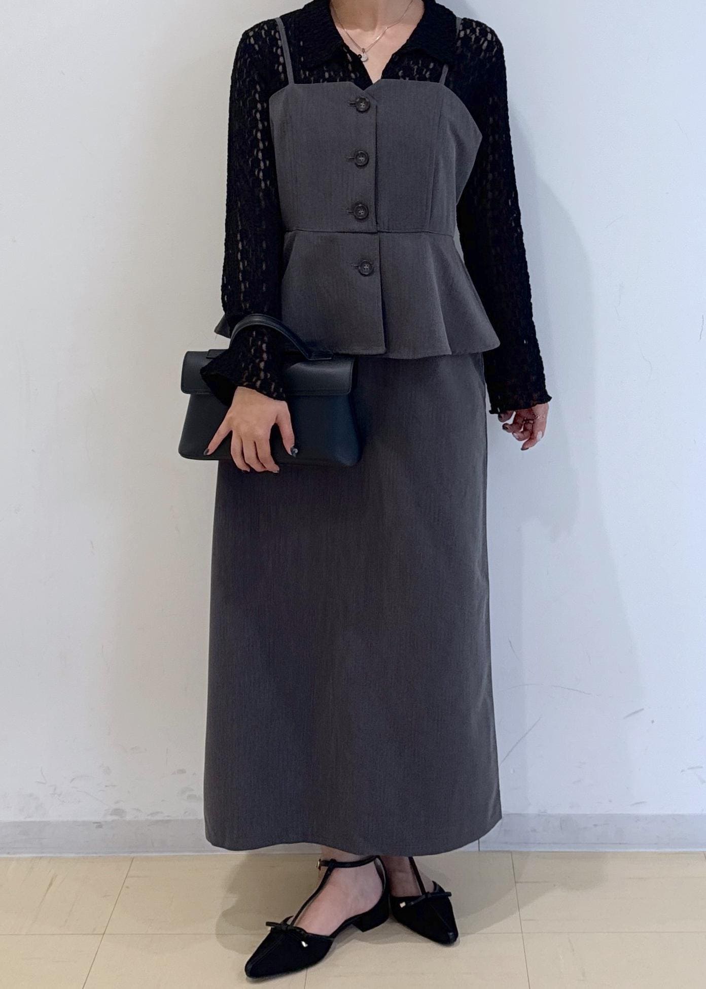 VISビスチェドッキングライクキャミワンピースグレー / F¥7,689レビュー骨格ウェーブでおしりや骨盤周りが気になる体型ですが、ペプラム型なので綺麗に体型カバーができて気になりませんでした!