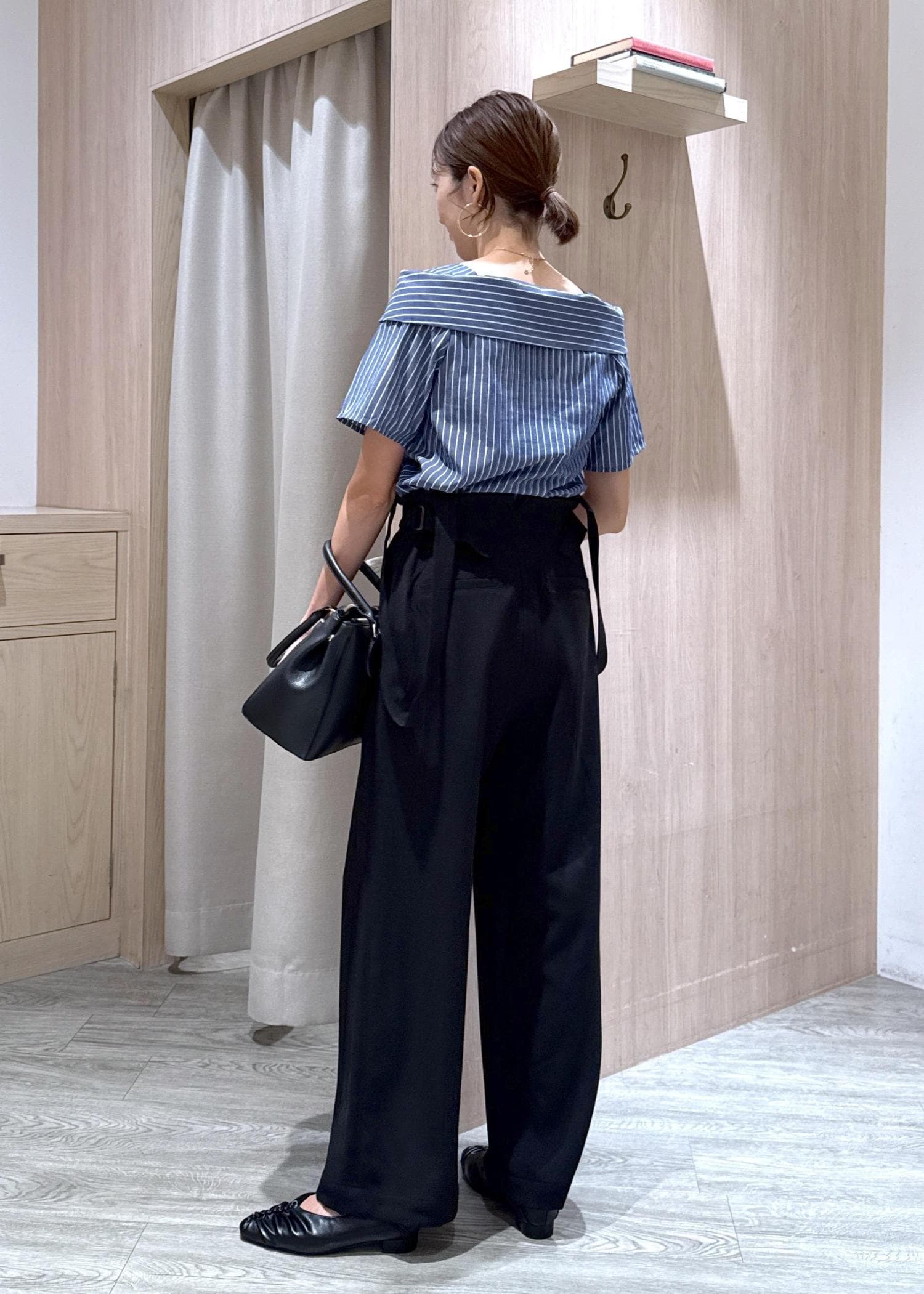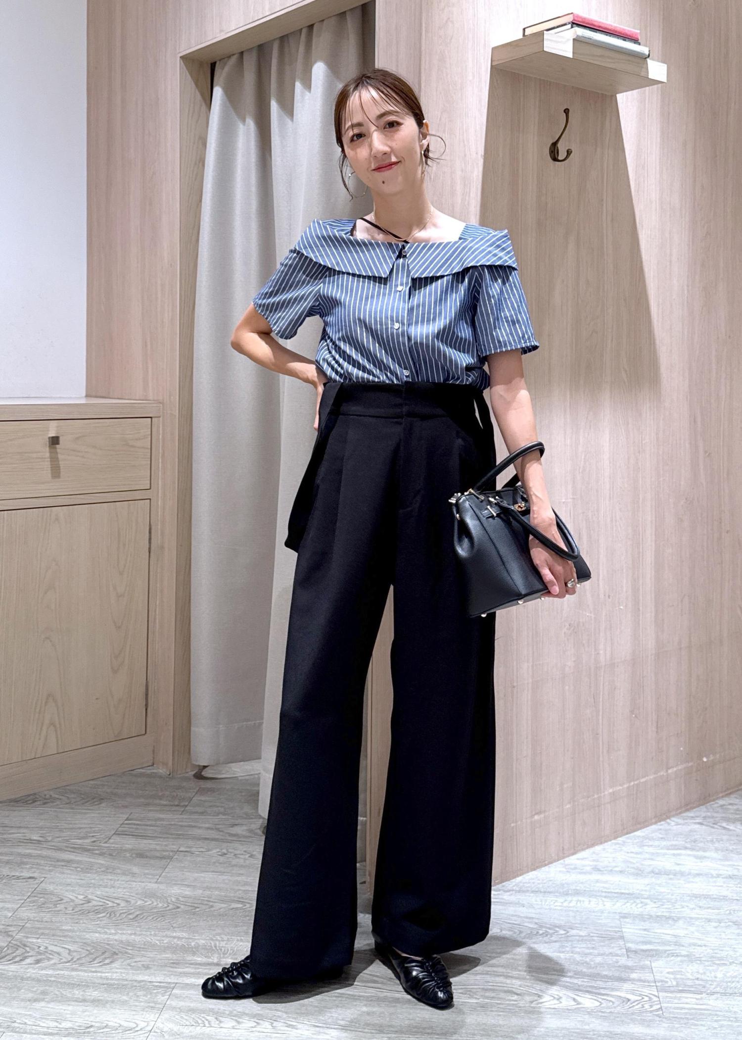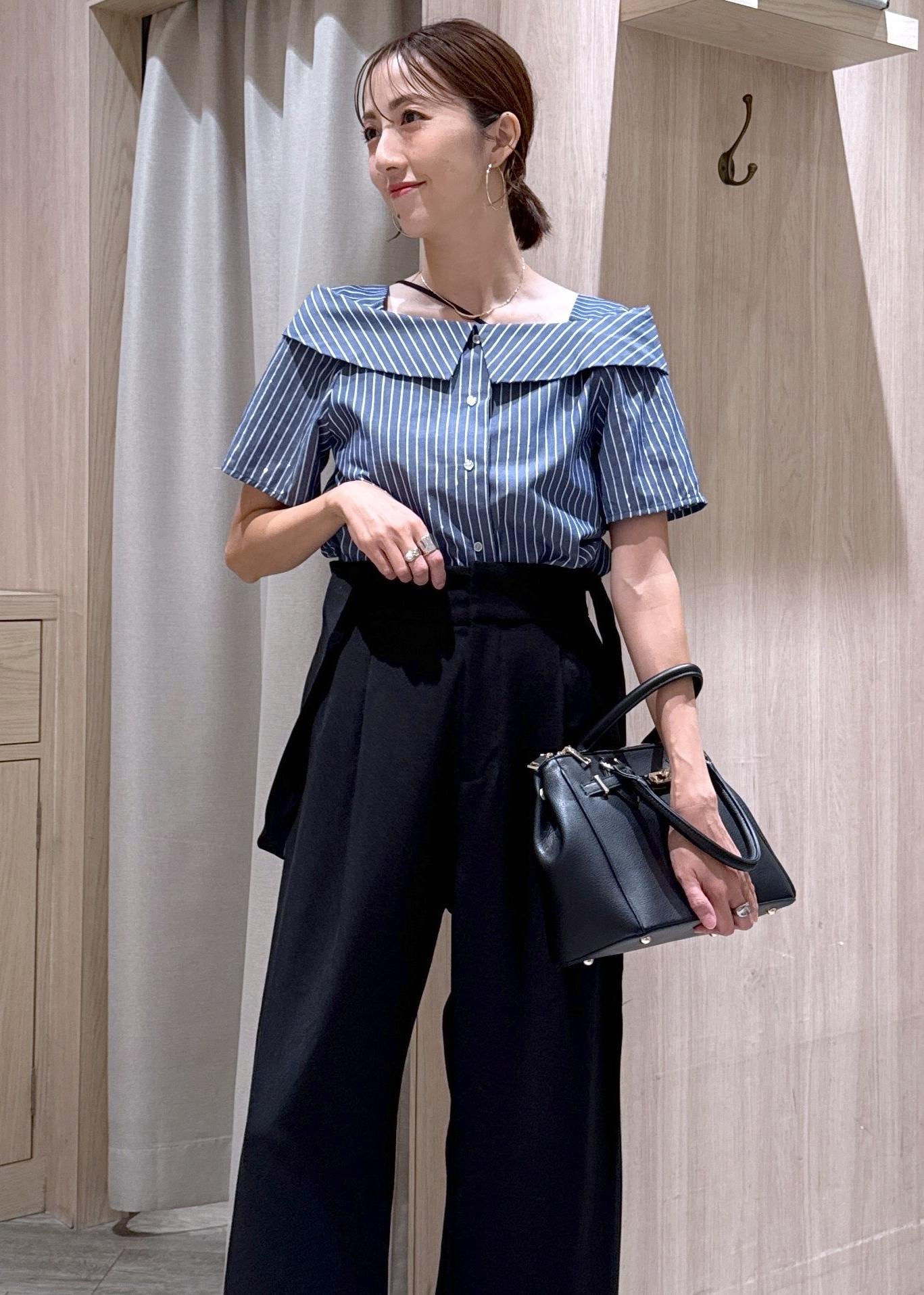 ハリ感のある素材のブラウスでシワになりにくいのも嬉しい◎