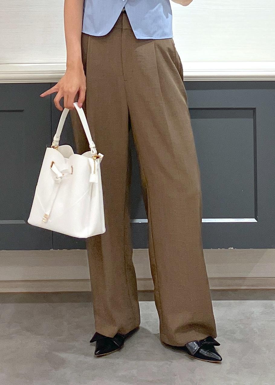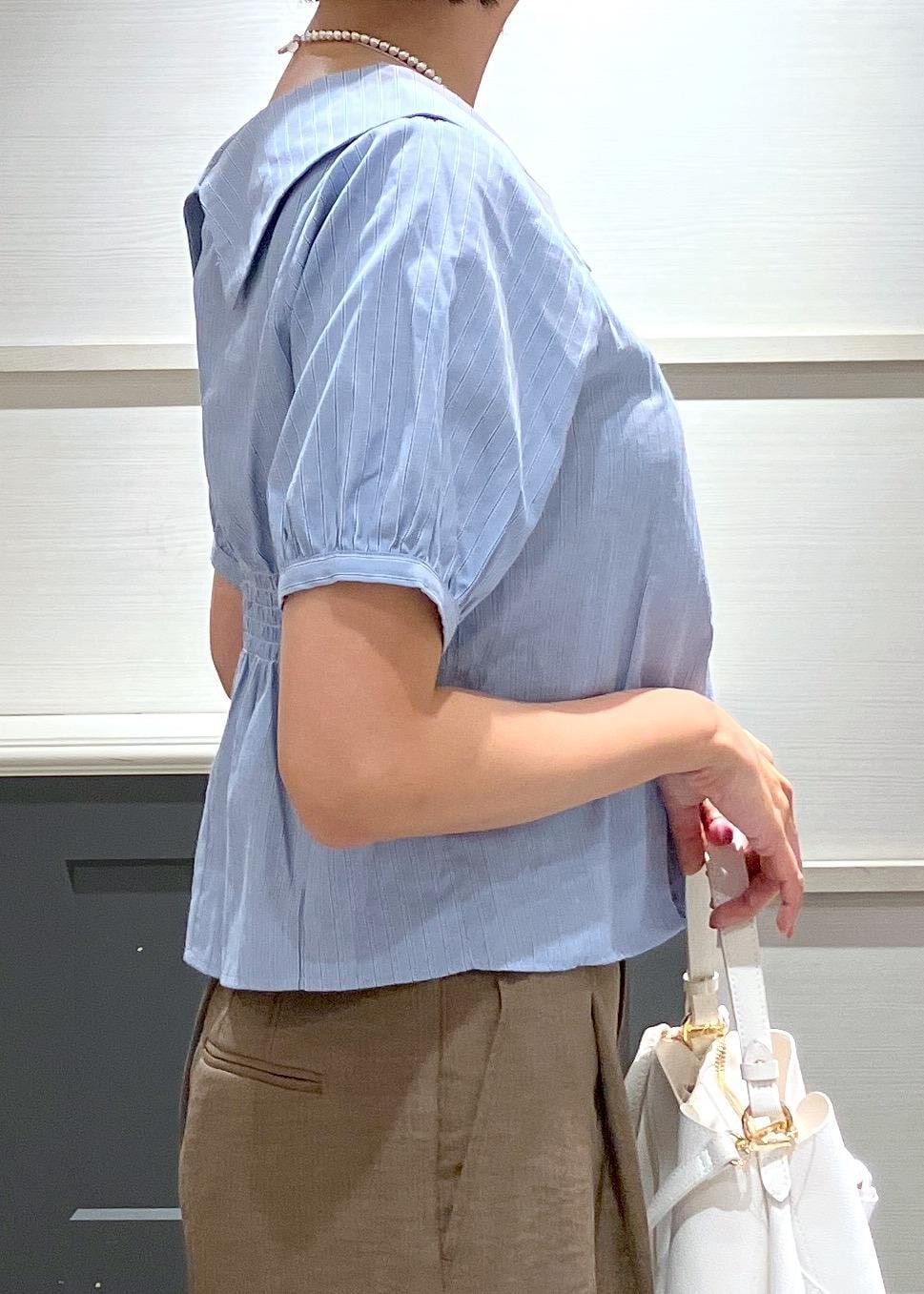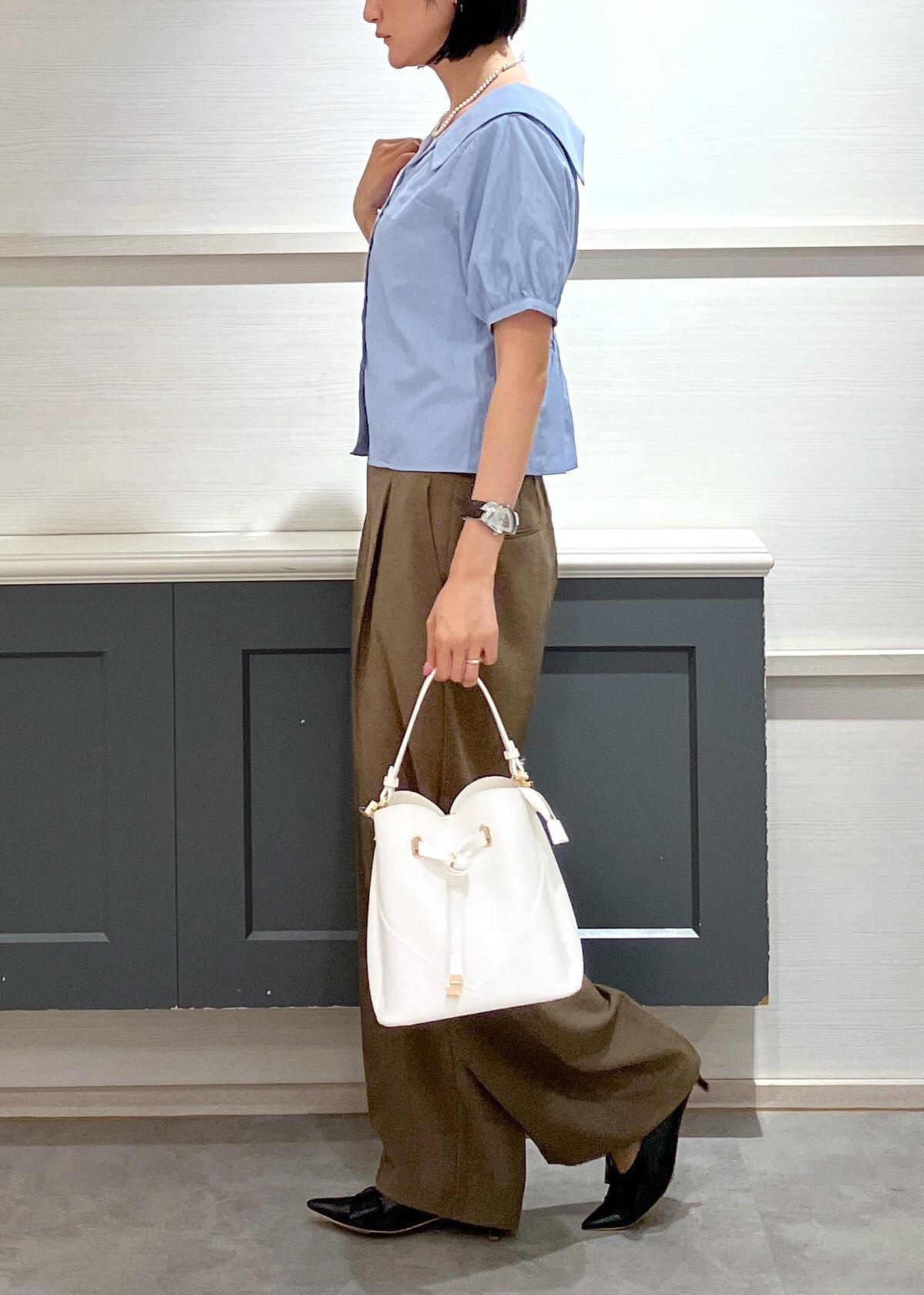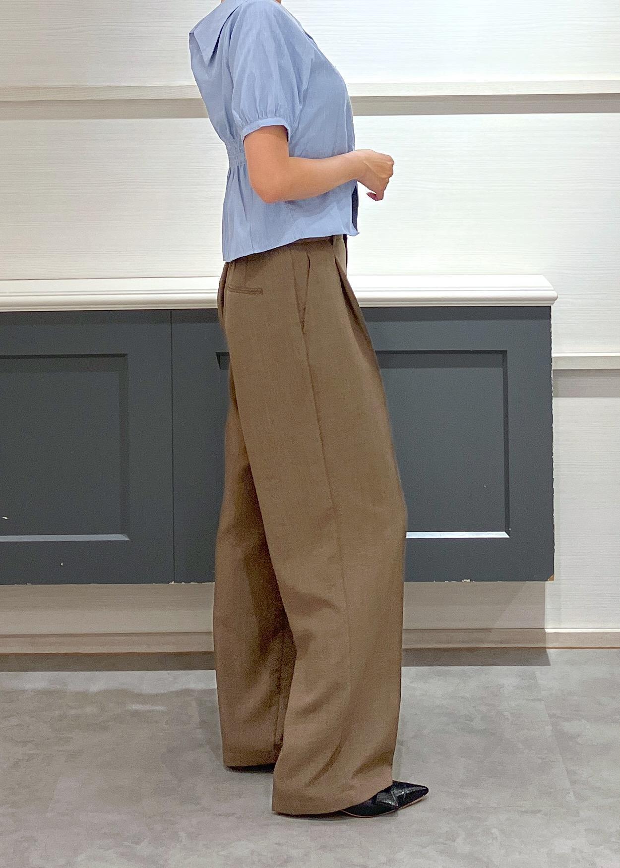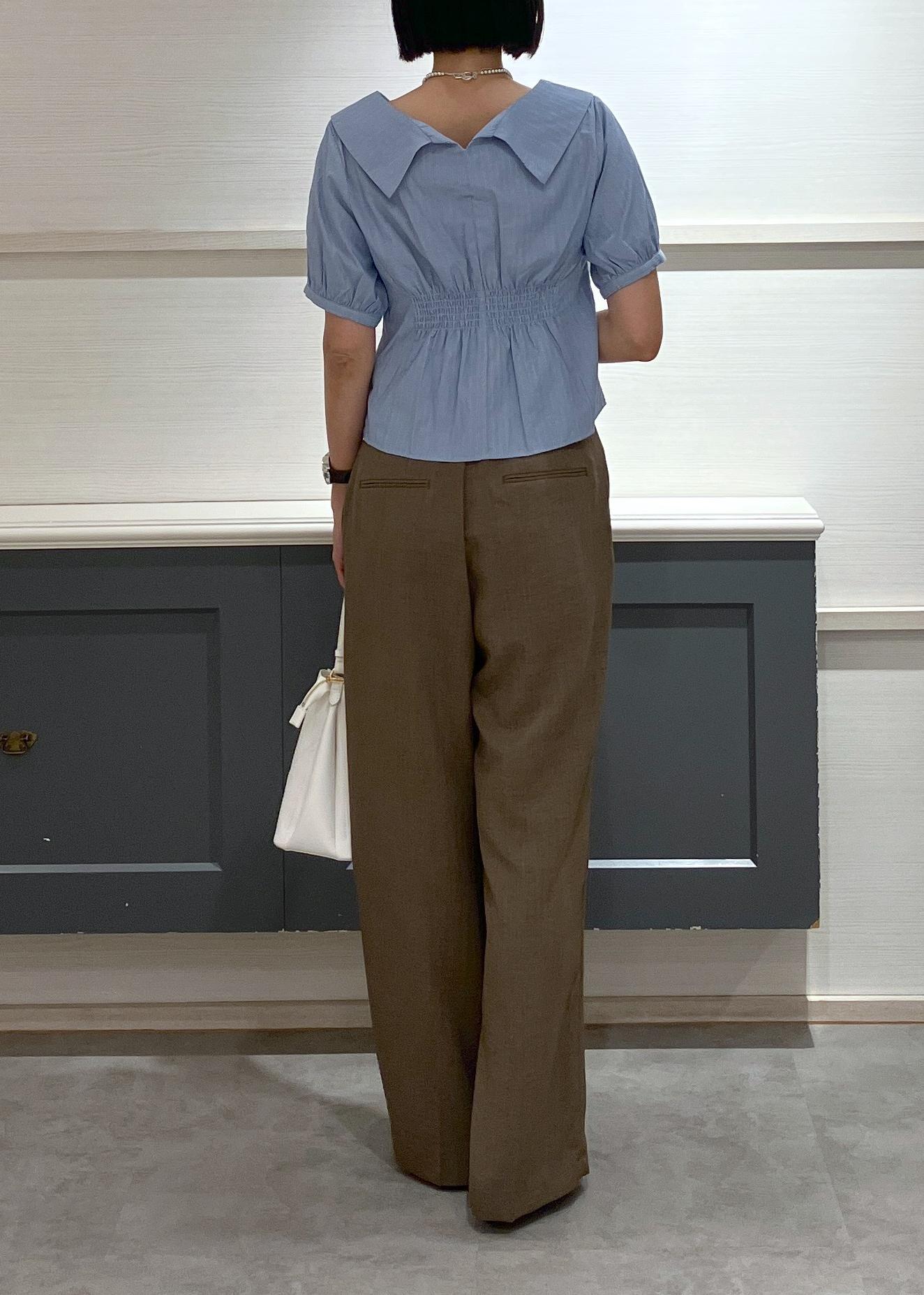 トップスは快適なブルーにボトムスに秋っぽいカラーを取り入れて夏に取り残されないスタイリングにしました♡