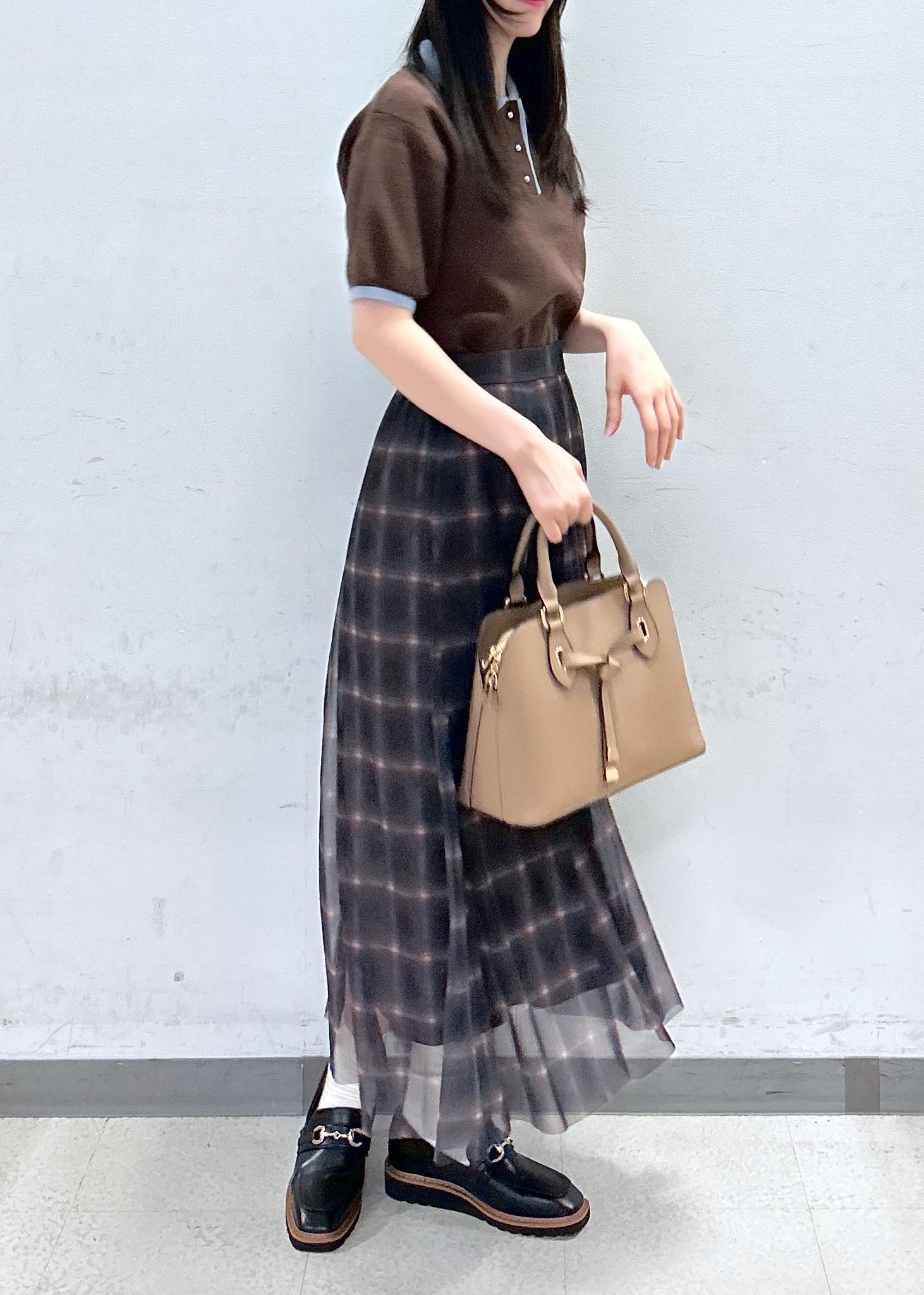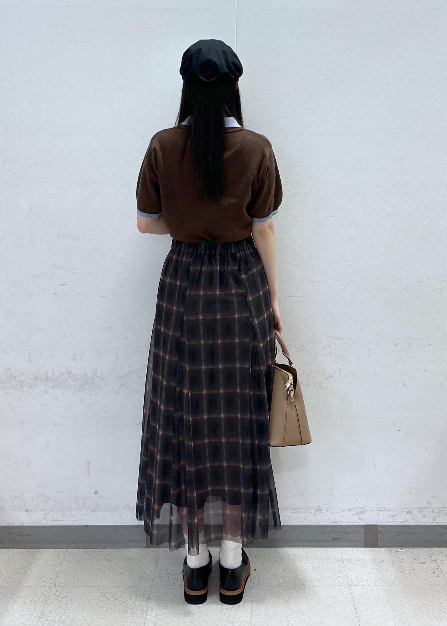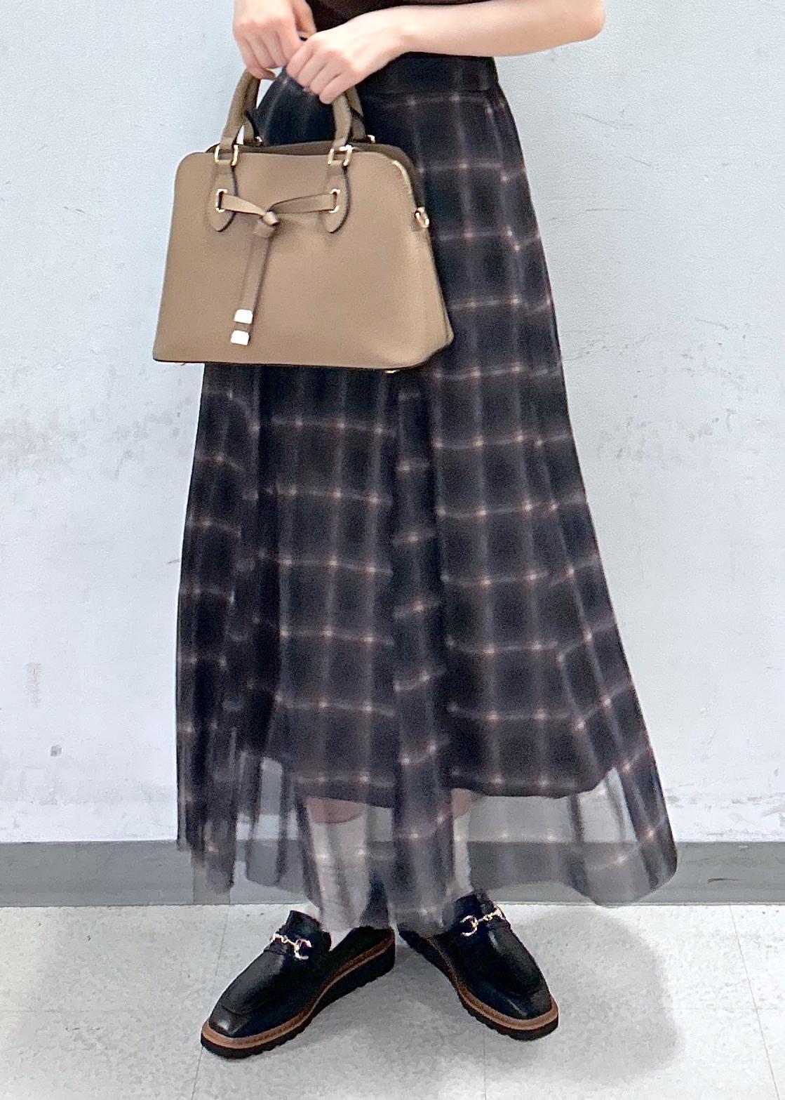 VIS【洗える】チュールプリントチェックスカートダークブラウン系 / F¥4,612レビューチュールがふわっと風に揺れるフェミニンなスカート。裾に向かって3角のマチが入っているので腰周りはスッキリ、蹴回しは広めの女性らしいシルエットです♡柔らかい素材&ウエストがゴムなので窮屈感無く楽に着用していただけます。