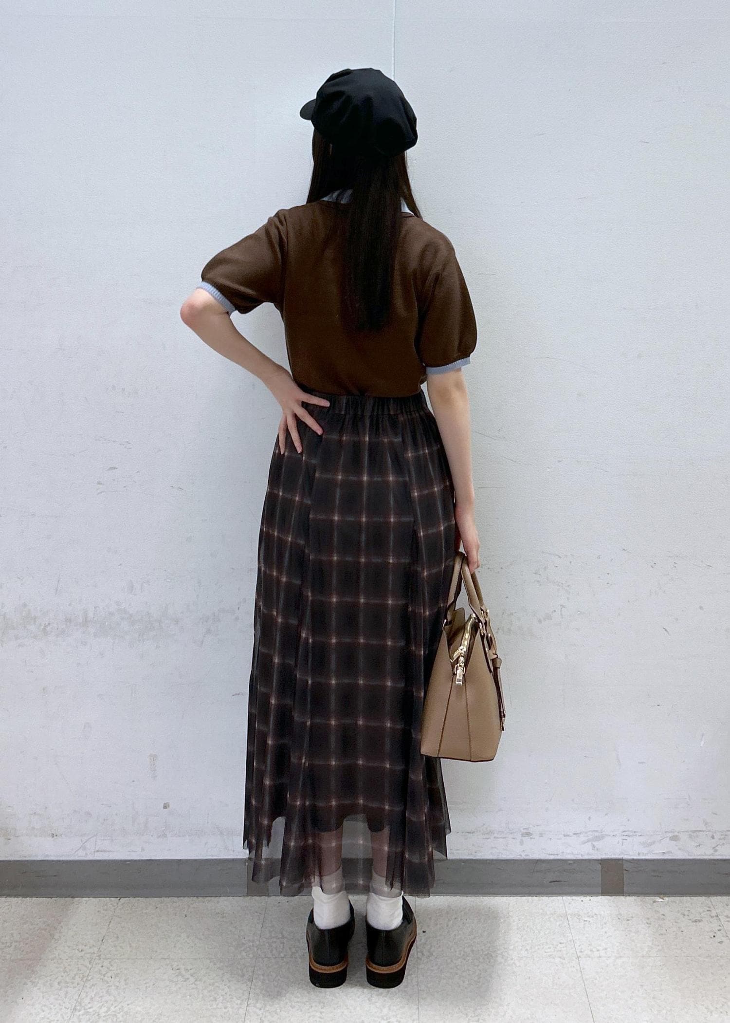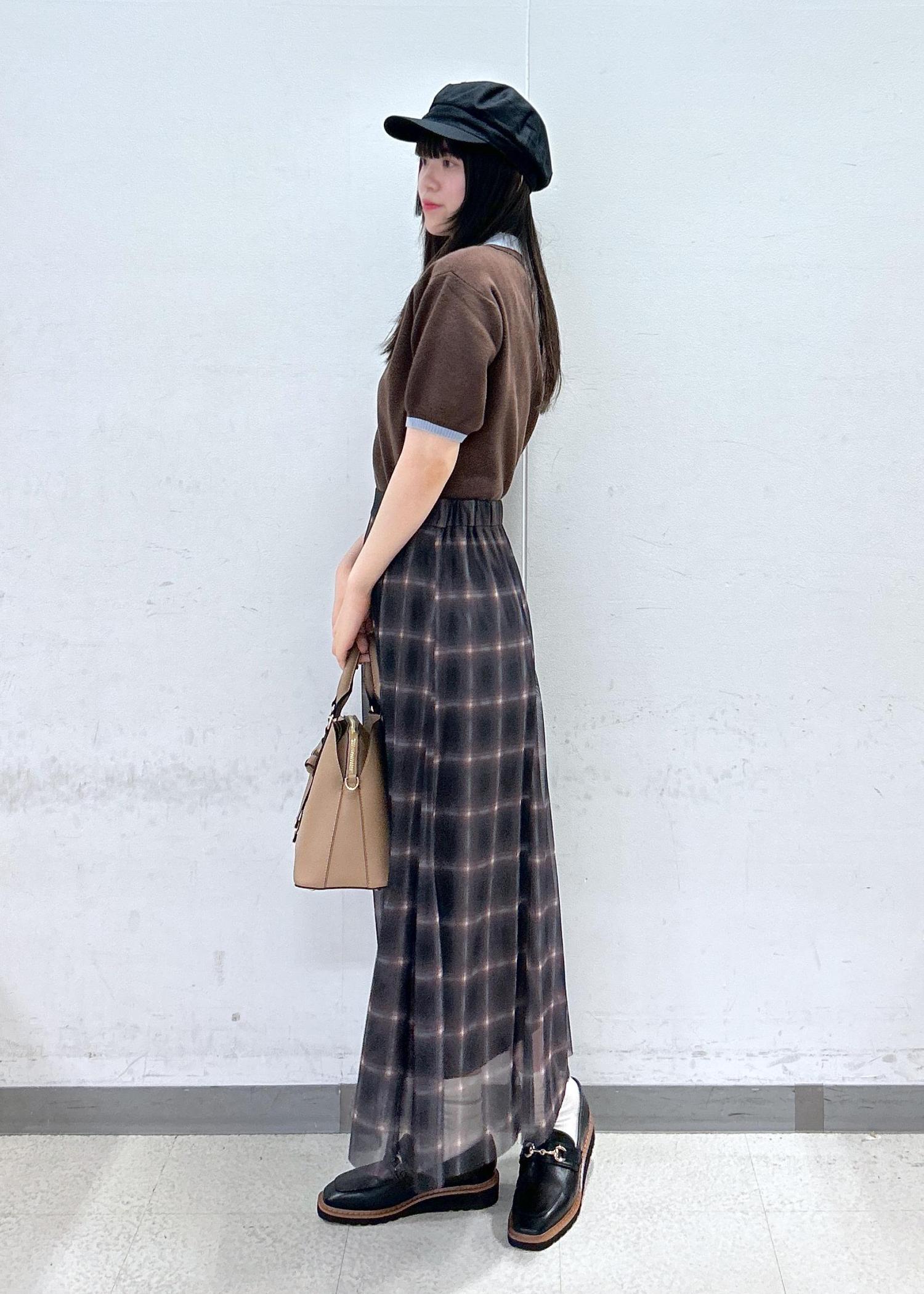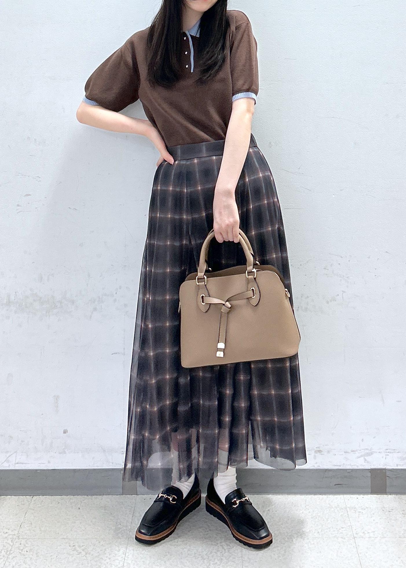 VIS【洗える】チュールプリントチェックスカートダークブラウン系 / F¥4,612レビューチュールがふわっと風に揺れるフェミニンなスカート。裾に向かって3角のマチが入っているので腰周りはスッキリ、蹴回しは広めの女性らしいシルエットです♡柔らかい素材&ウエストがゴムなので窮屈感無く楽に着用していただけます。