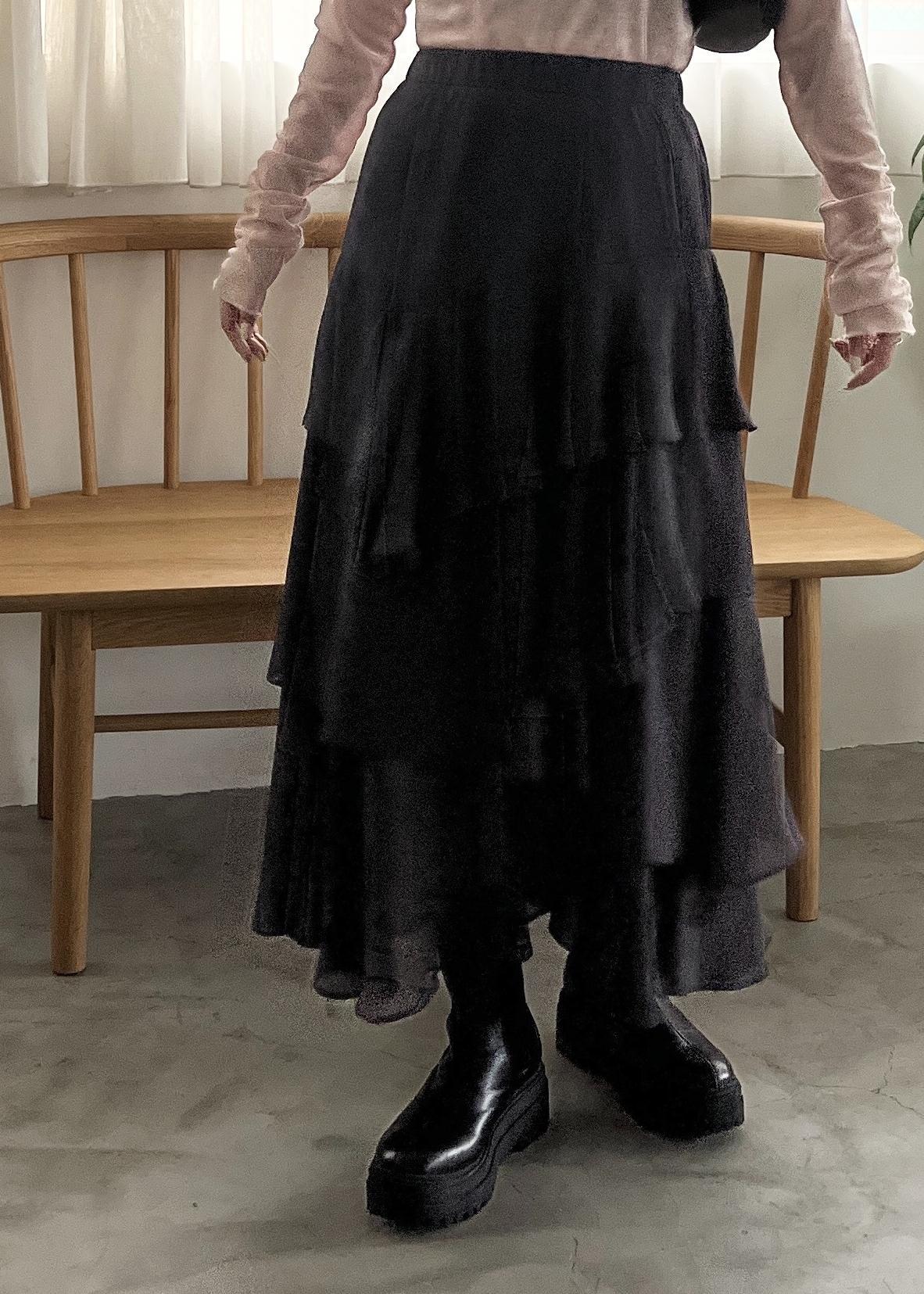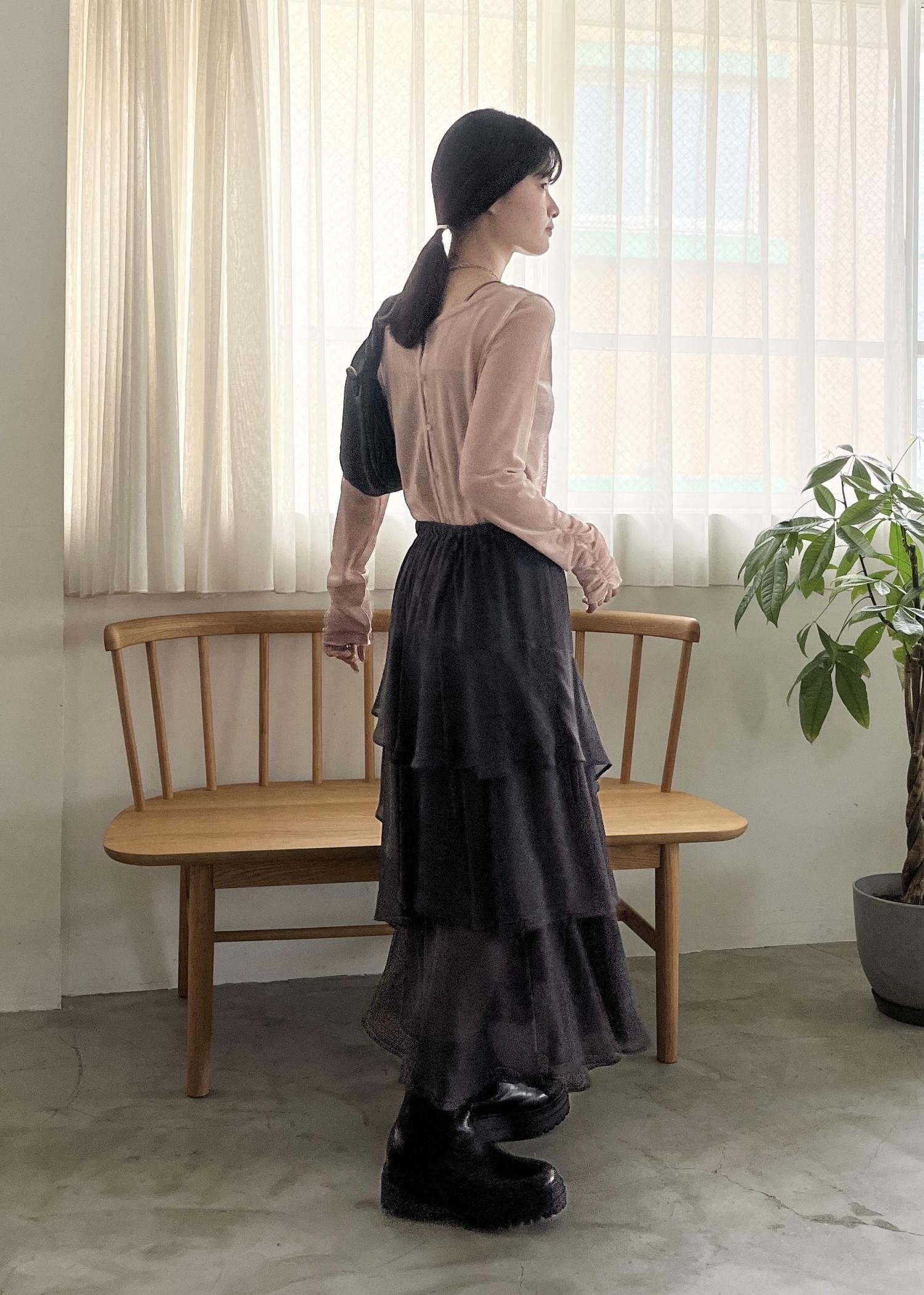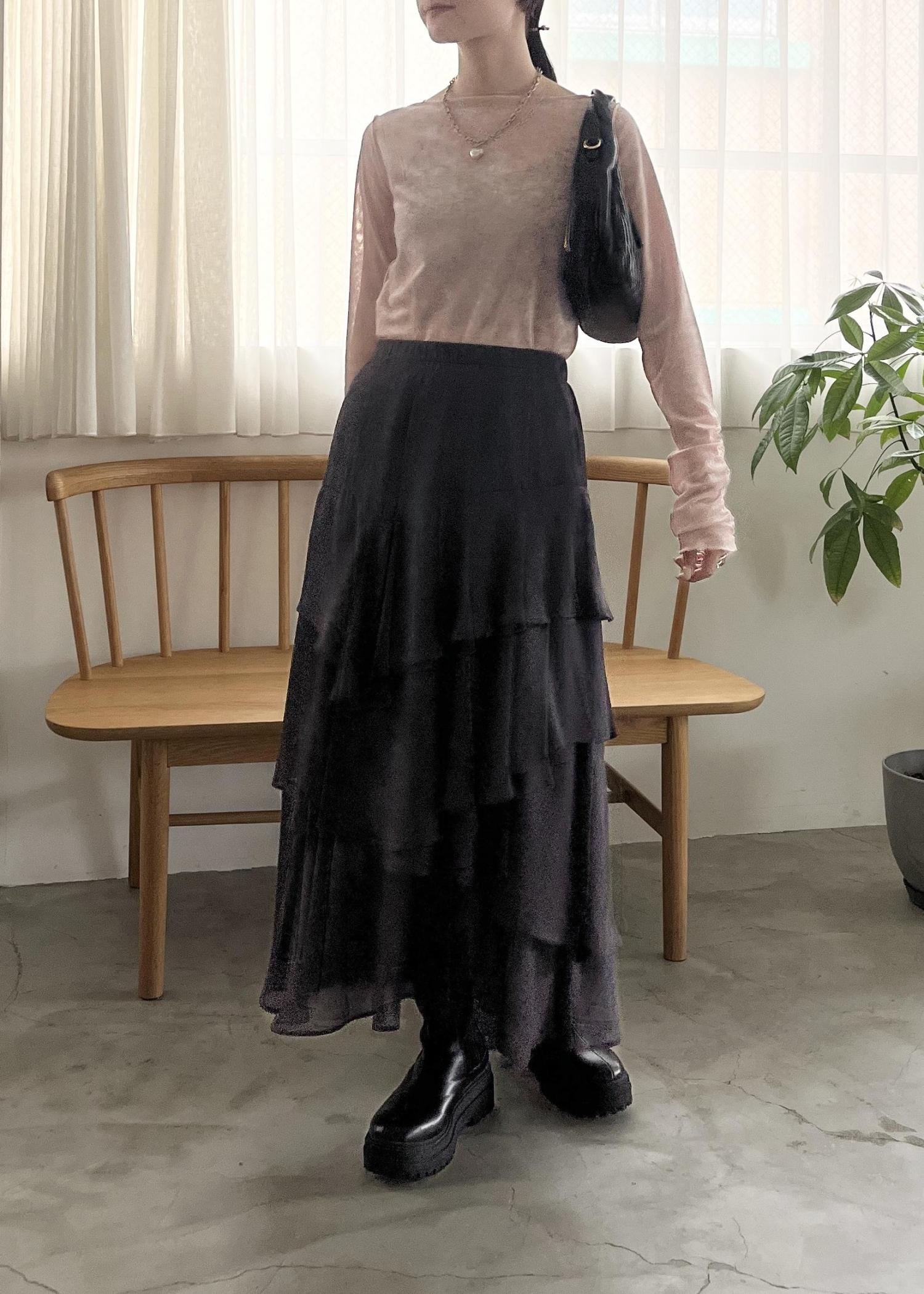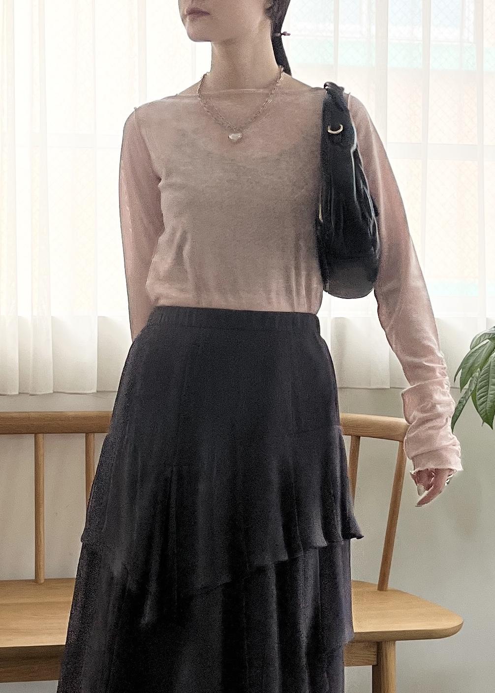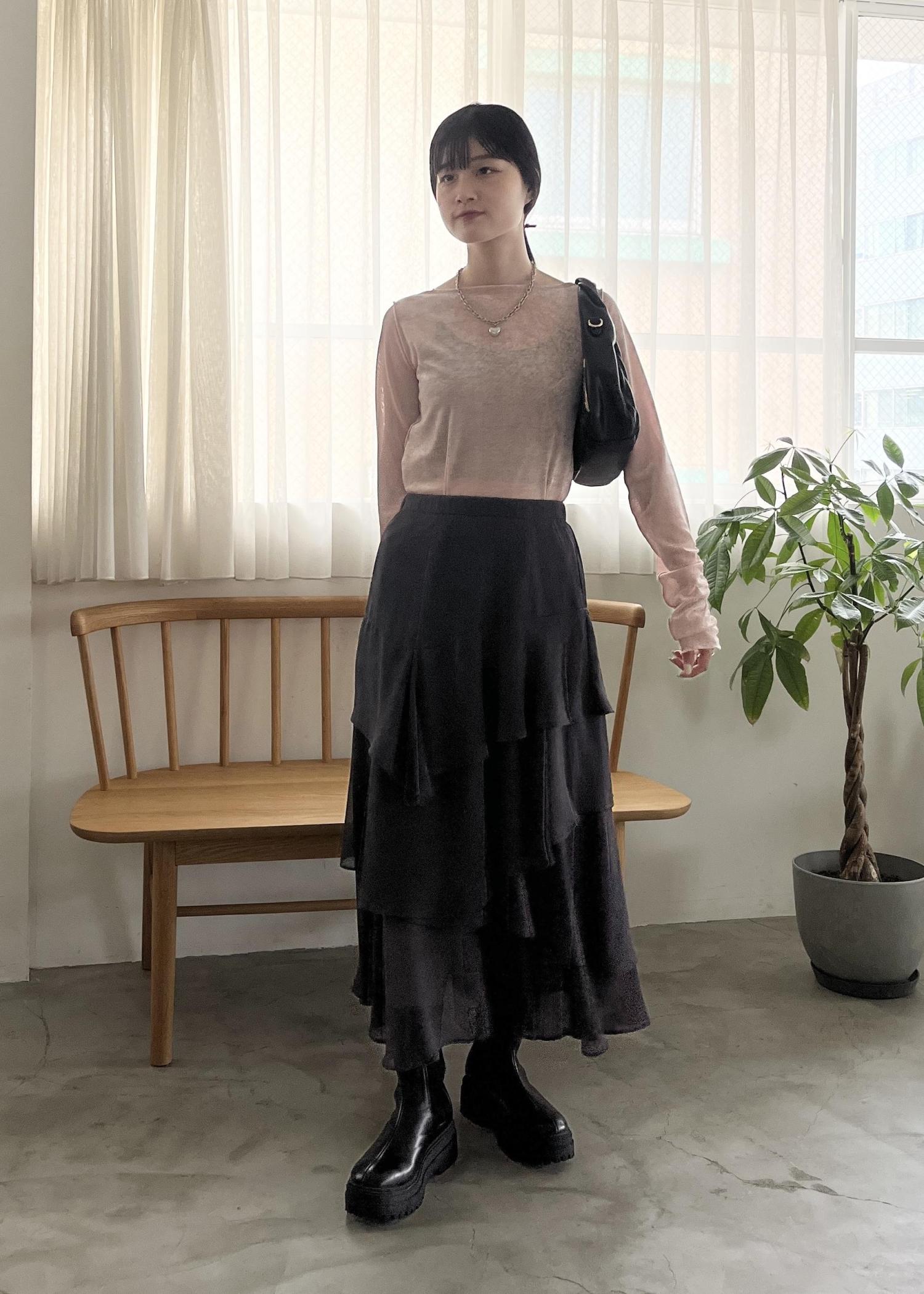 裾部分少し透け感があって、夏はサンダル合わせてヘルシーに、冬はブーツ合わせで着られます。 -