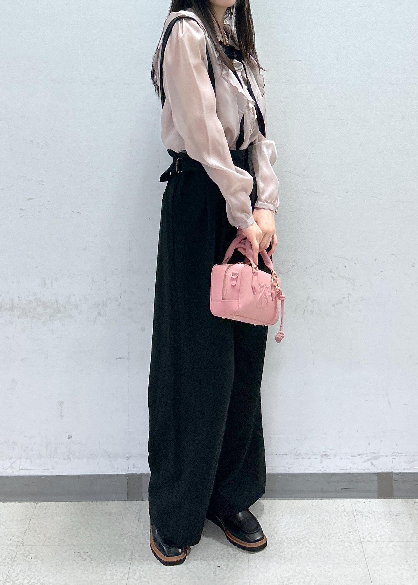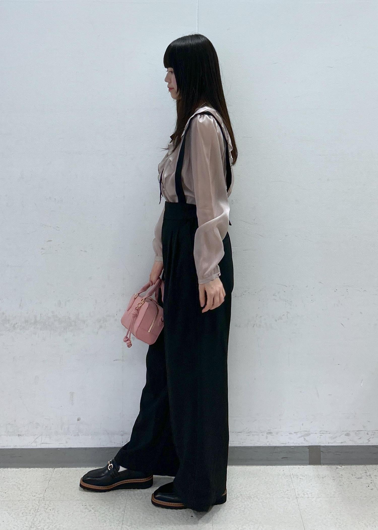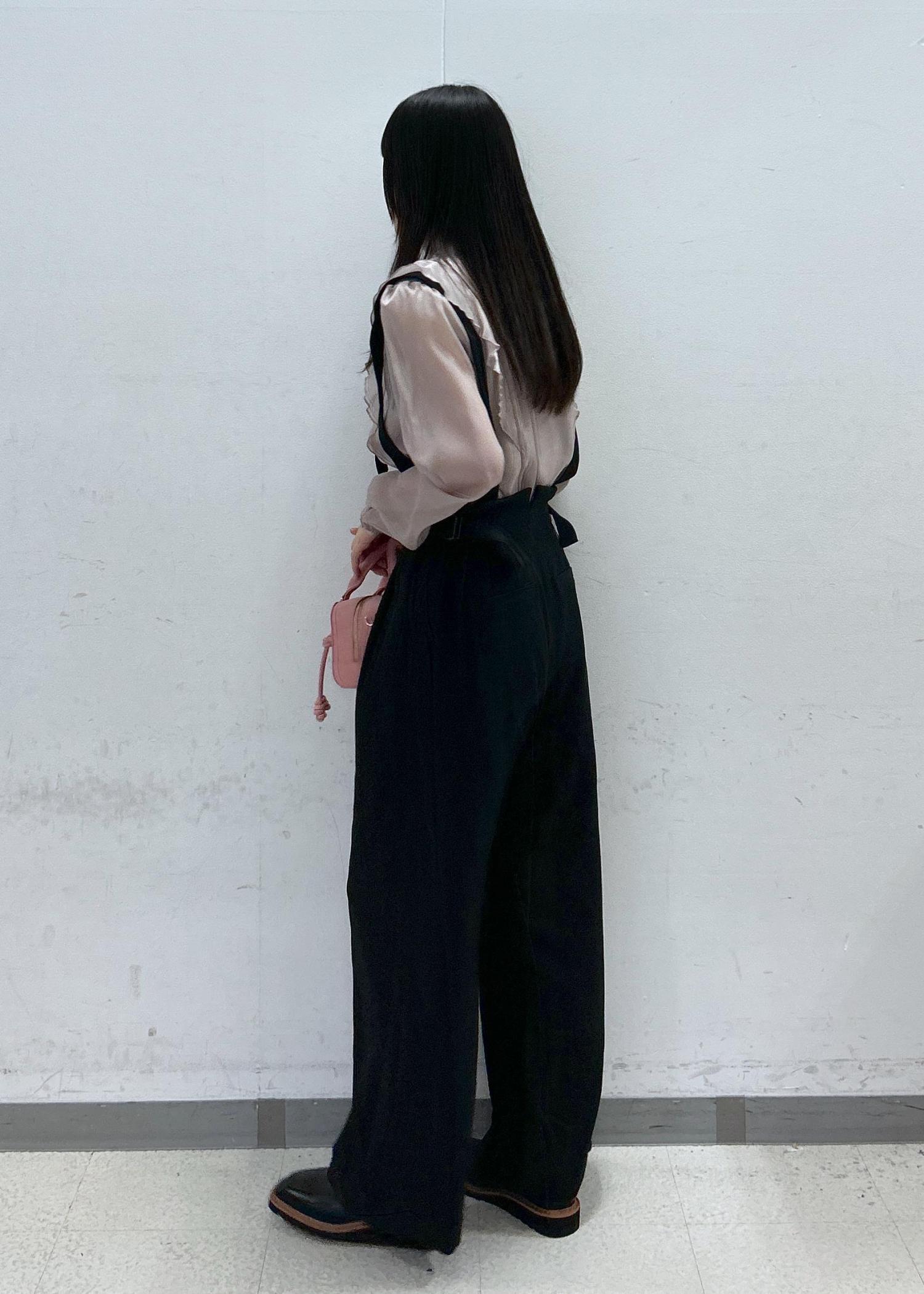VISサスペンダー付き2WAYワイドパンツブラック / M¥4,612レビュー取り外し可能のサスペンダー付きで、長さはボタンで2段階に調節できます。サスペンダーを1番短くした状態でパンツの丈は、身長166センチでくるぶしがしっかり隠れるくらいの丈でした。少し厚みがあり、重厚感のある生地感なので秋冬にピッタリです。