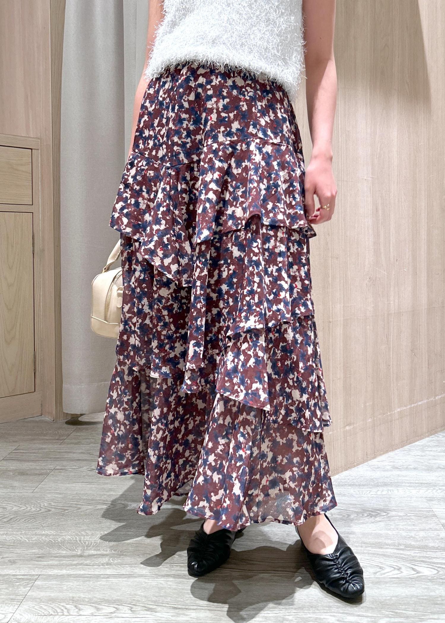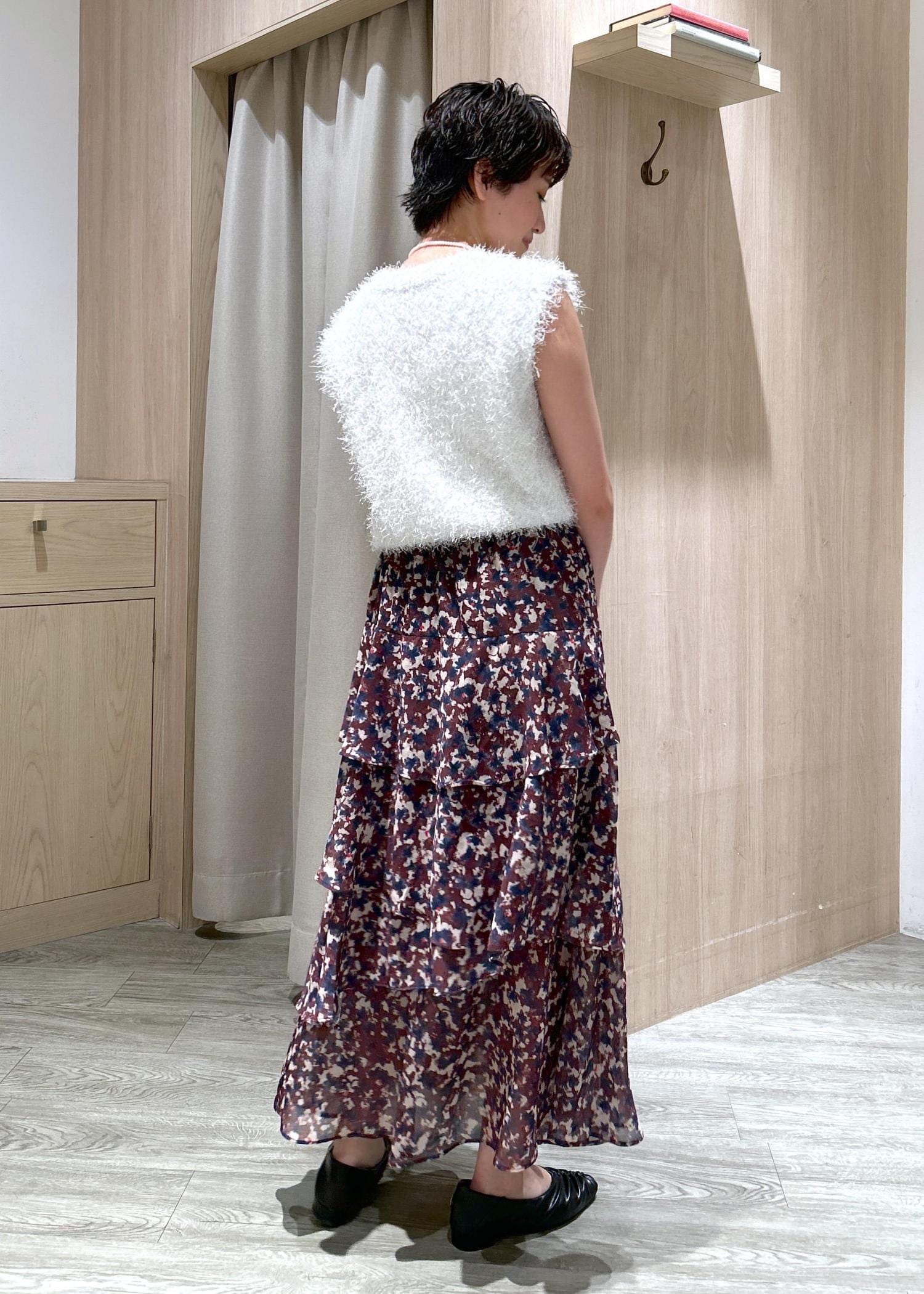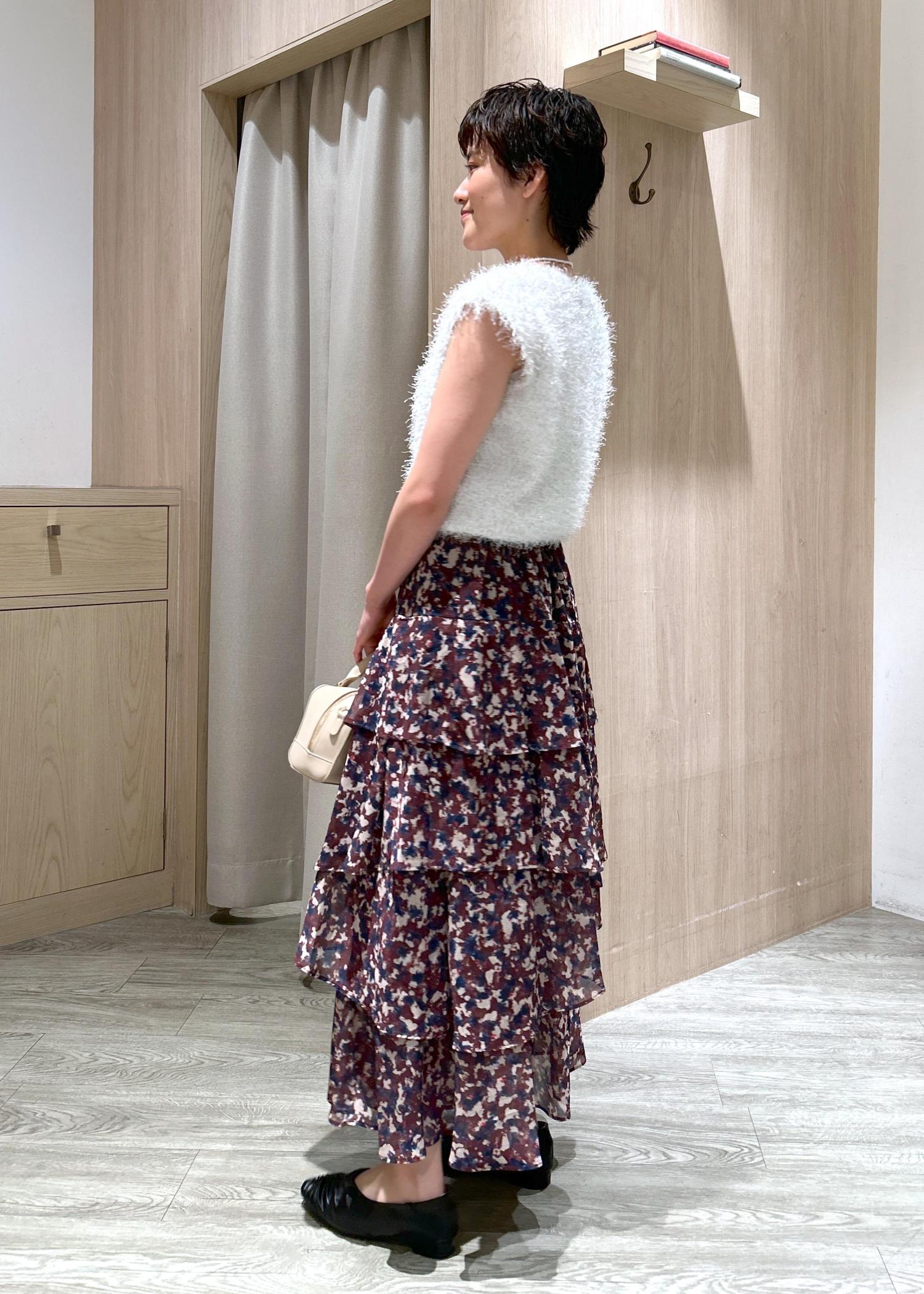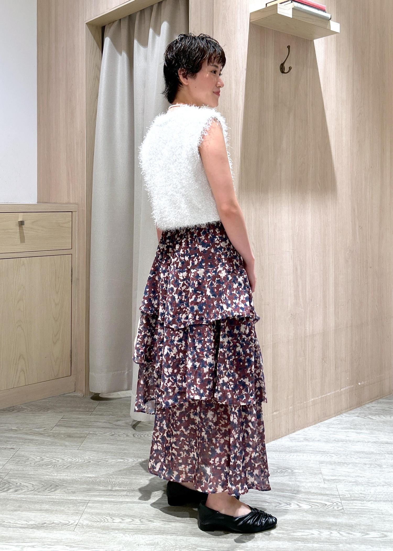 VIS花柄アソート楊柳ティアードスカートブラウン系 / F¥4,613レビュー身長155cm、踵側見える丈感です。