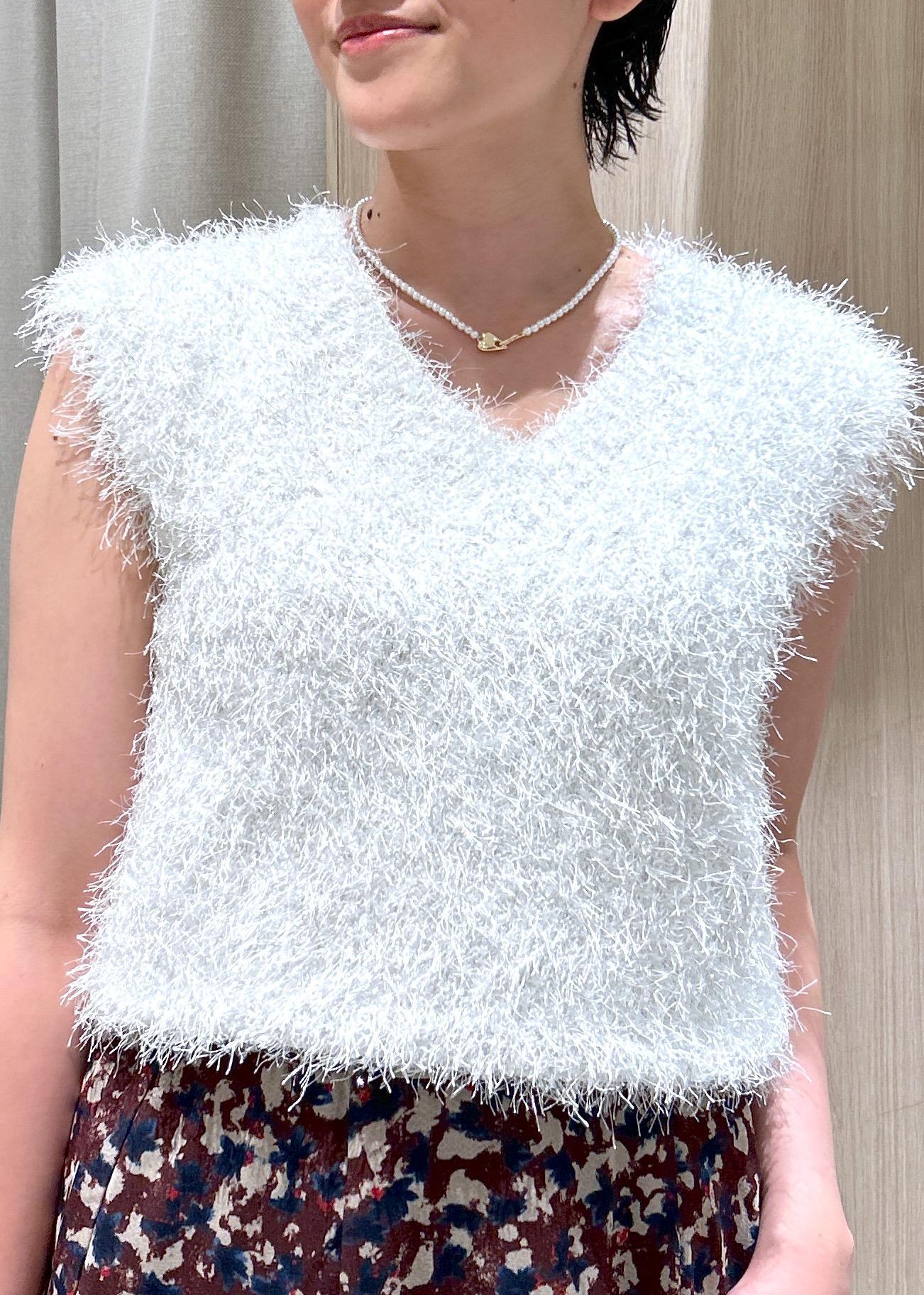 VIS【WEB限定サイズ:MT/着丈が選べる】【洗える】フェザーヤーンニットベストホワイト系 / M¥3,293レビューチクチク感なく着られました。