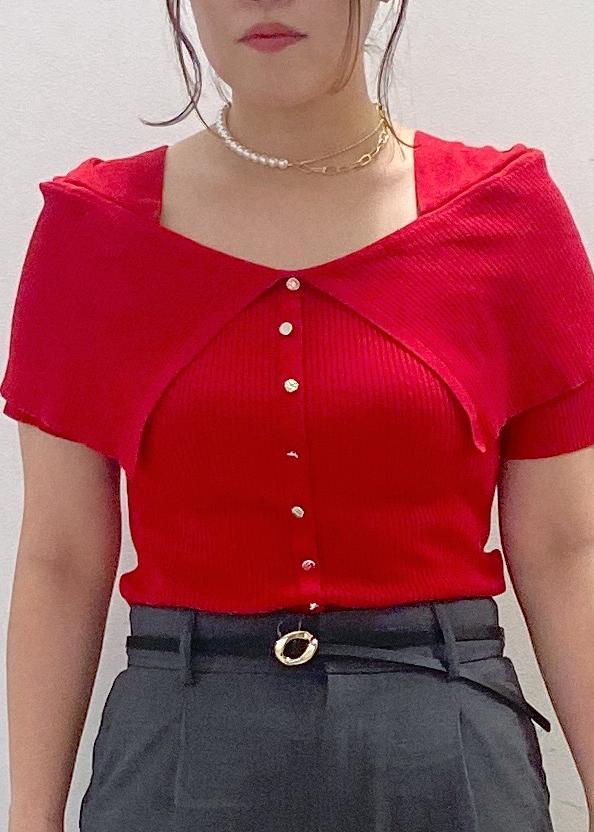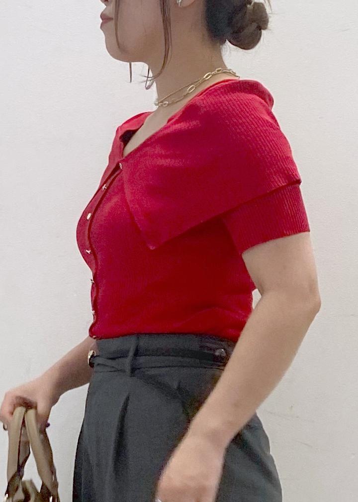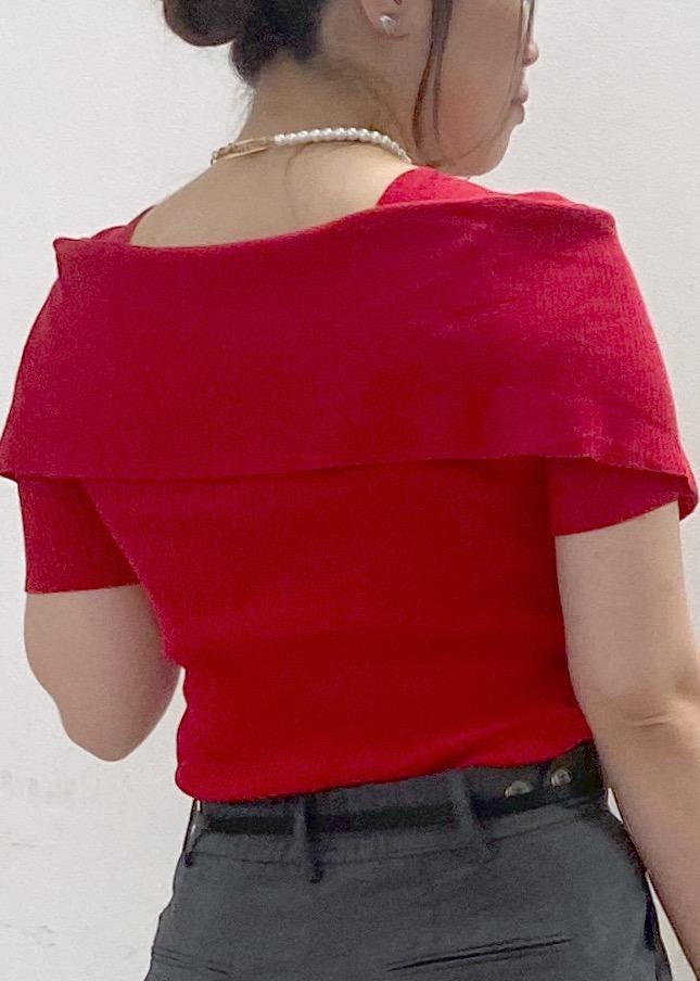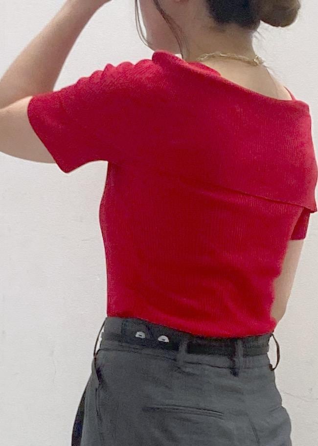 VISビックカラーオフショルハーフスリーブニットレッド / F¥2,963レビューとても伸縮性のあるニット生地です。