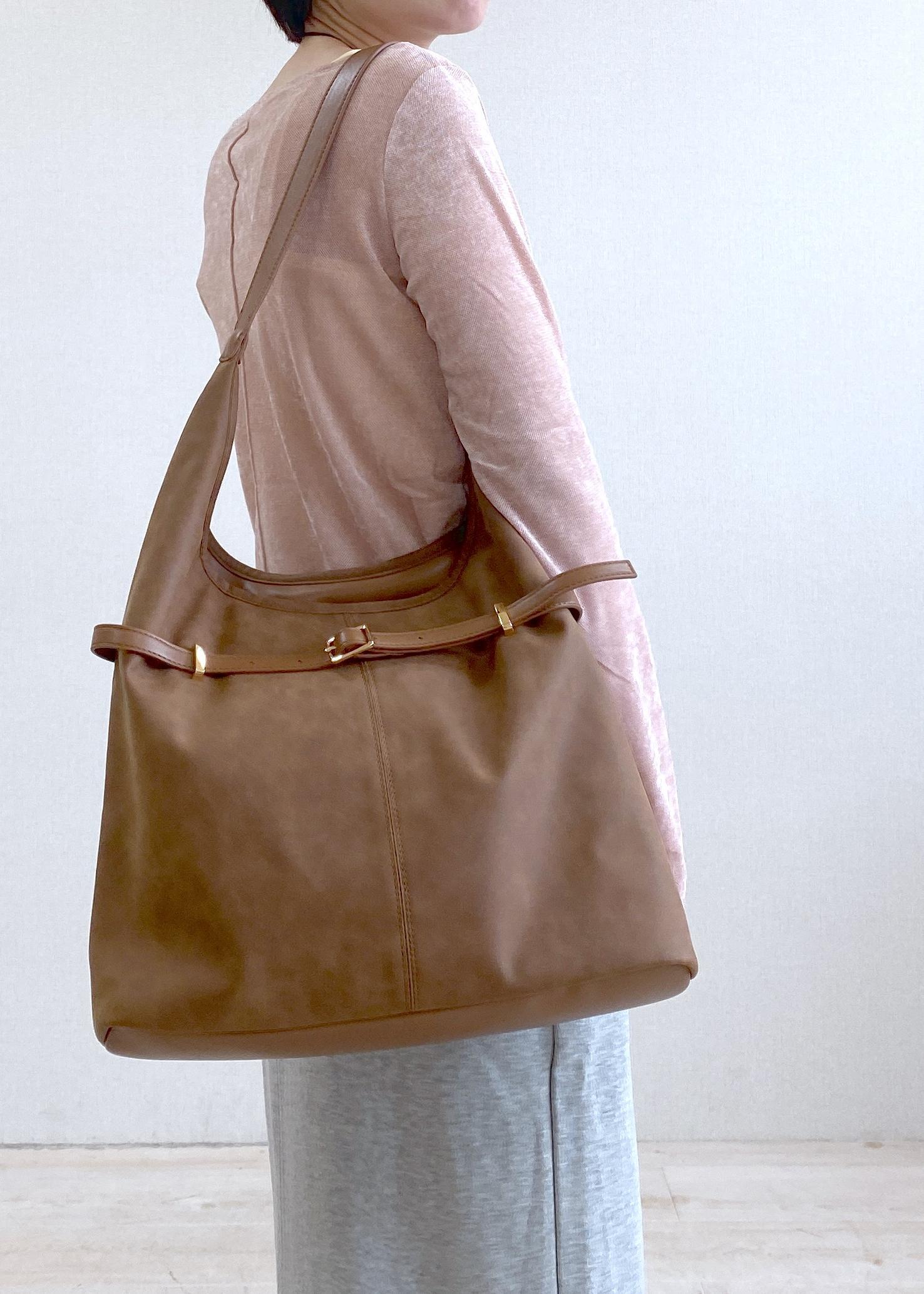VIS【A4収納】フロントベルトソフトショルダーバッグダークブラウン / F¥5,535レビュースエード素材が秋っぽく可愛いです。