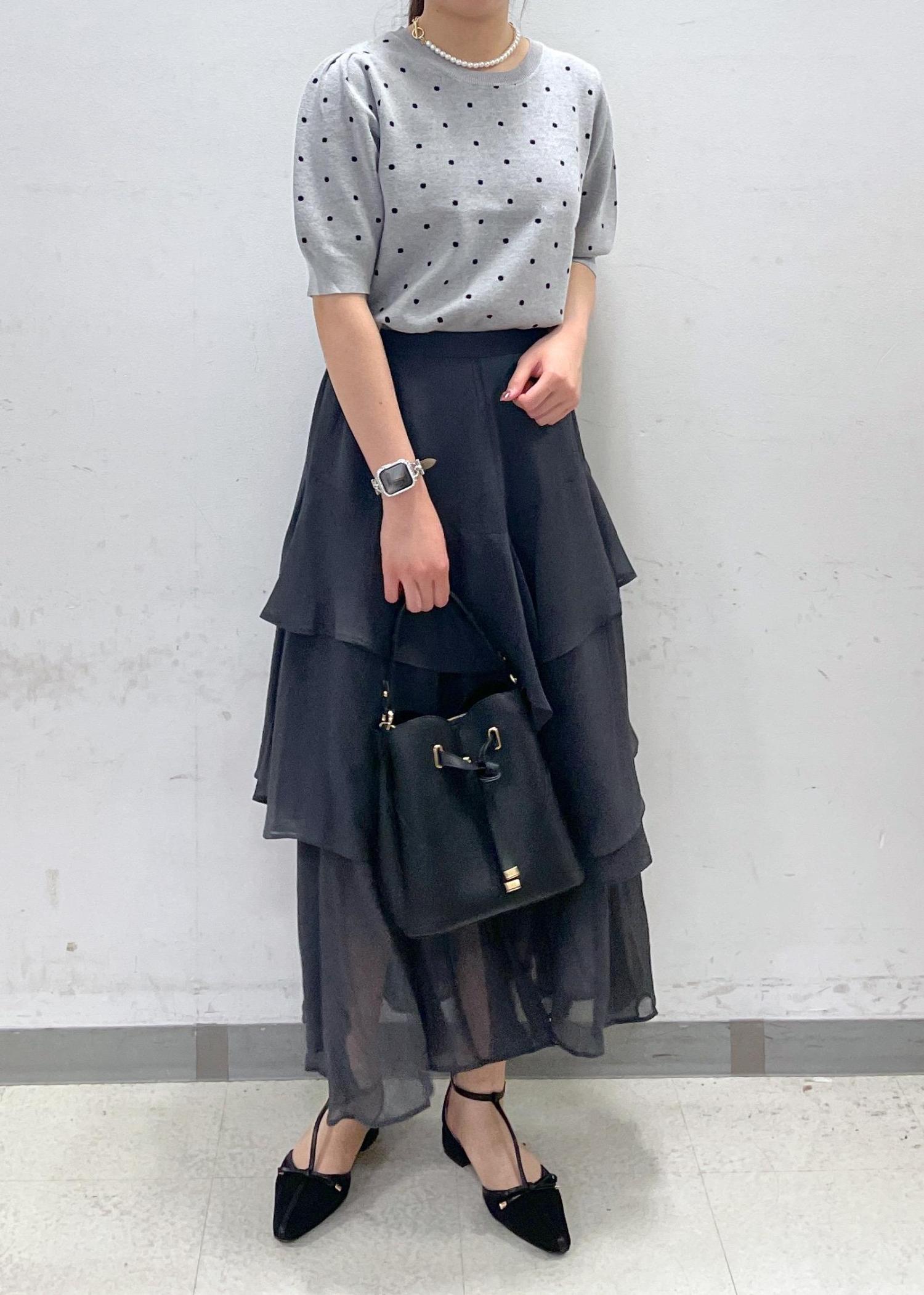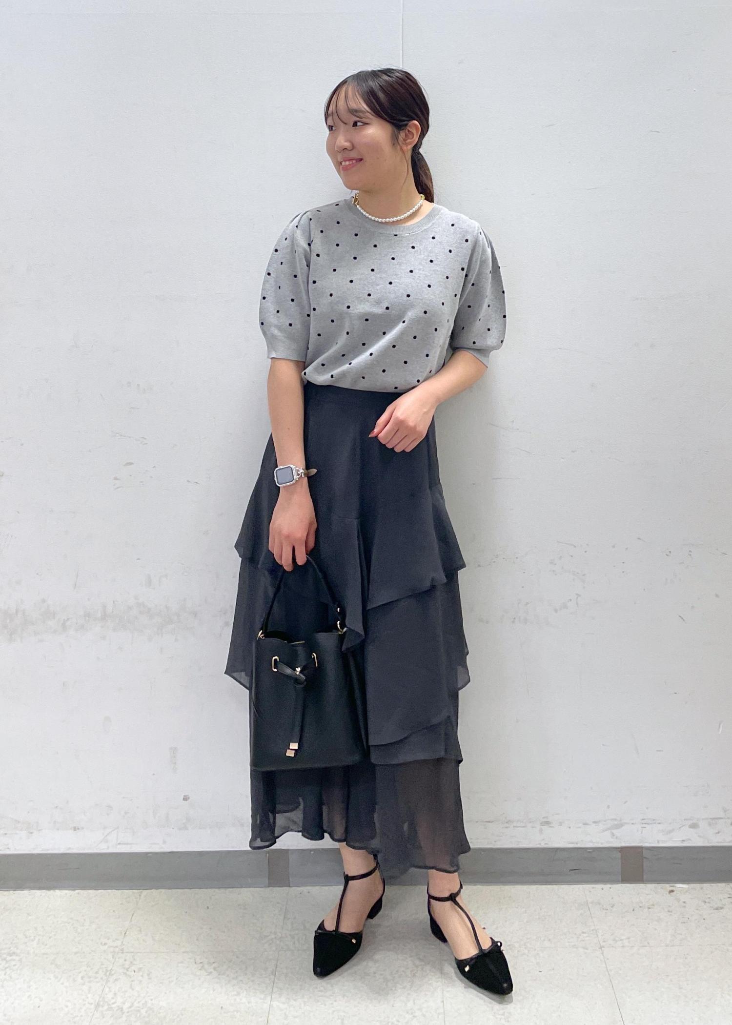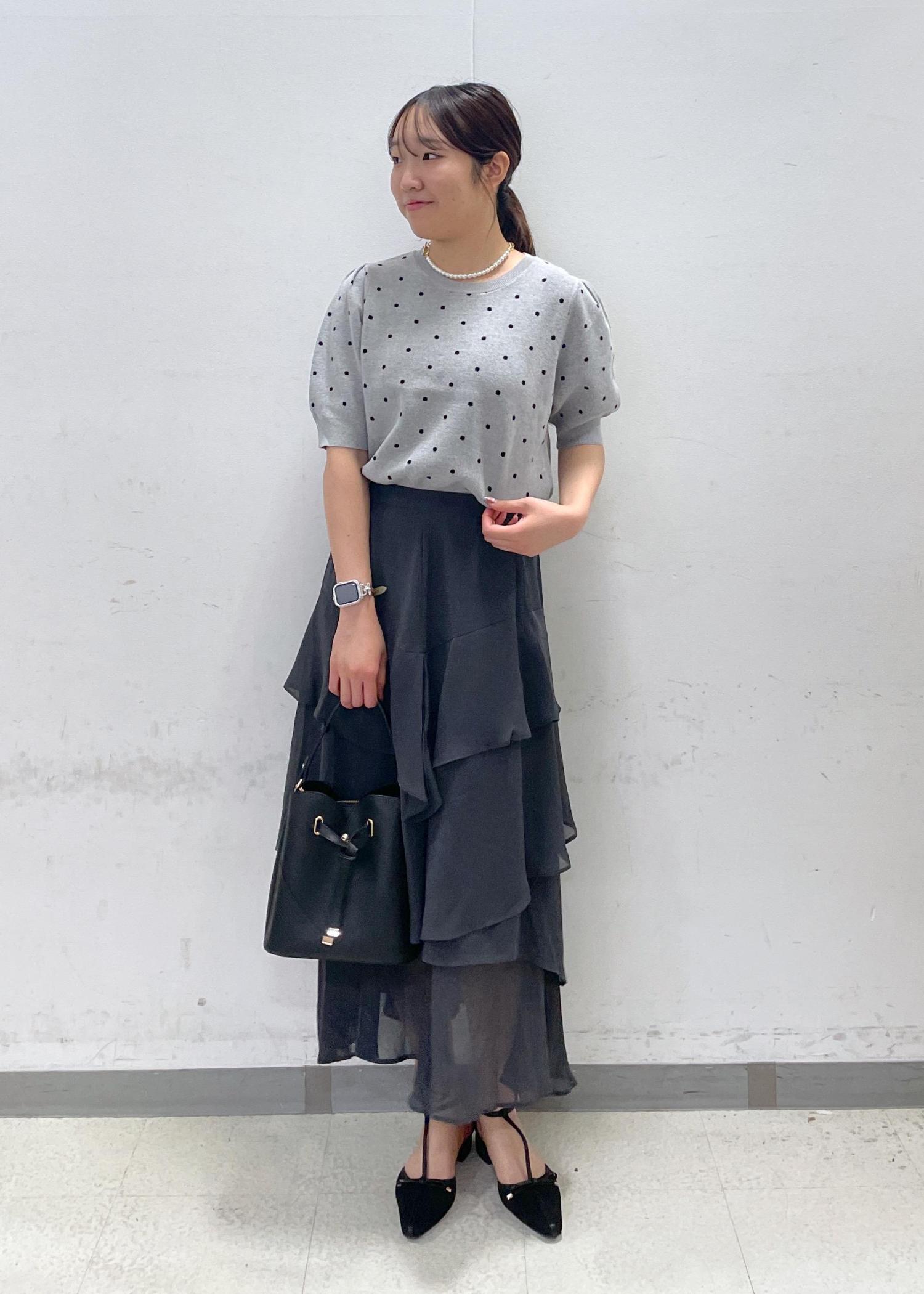 VISドットジャガードニットグレー系 / F¥3,842レビュー袖のパフとトレンドのドットデザインが可愛いトップスです♡