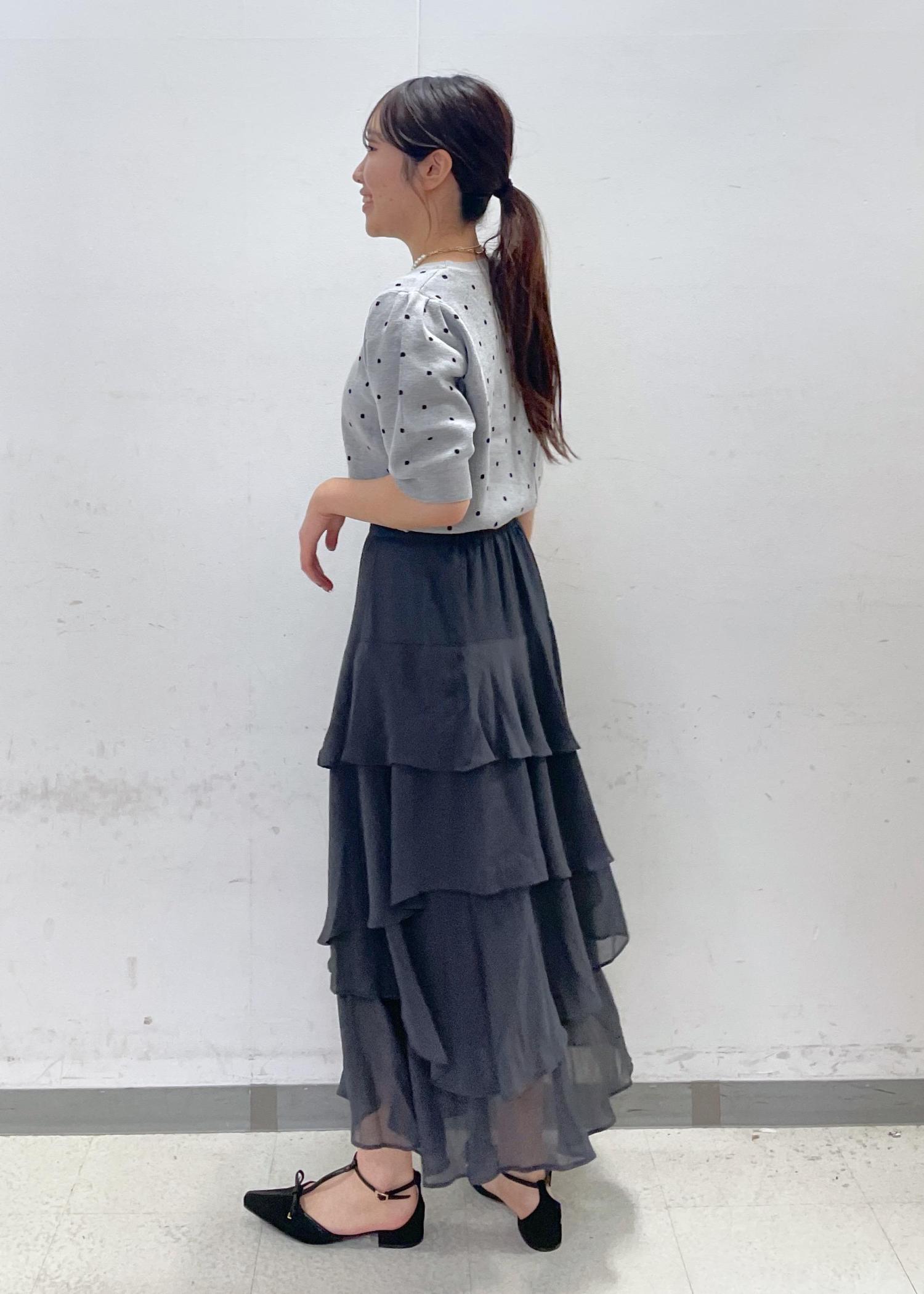 スカートと合わせるとガーリーになってデニムやパンツと合わさると少し甘さを抑えた雰囲気できることが出来ます!