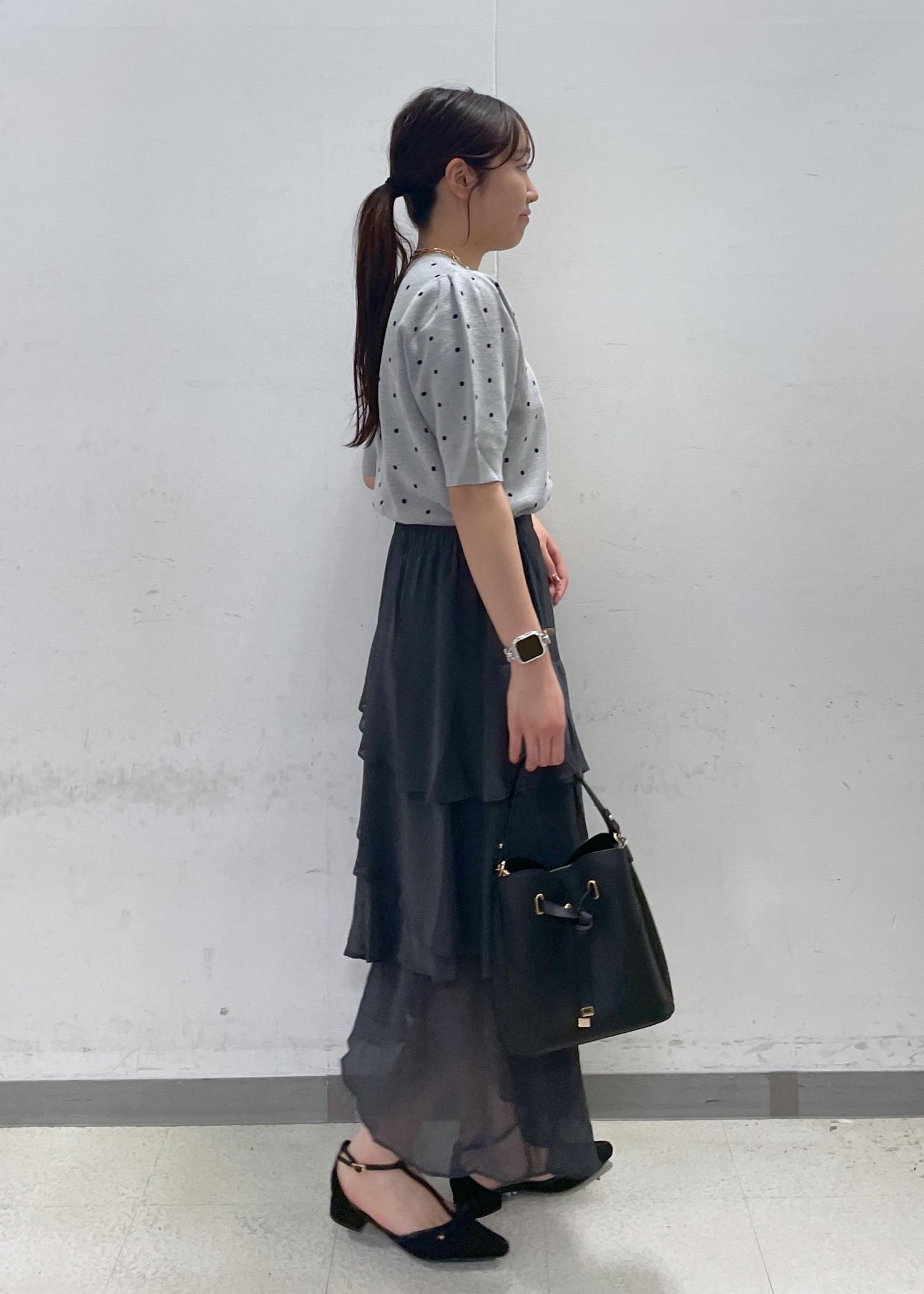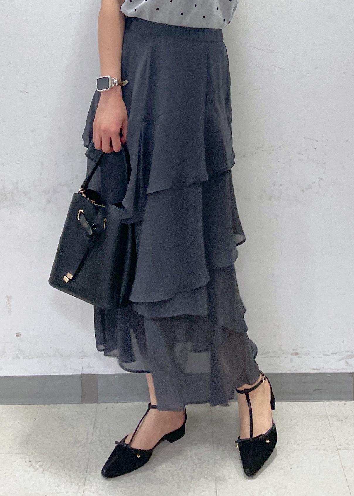 VIS花柄アソート楊柳ティアードスカートチャコール / F¥4,613レビュー大きなフリルが可愛いロングスカート♡