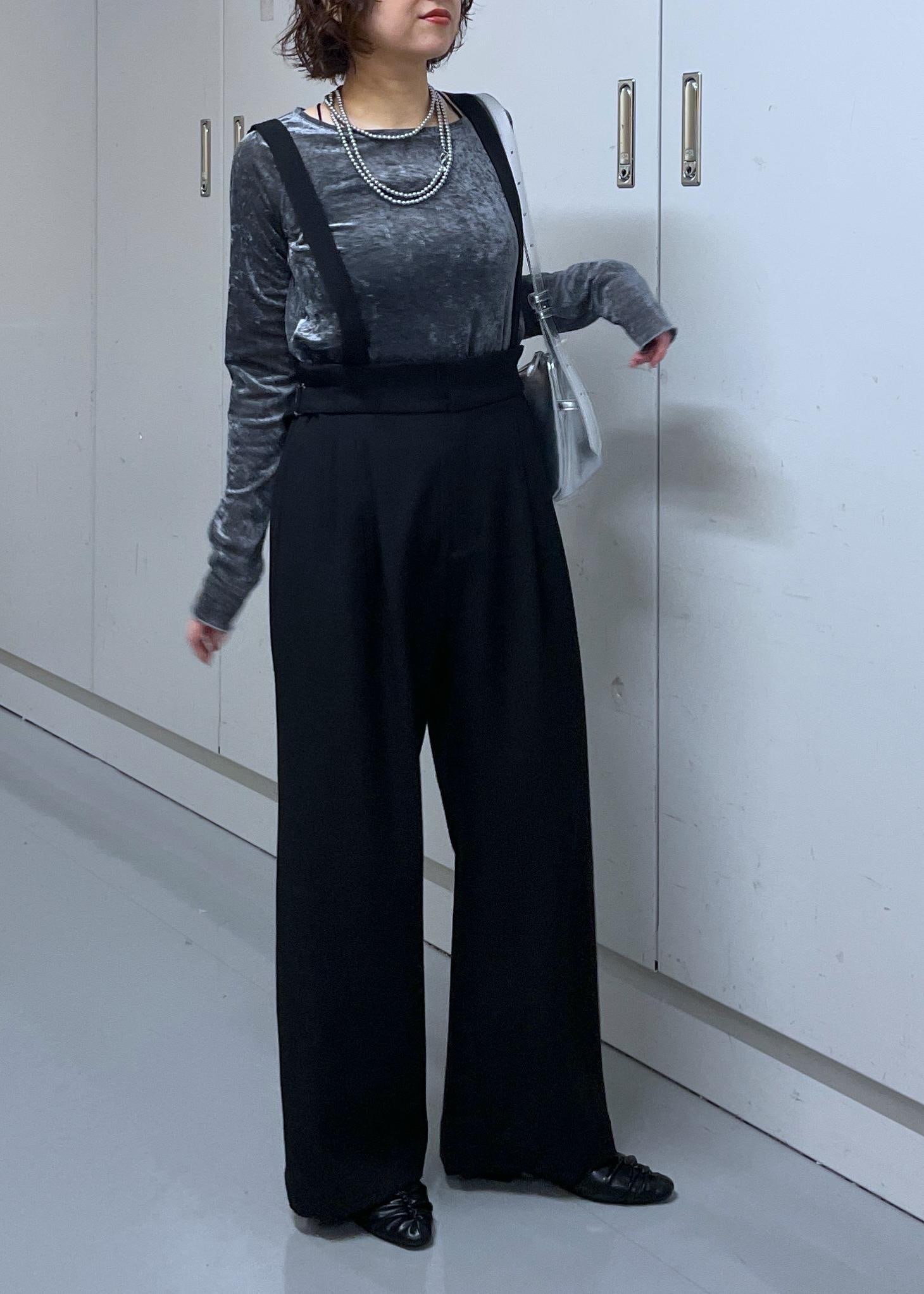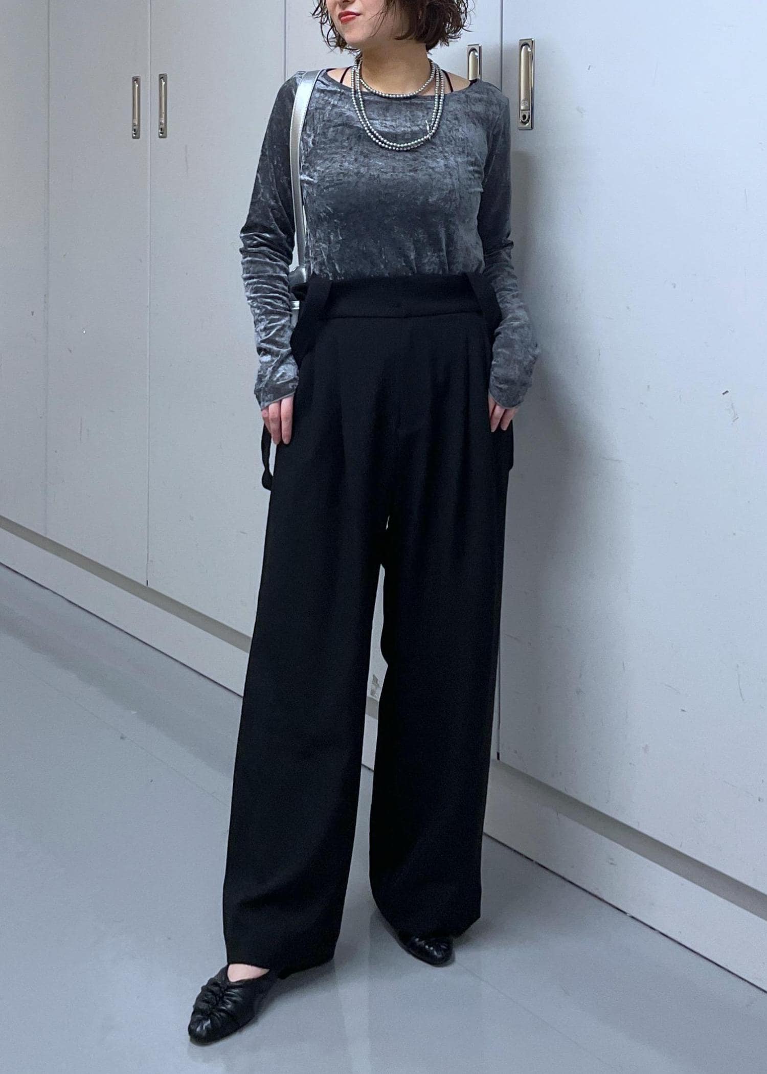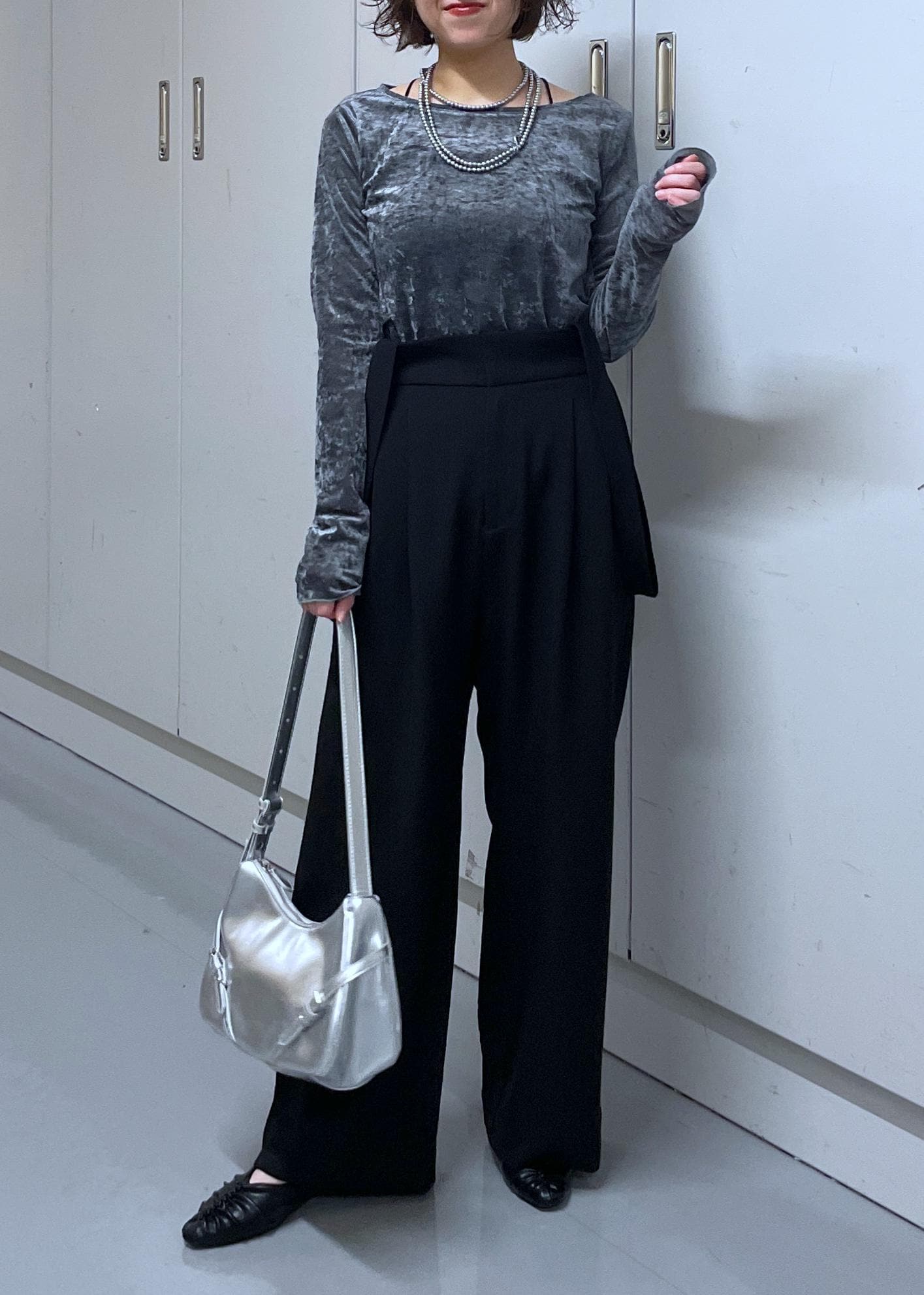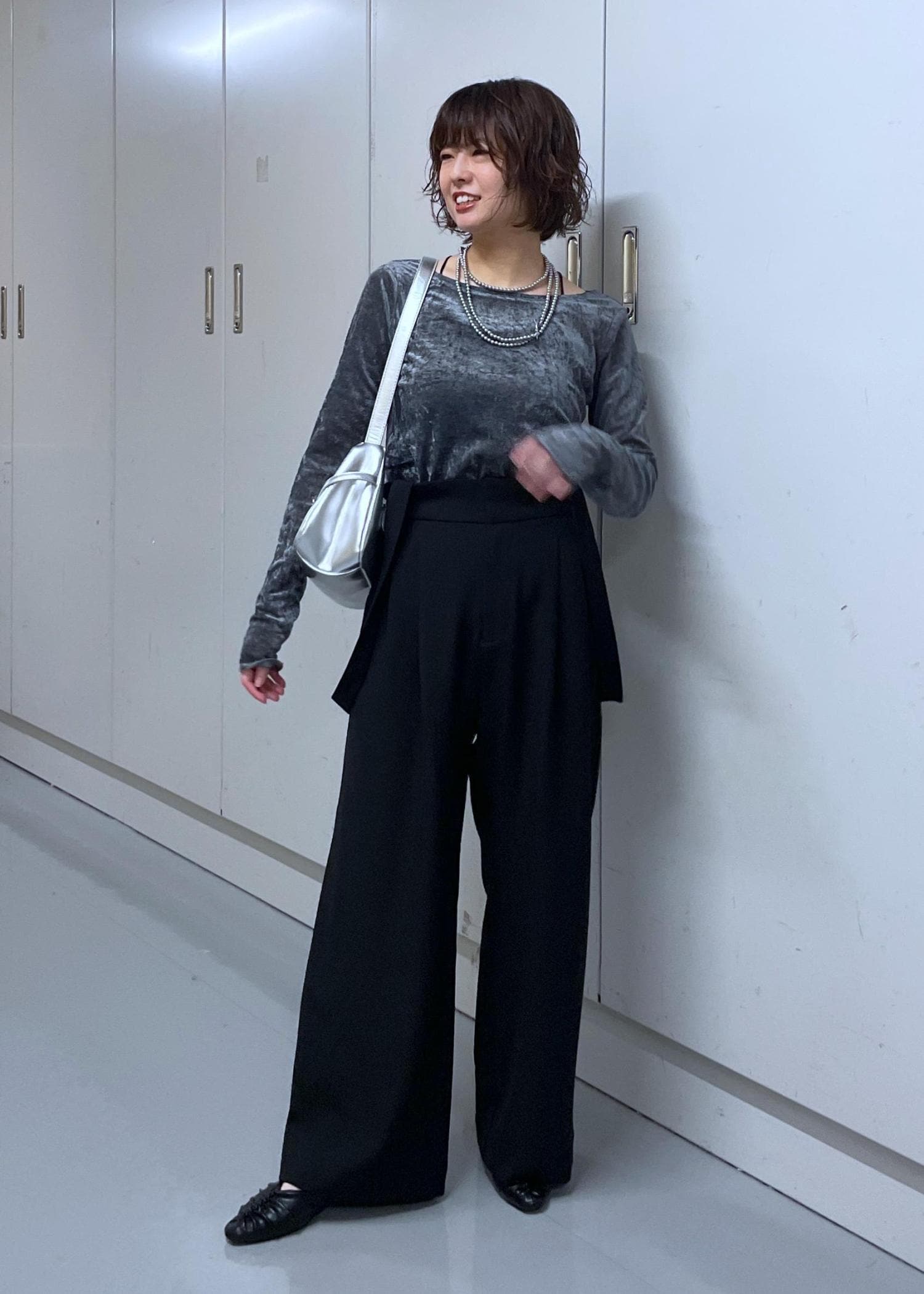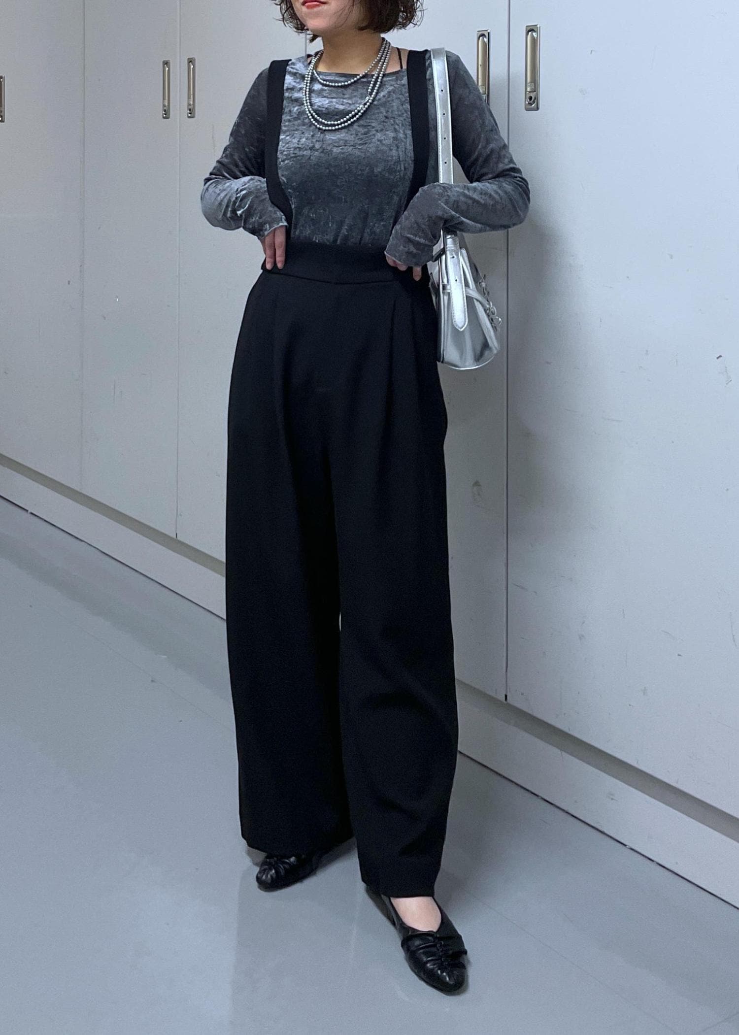 しっかり目の生地感できちんと感がありつつ、ワイドシルエットでカジュアルコーデにも合わせやすいです。