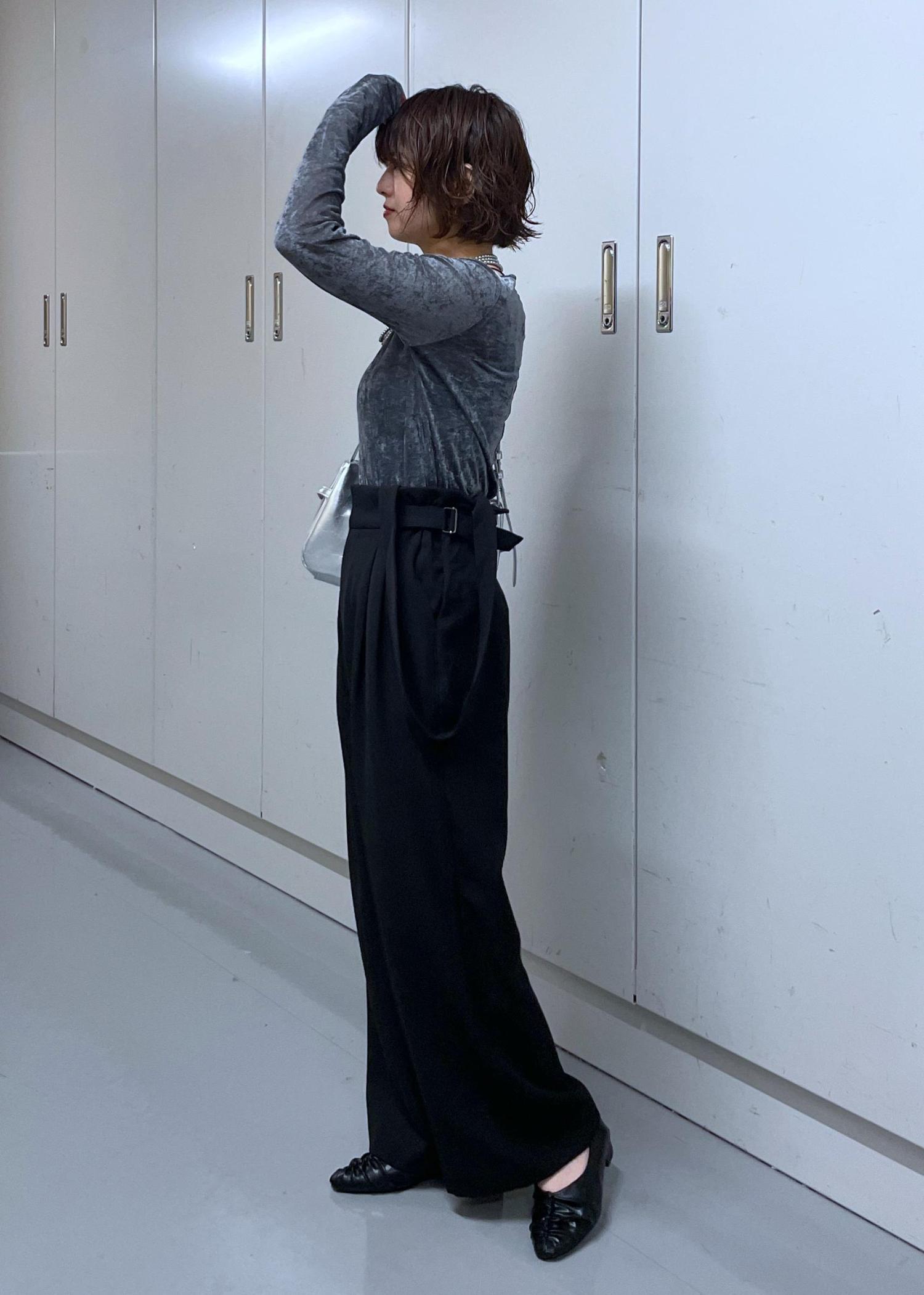 ウエストはサイドのベルトで調節可能ですが、ハイウエストで履いて締めてもゆとりありました。