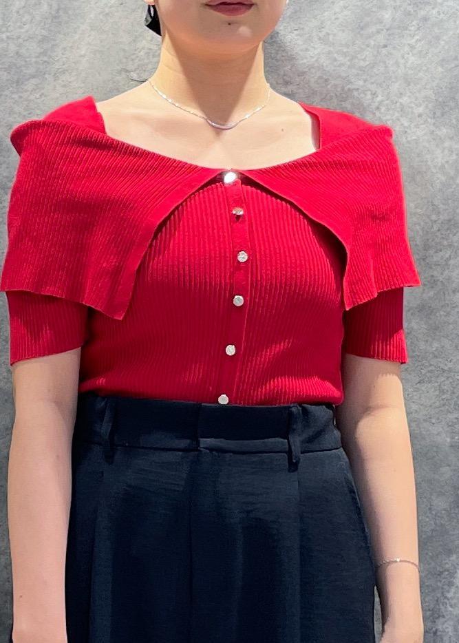 VISビックカラーオフショルハーフスリーブニットレッド / F¥2,963レビュー一枚で華やかになるアイテム。