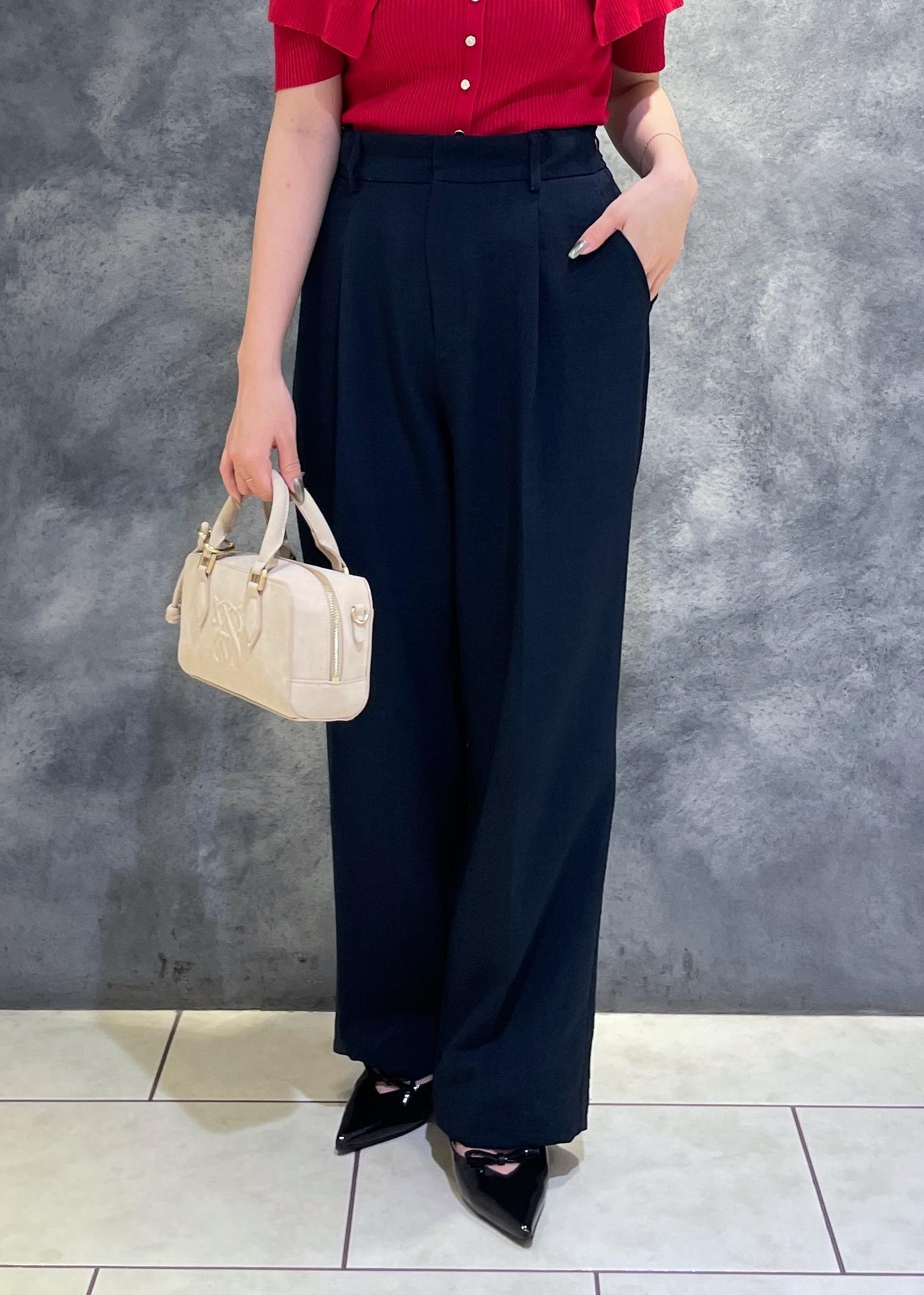 VIS【美easy】ワンタックワイドスラックスパンツ/洗えるネイビー / L¥5,489レビュー160cmでLサイズ着用。