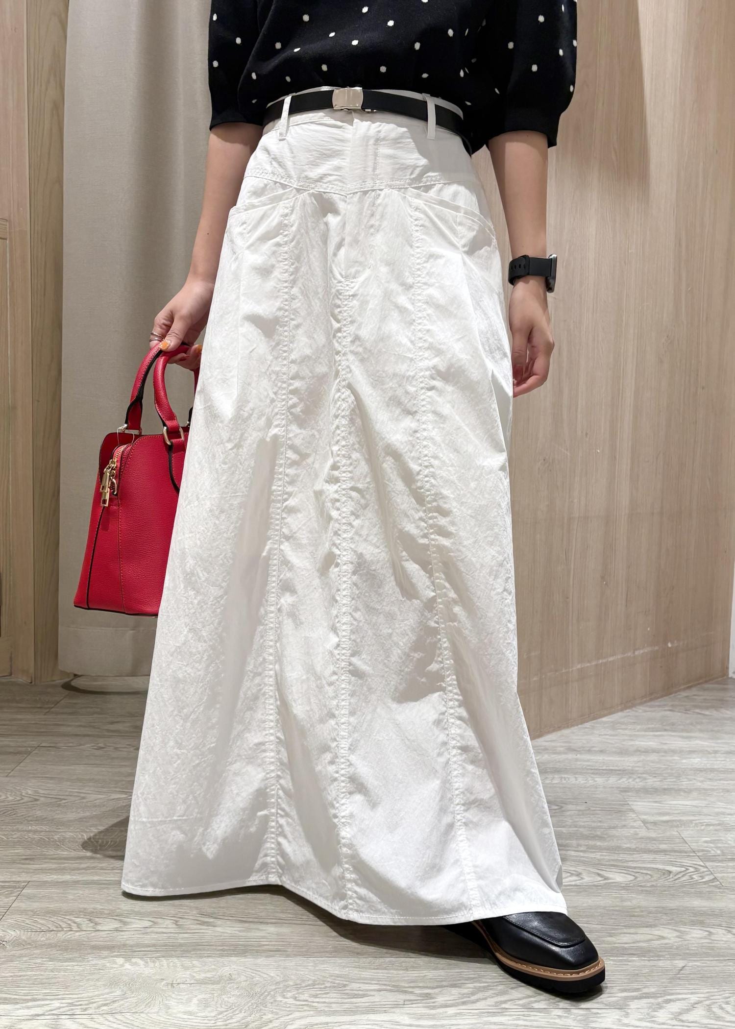ウエストは少し大きめですので、ベルトがあると安心です。身長152センチで足首が隠れる長さでした。 -