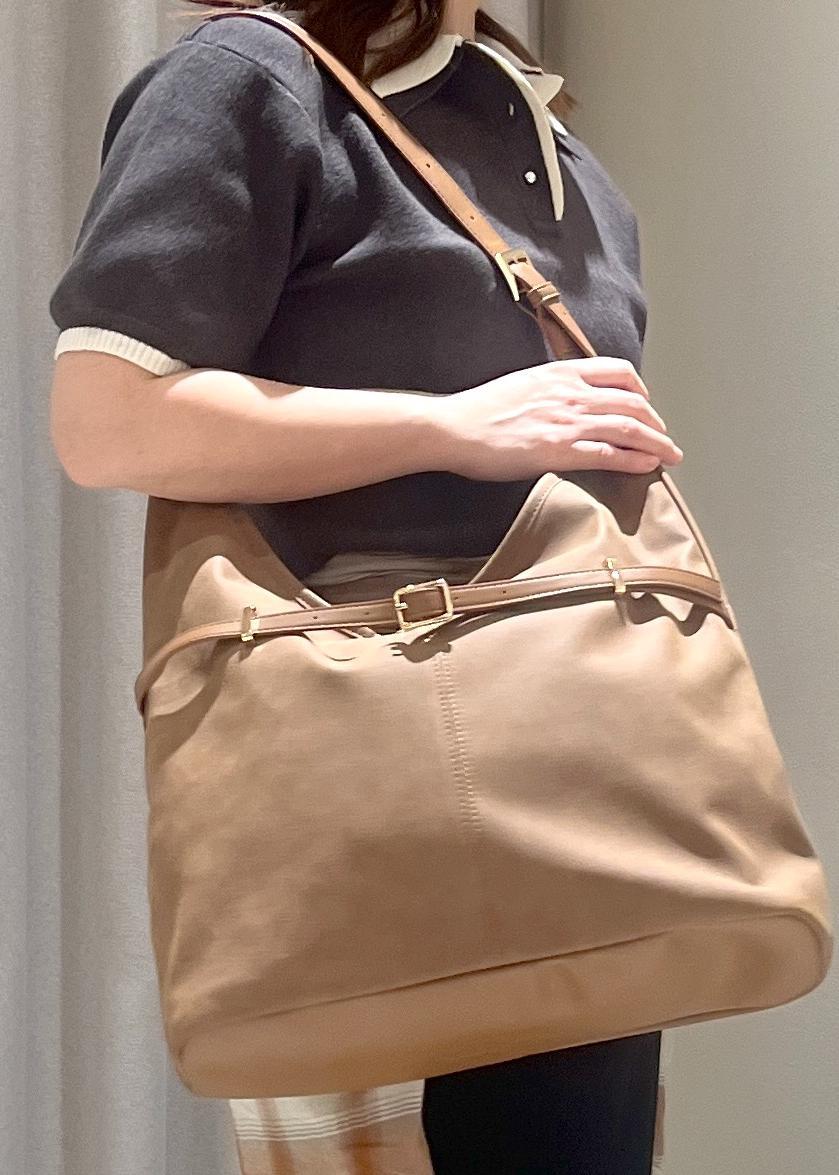 VIS【A4収納】フロントベルトソフトショルダーバッグベージュ系 / F¥5,535レビュー大きめですが見た目よりも軽く、収納力も抜群です!