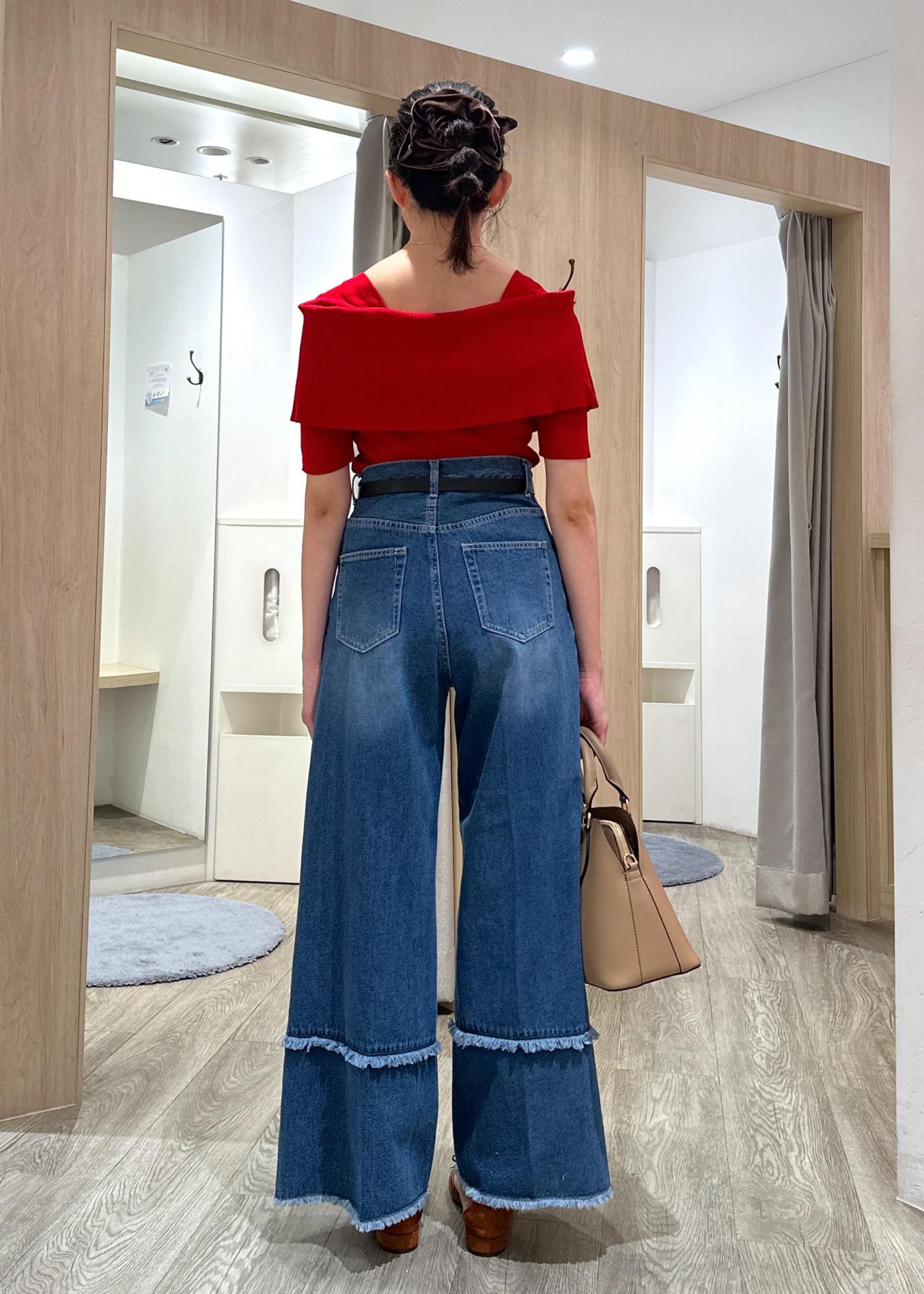 フリンジデザインがお洒落見えするだけでなく、裾にかけて広がるフレアシルエットなので足長効果も抜群です!♡ -