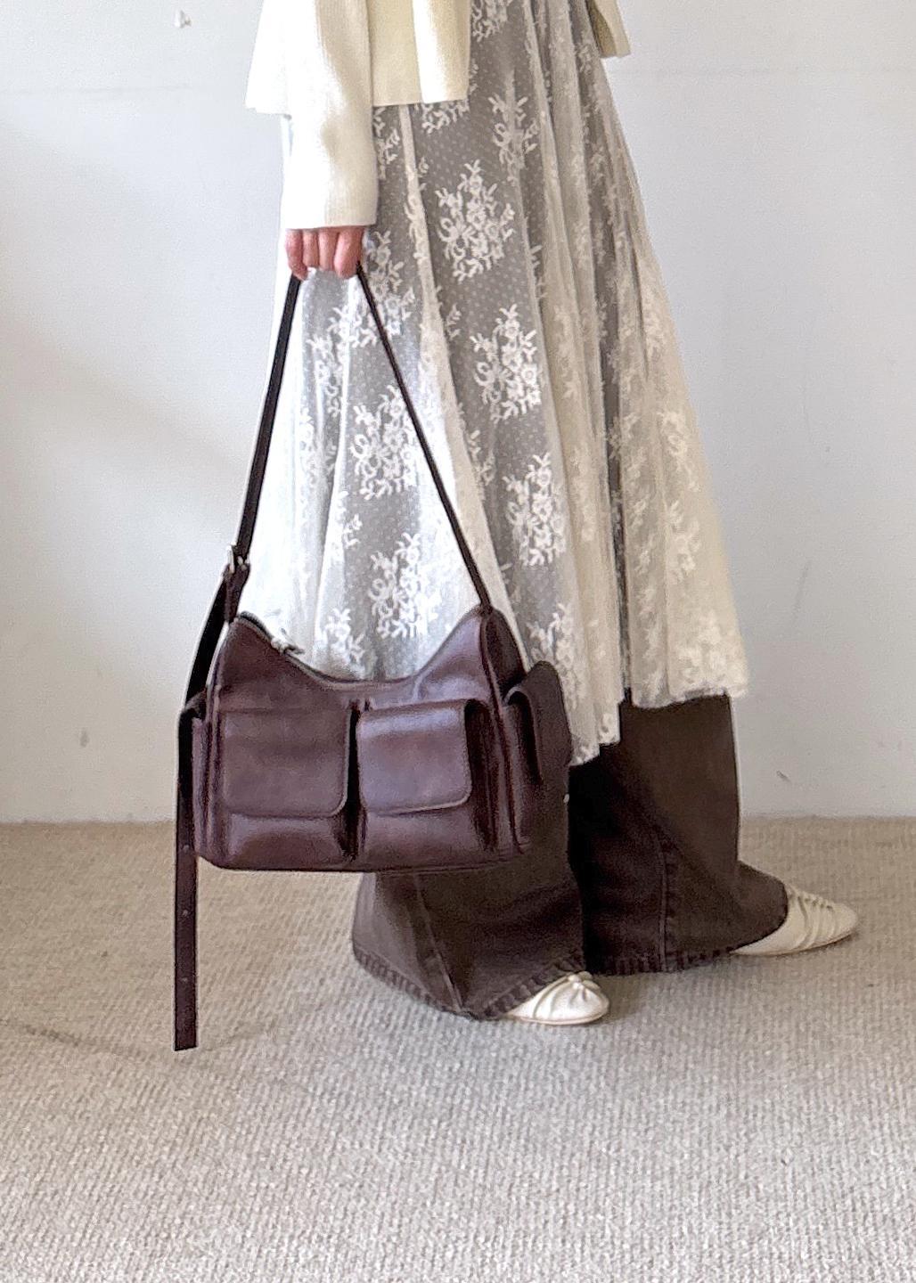 VIS【2WAY】ビンテージ合皮クアトロポケットショルダーバッグブラック / F¥6,919レビュー大きめポケットが目を惹くデザインバック♪ビンテージ感ある表情の大人可愛いクワトロポケットが程よいラフさを出してくれます◎柔らかくて軽く、とても持ちやすい。2WAYなのも嬉しいポイント。長財布や横向きで500mlのペットボトルなど入るサイズ感、チャックでしまるので安心です。