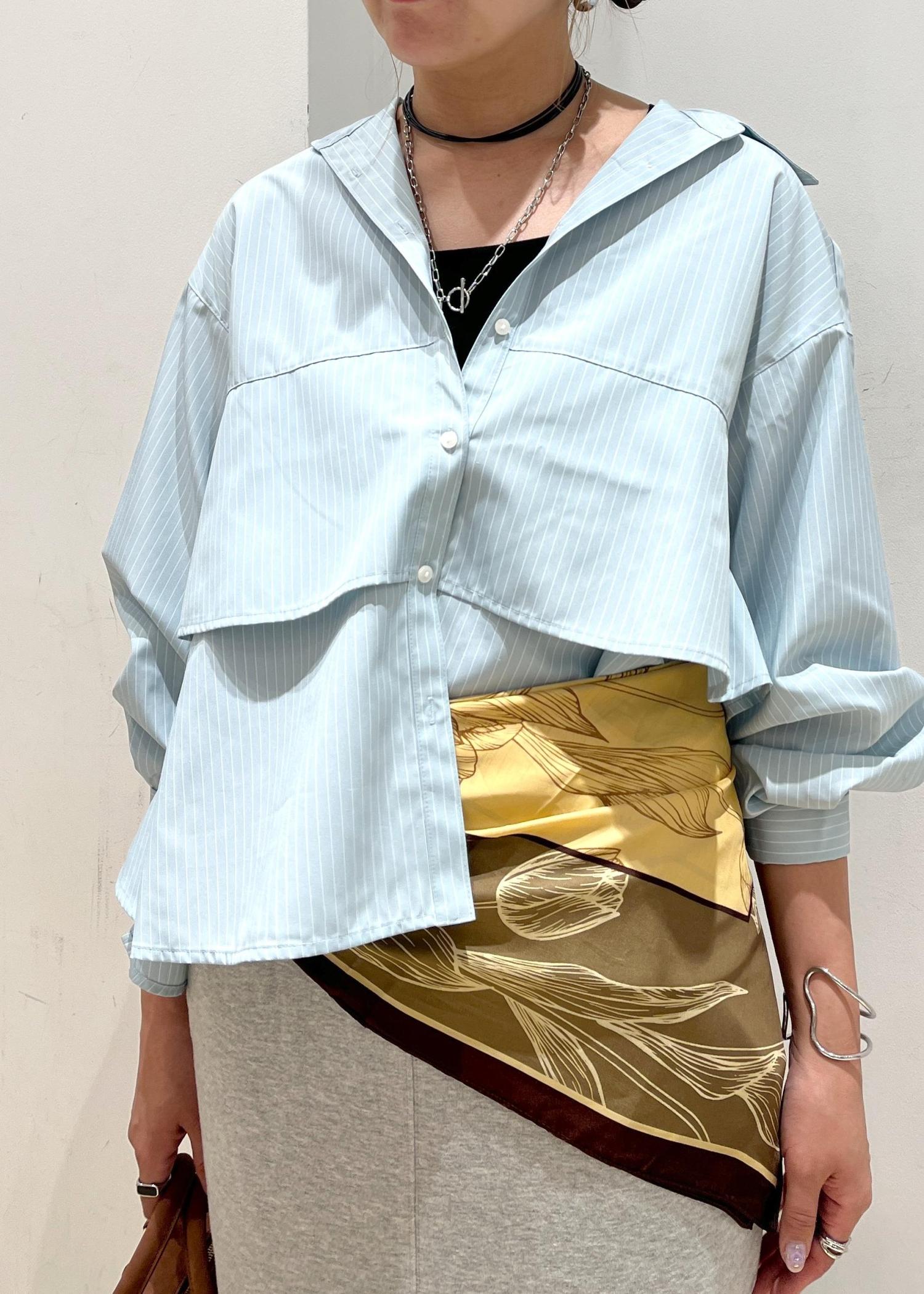 裾ティアードオーバーシャツ/UVケア・イージーケア