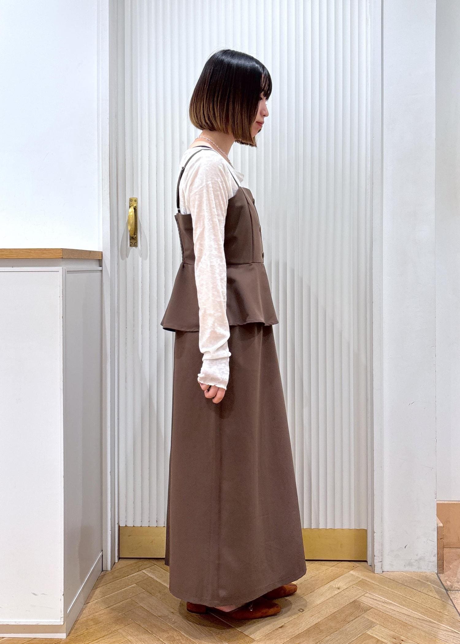 VISビスチェドッキングライクキャミワンピースダークブラウン系 / F¥7,689レビュー153センチ着用で足首にかから長さでした。