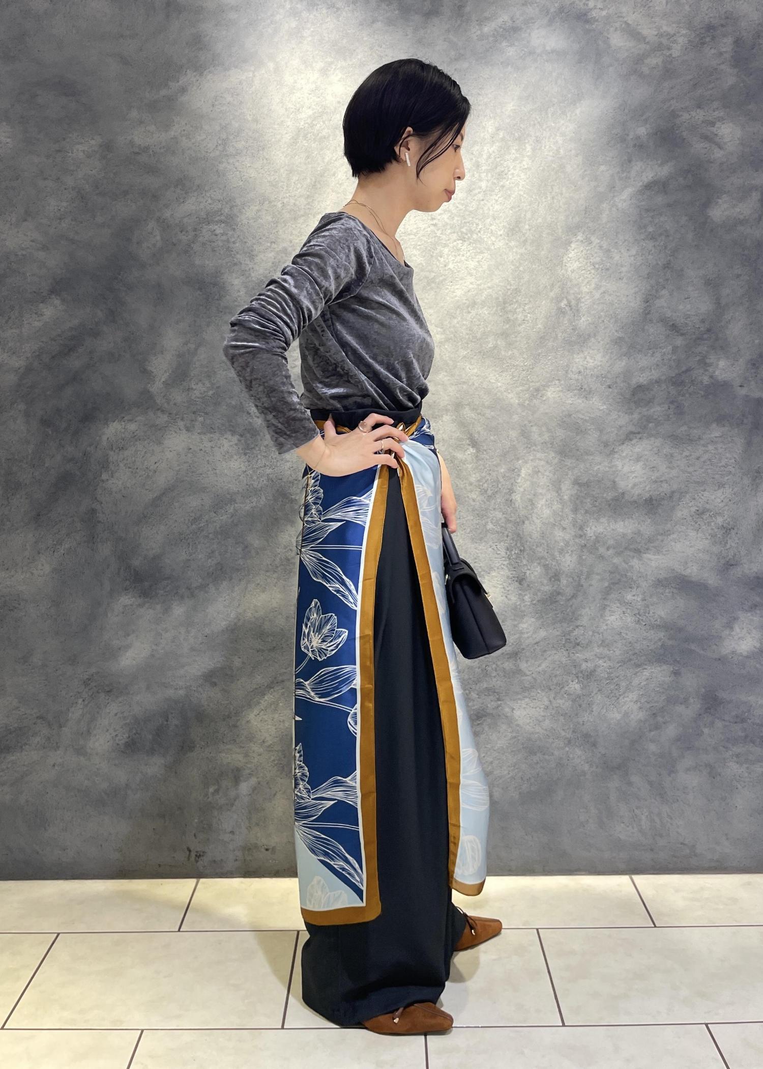 VISチューリップ柄スカーフ90×90cmブルー系 / F¥2,189