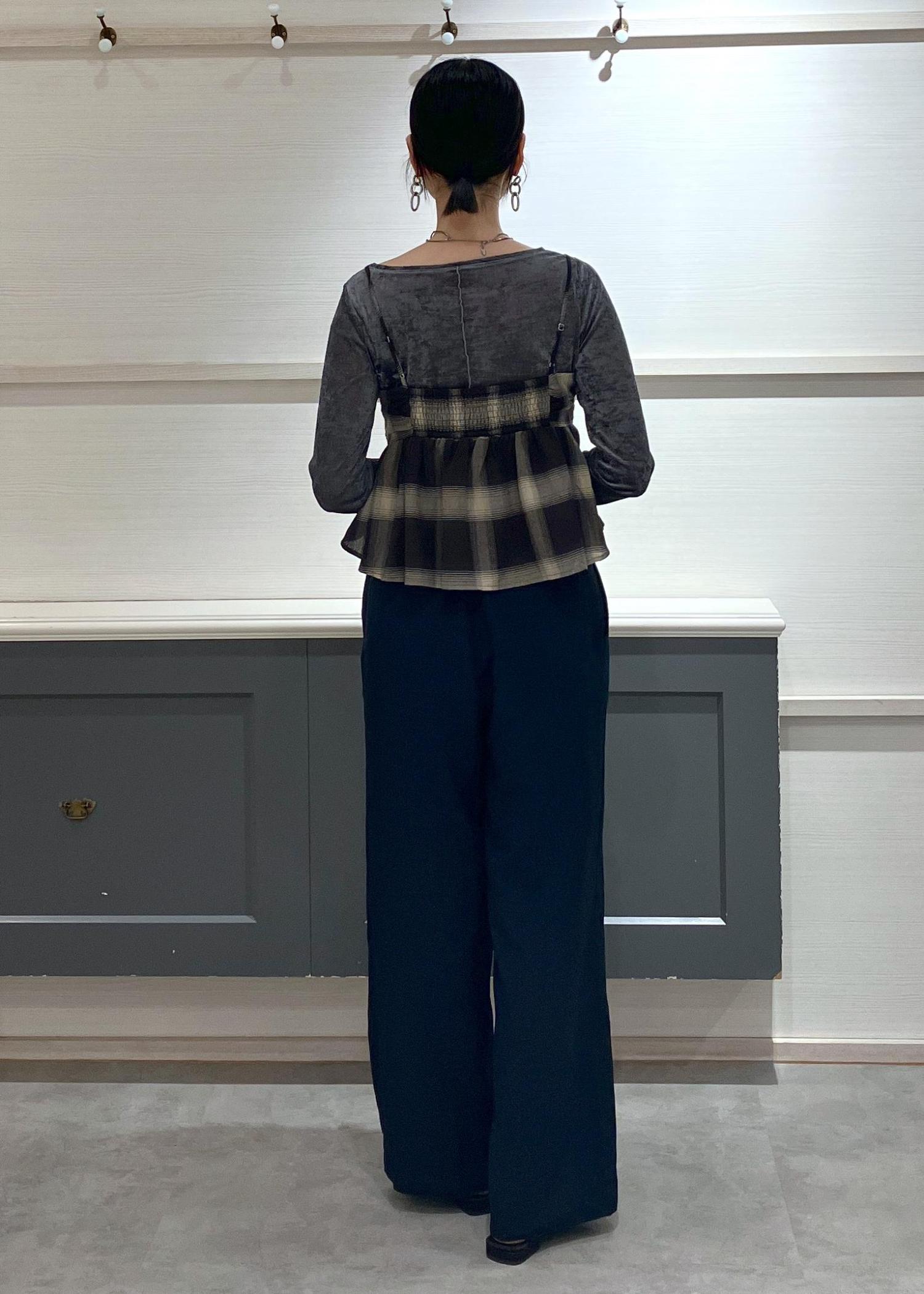 チェック柄ビスチェ×ワイドパンツ